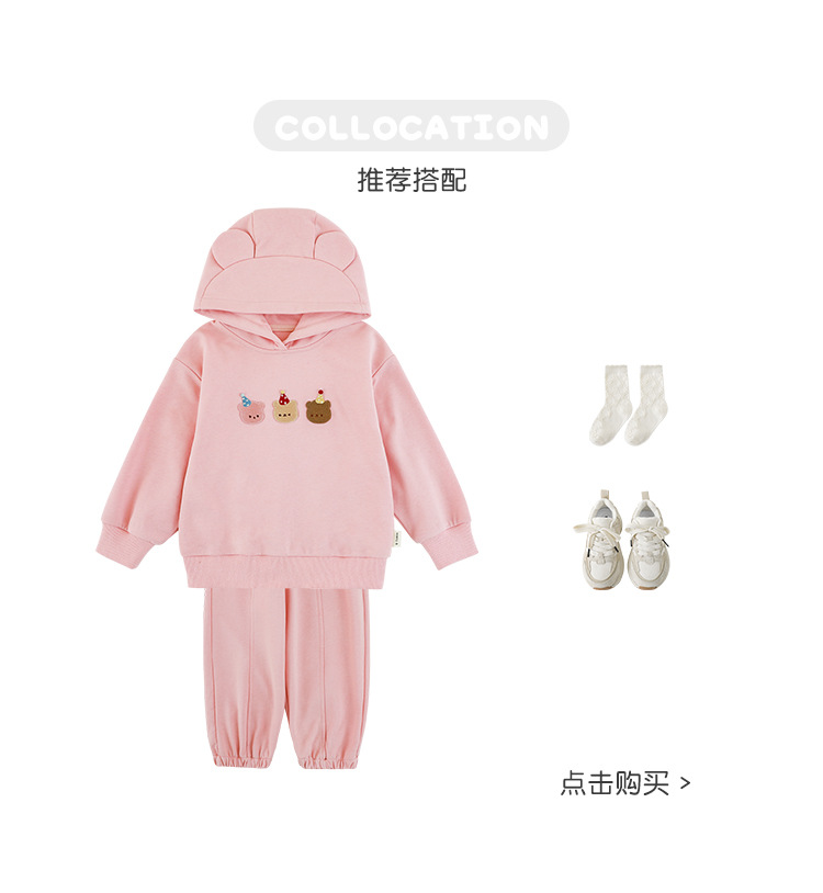 Qiu Duomeng 소녀 곰 수 놓은 세트 2025 봄과 가을 새로운 어린이 만화 후드 착용 바지 투피스 세트스토어 가기