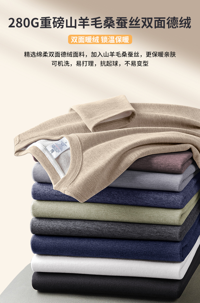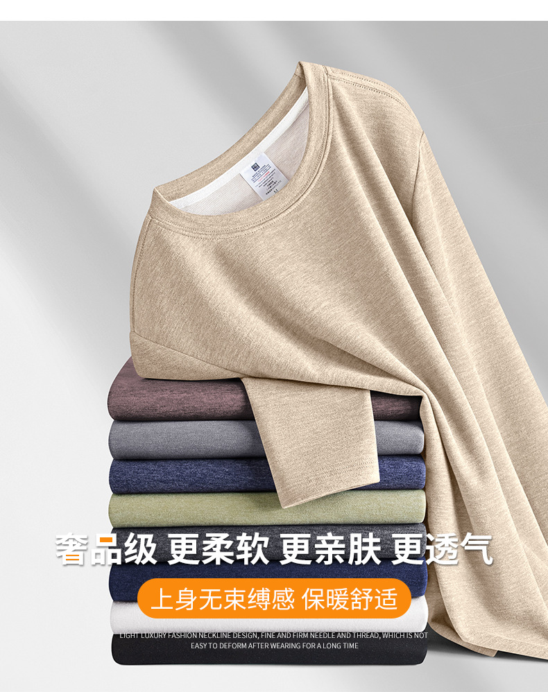 양모와 실크 혼방 남성용 이너웨어 2025 가을 겨울 신상 보온 양면 플리스 긴팔 티셔츠 남성 의류스토어 가기