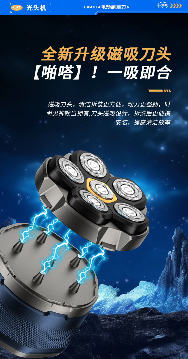 자기 흡입 6 헤드 면도 헤드 아티팩트 바디 세척 디지털 디스플레이 전기 면도기 셀프 서비스 면도 헤드 면도 수염 커터