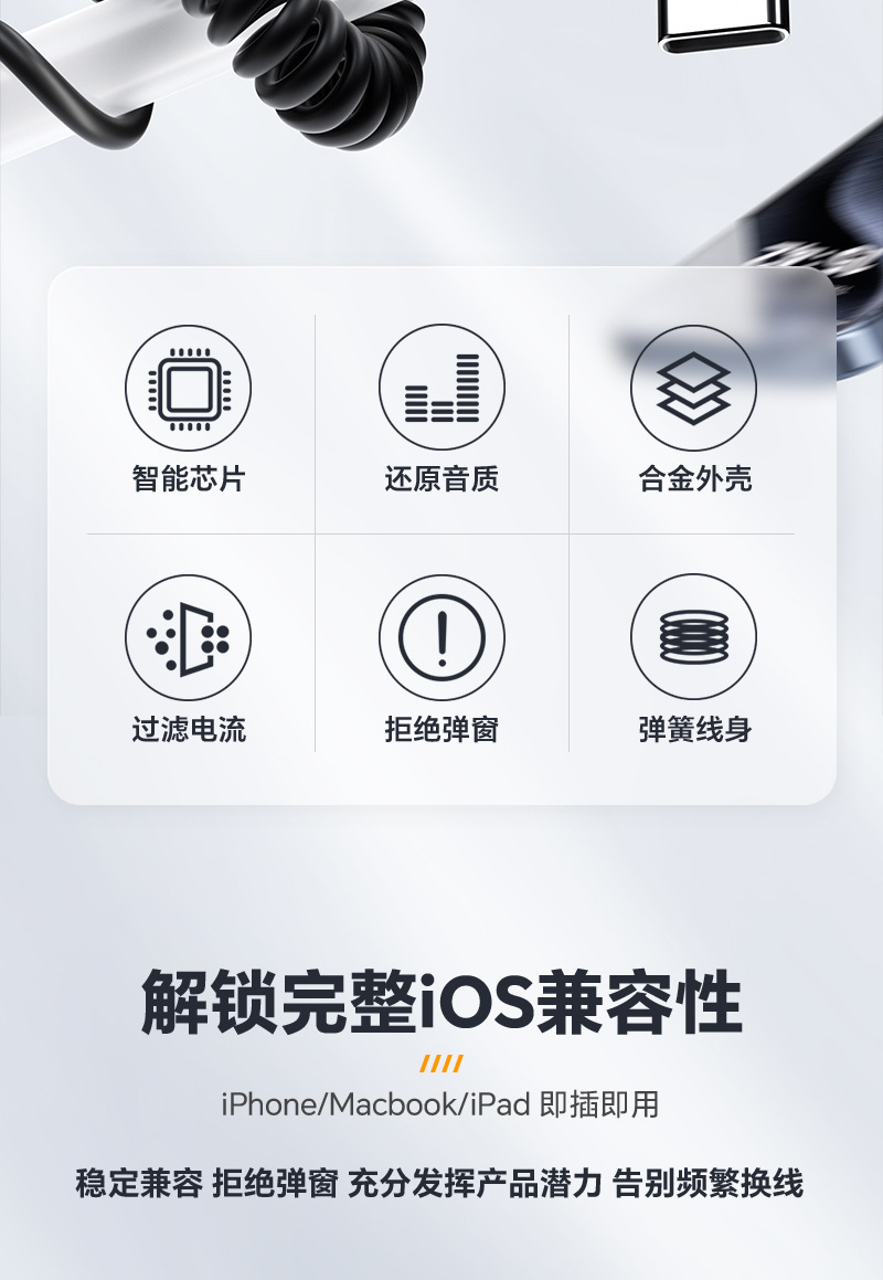 • Apple 16-15/Android [TypeC-3.5mm] 스프링/오디오 케이블에 적합