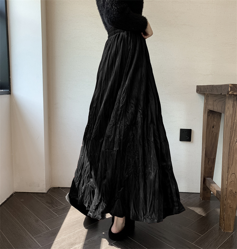 진짜 샷 두꺼운 벨벳 주름 벨벳 스커트 여성의 2023 가을과 겨울 우산 스커트 중장 하이 웨이스트 A 라인 스커트 롱 스커트