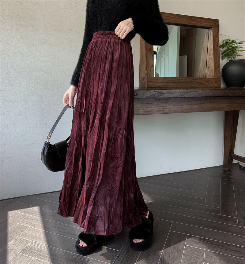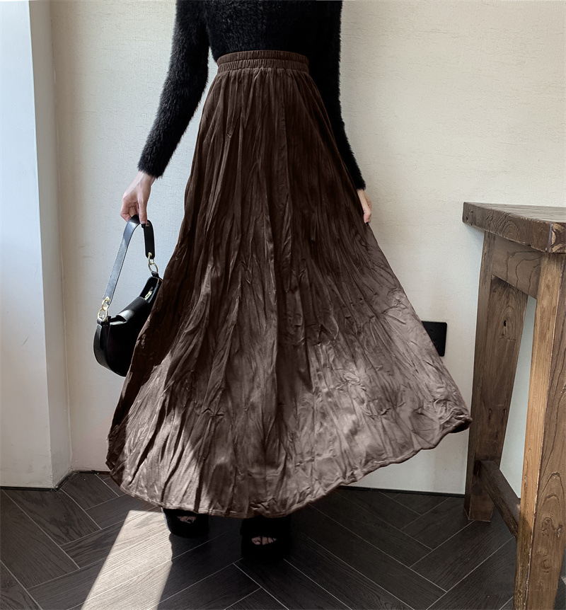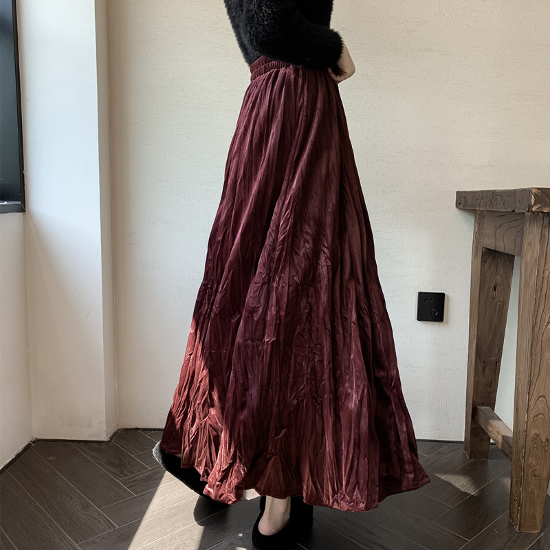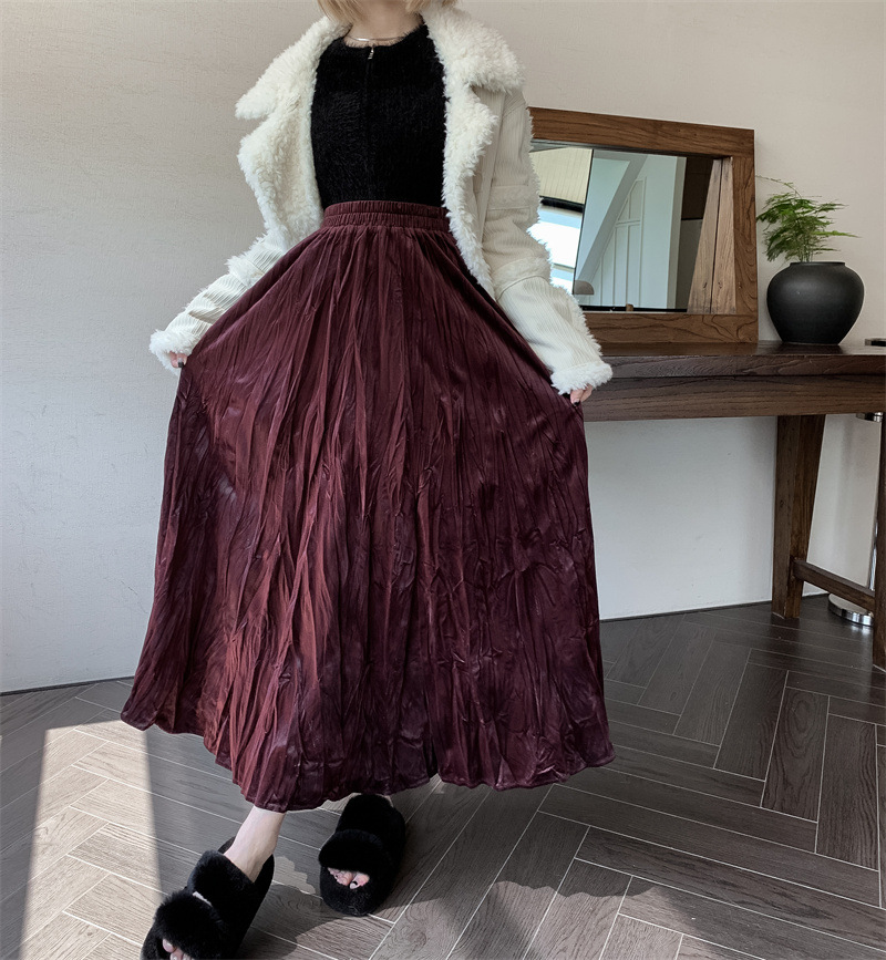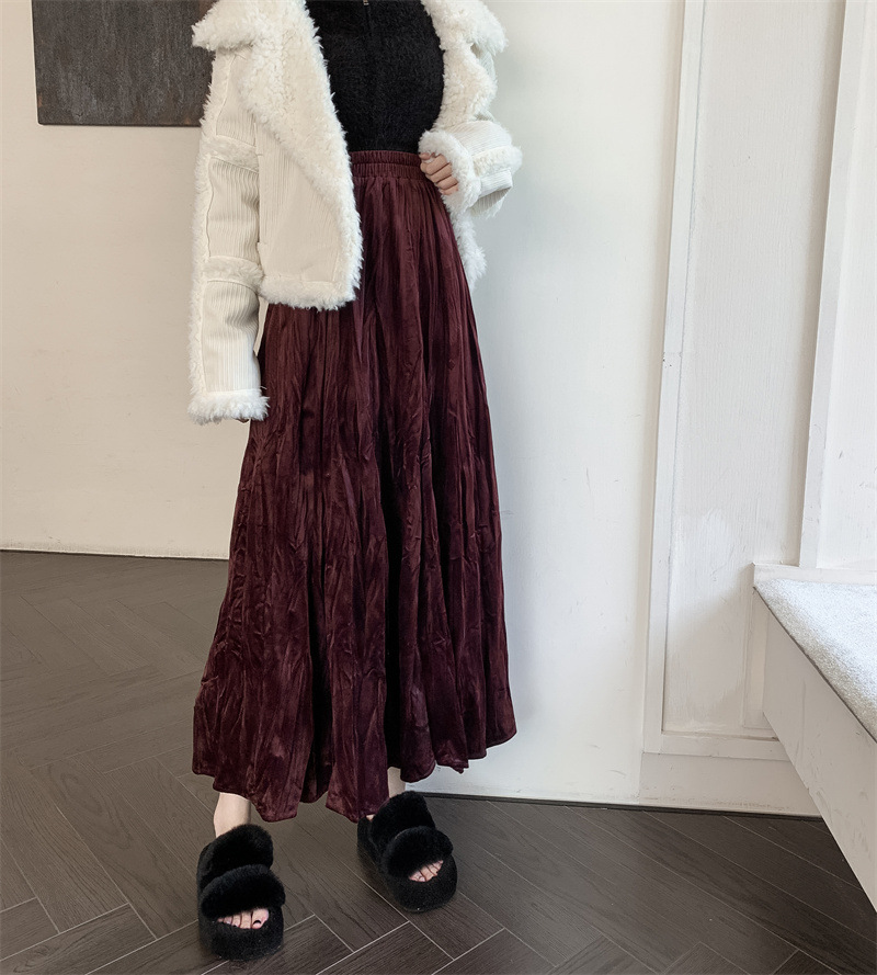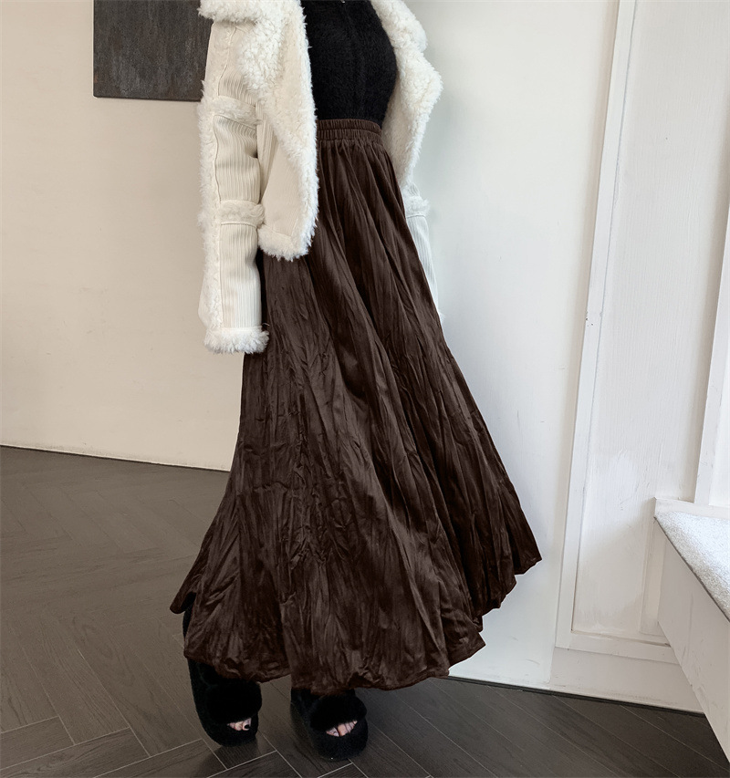 진짜 샷 두꺼운 벨벳 주름 벨벳 스커트 여성의 2023 가을과 겨울 우산 스커트 중장 하이 웨이스트 A 라인 스커트 롱 스커트스토어 가기