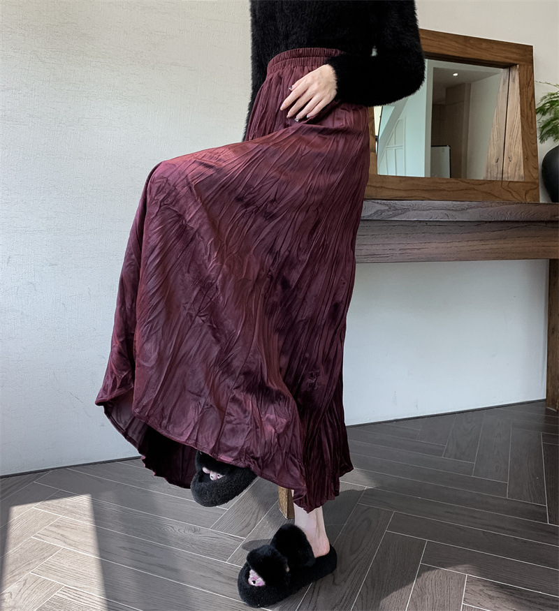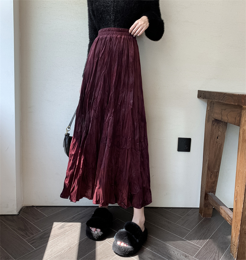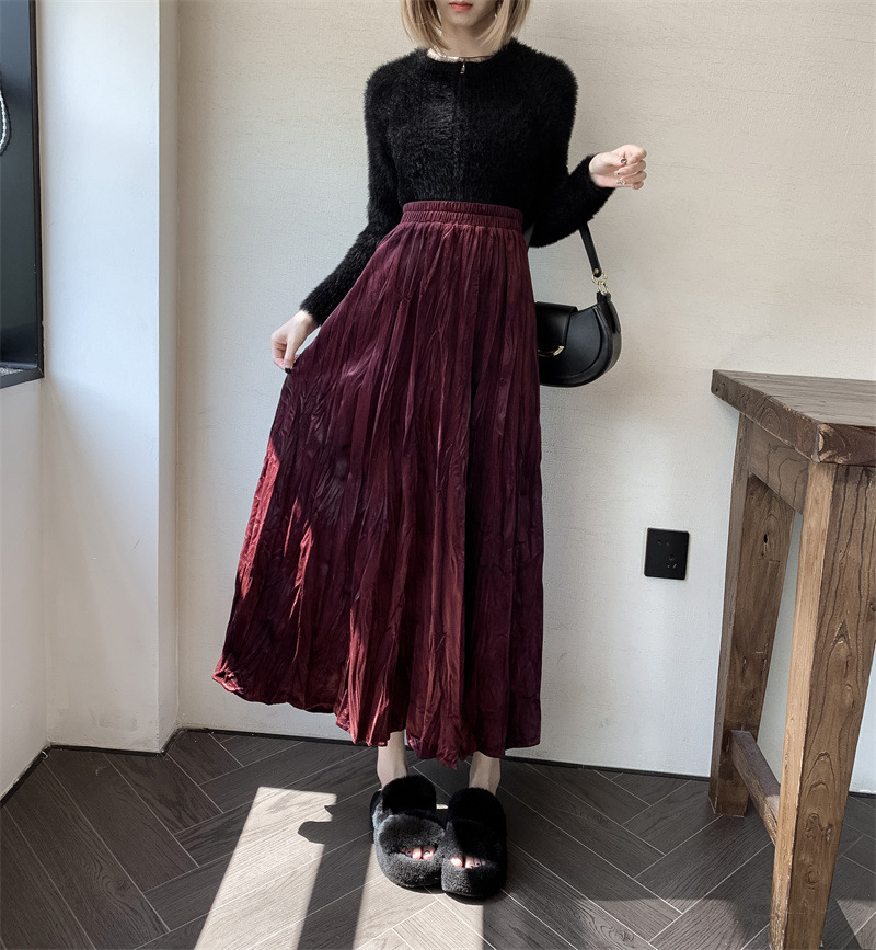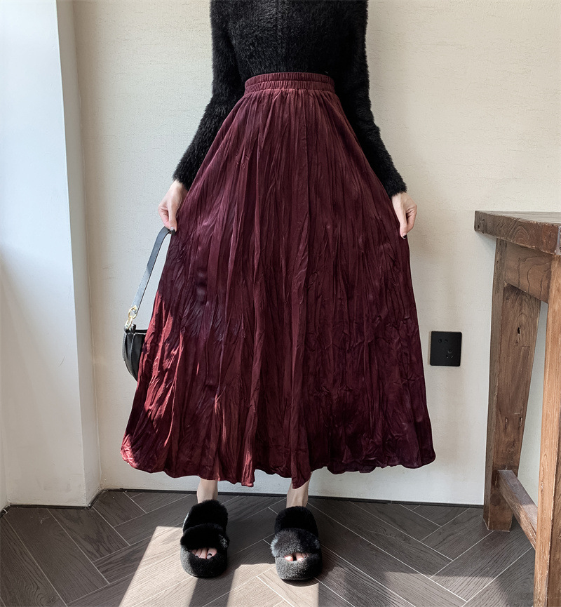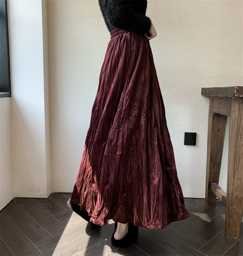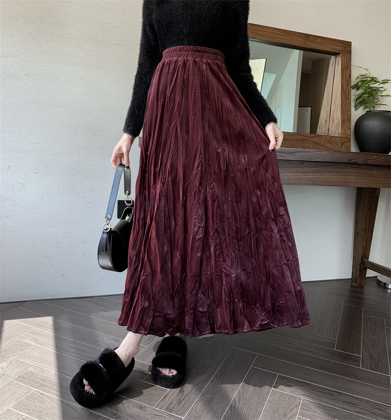 진짜 샷 두꺼운 벨벳 주름 벨벳 스커트 여성의 2023 가을과 겨울 우산 스커트 중장 하이 웨이스트 A 라인 스커트 롱 스커트스토어 가기