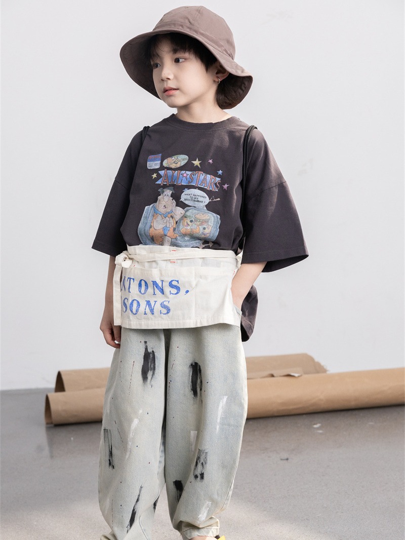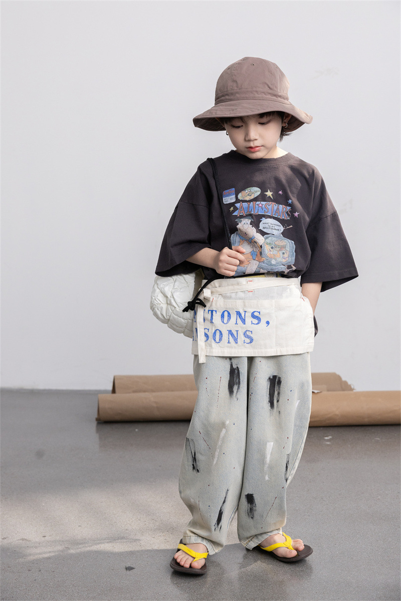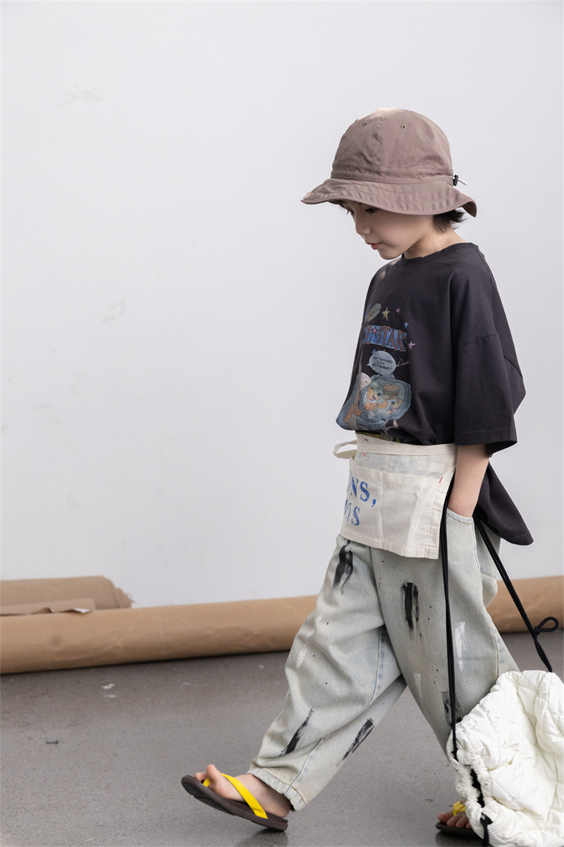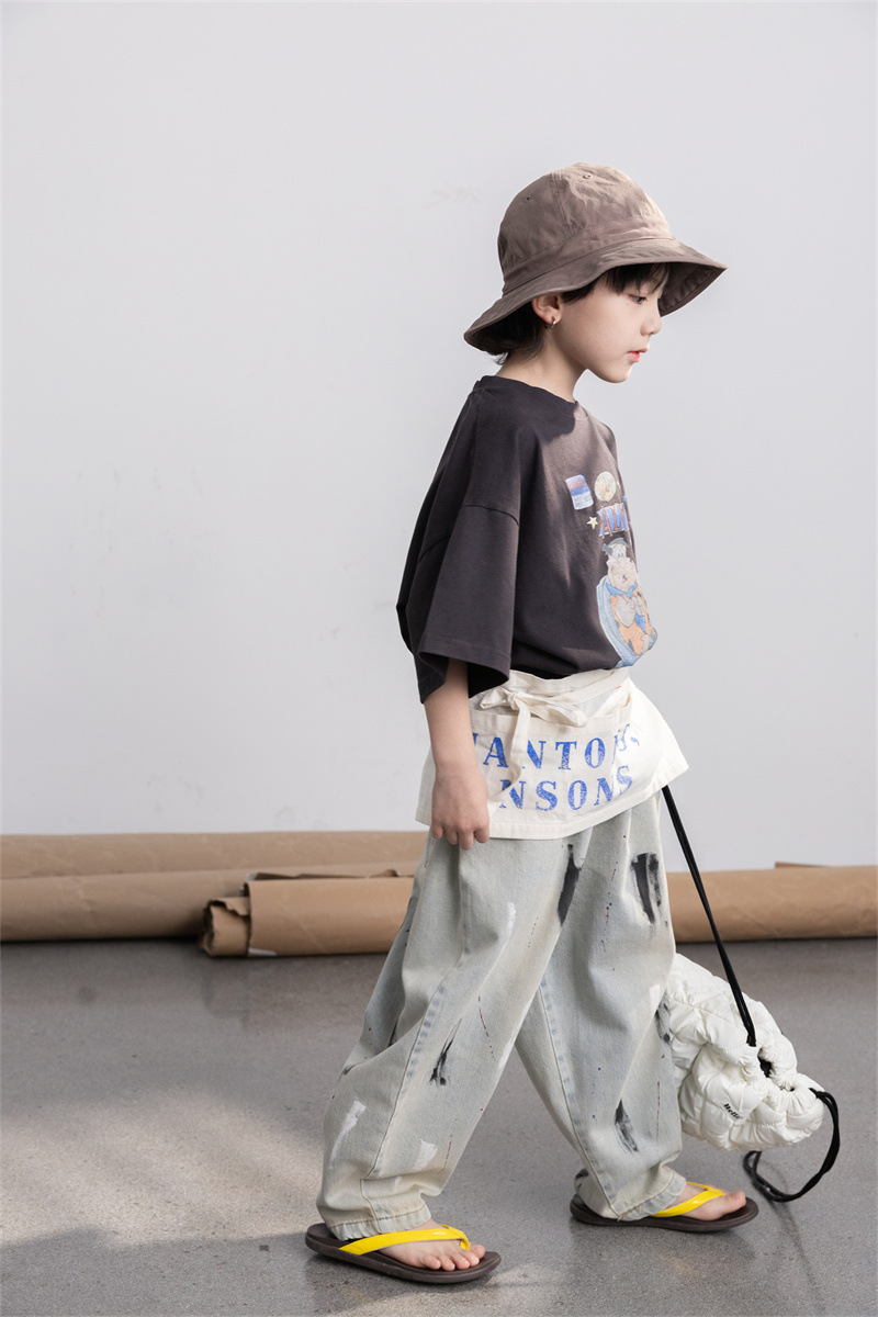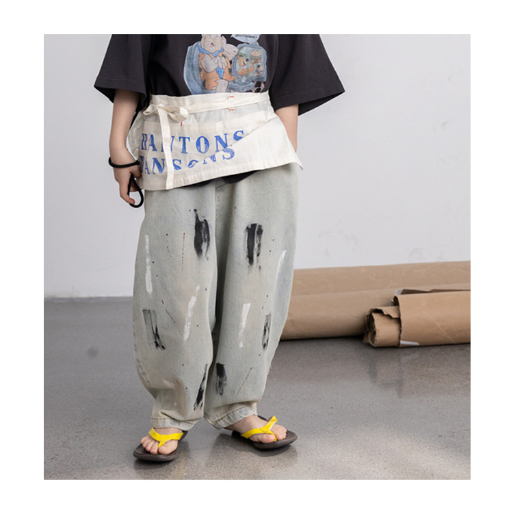 치즈와 야옹 한국 2024 새 봄 소년 맞춤형 낙서 청바지 중소 아동 · 아기를위한 유행 바지스토어 가기