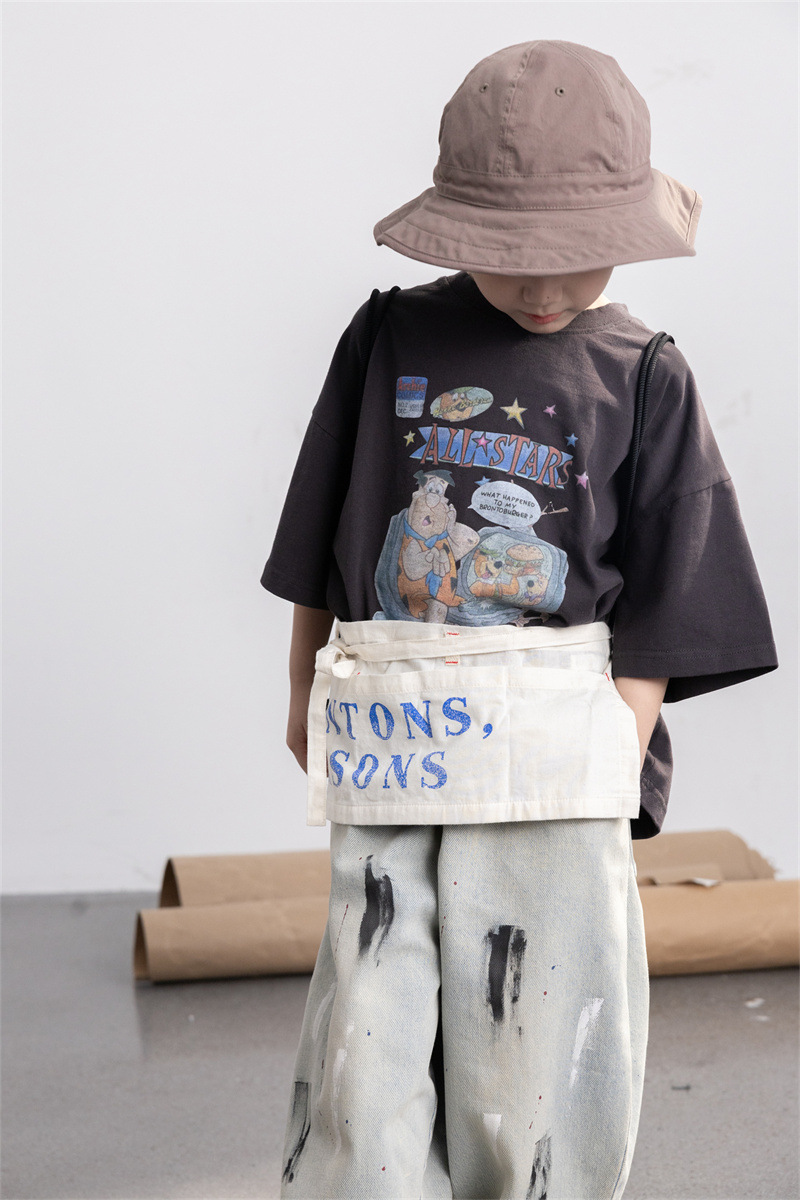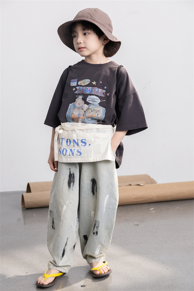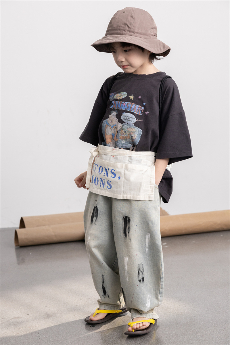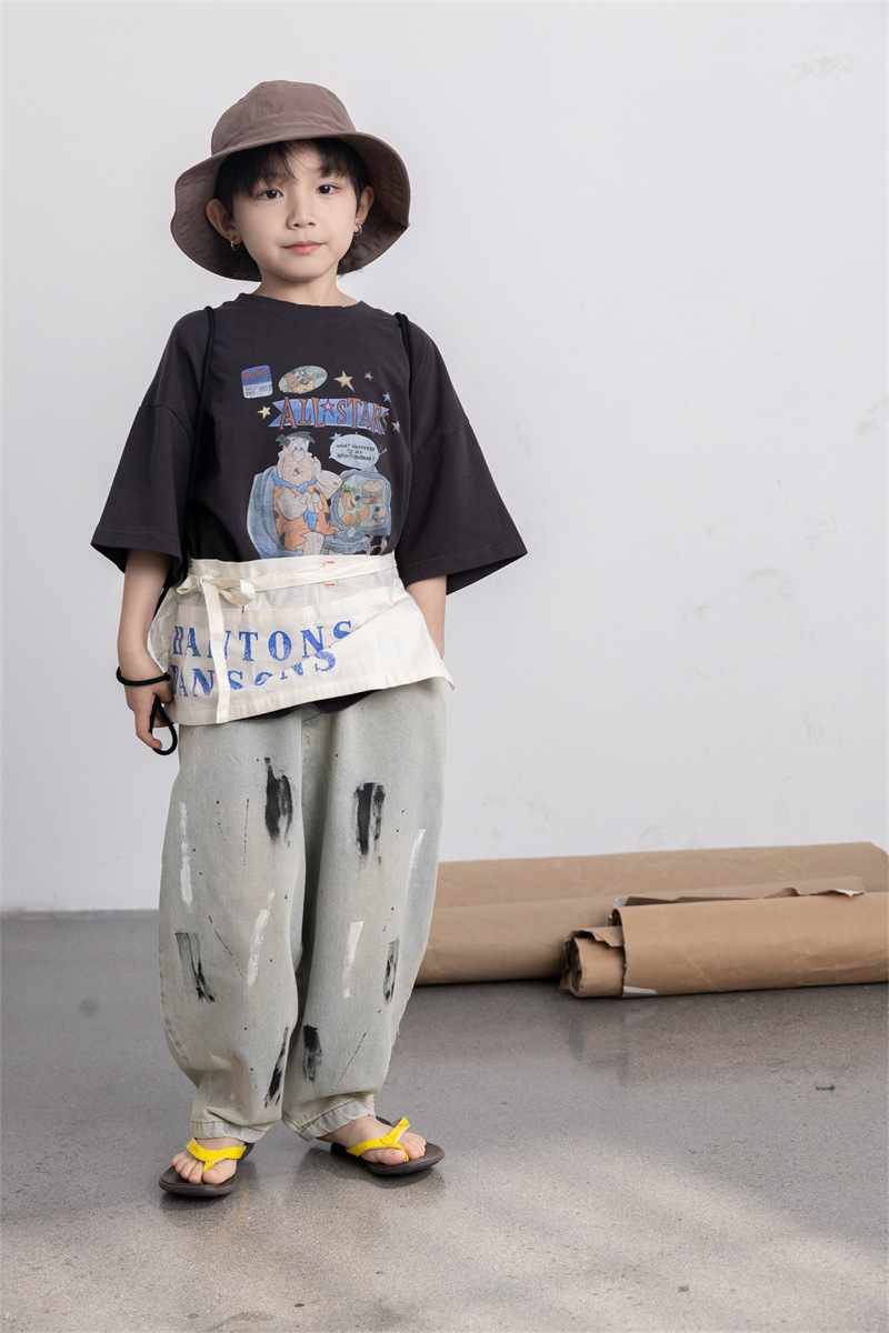치즈와 야옹 한국 2024 새 봄 소년 맞춤형 낙서 청바지 중소 아동 · 아기를위한 유행 바지스토어 가기