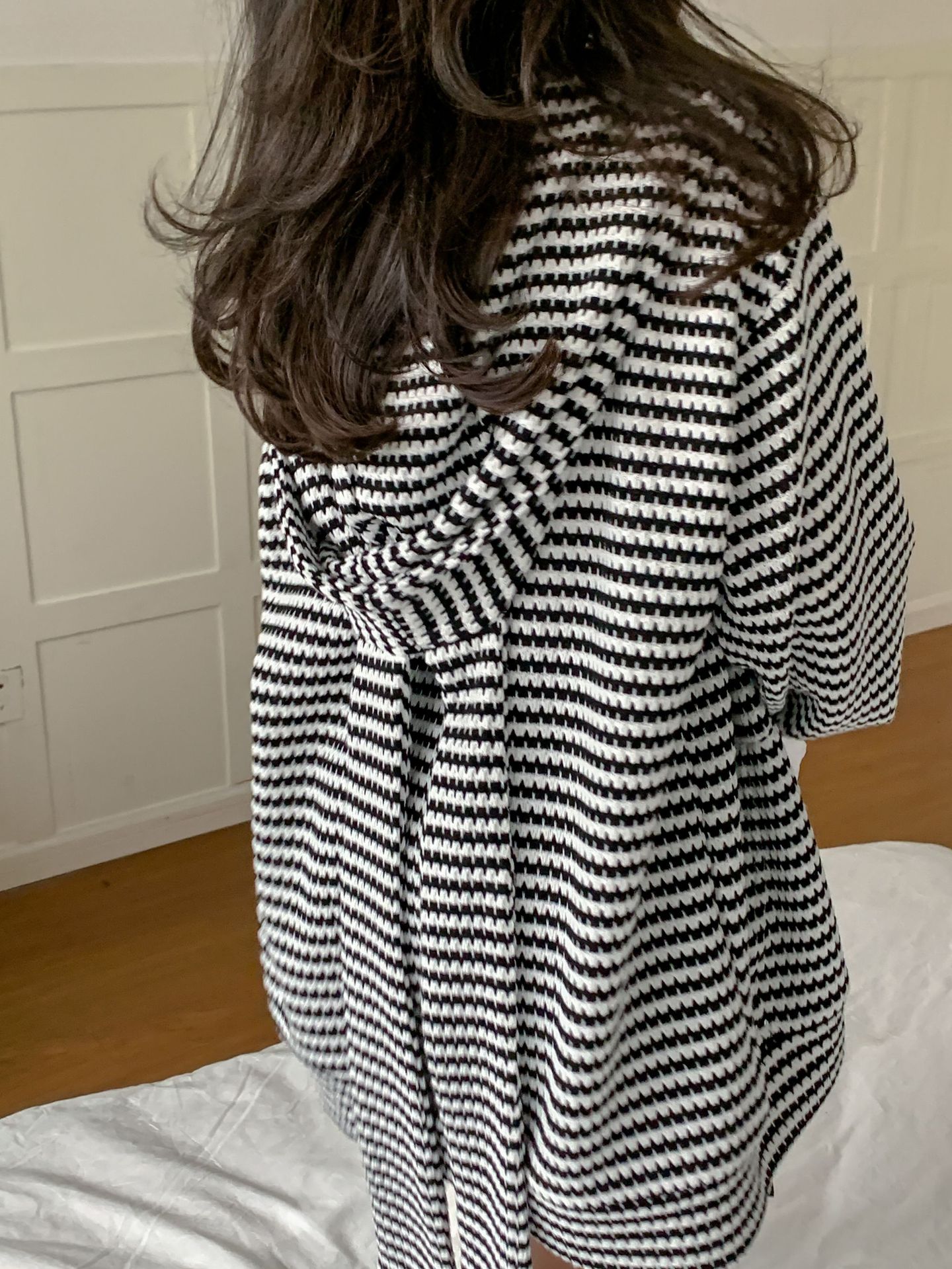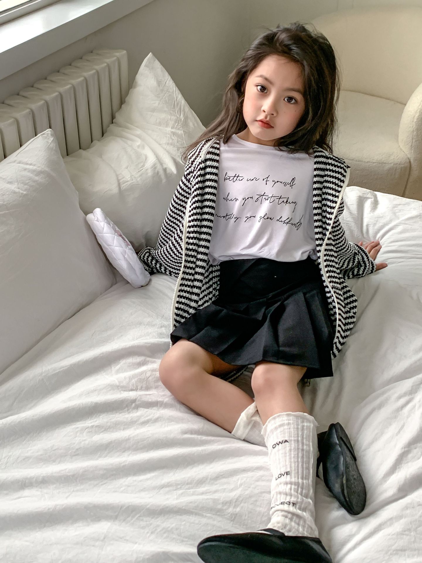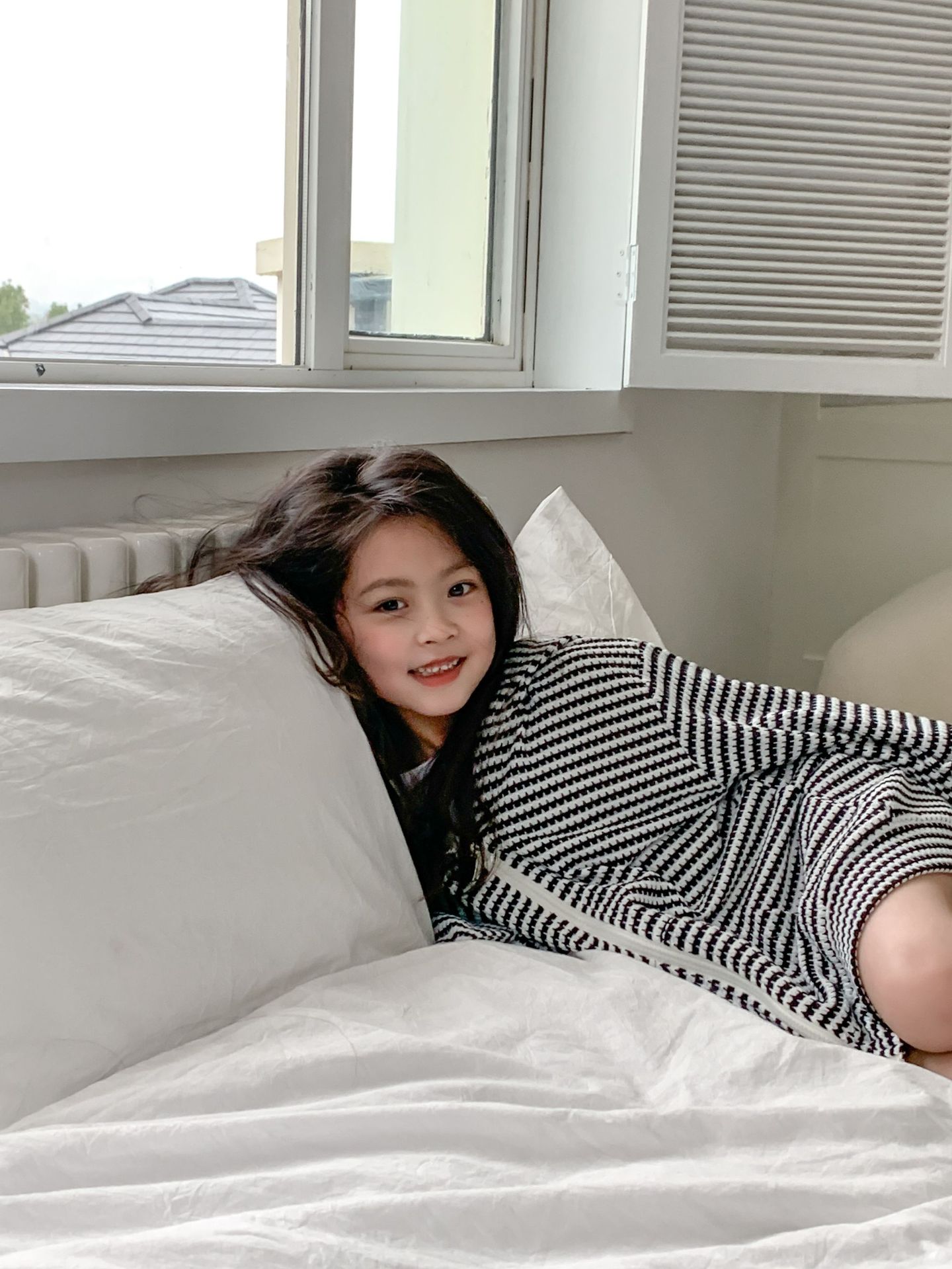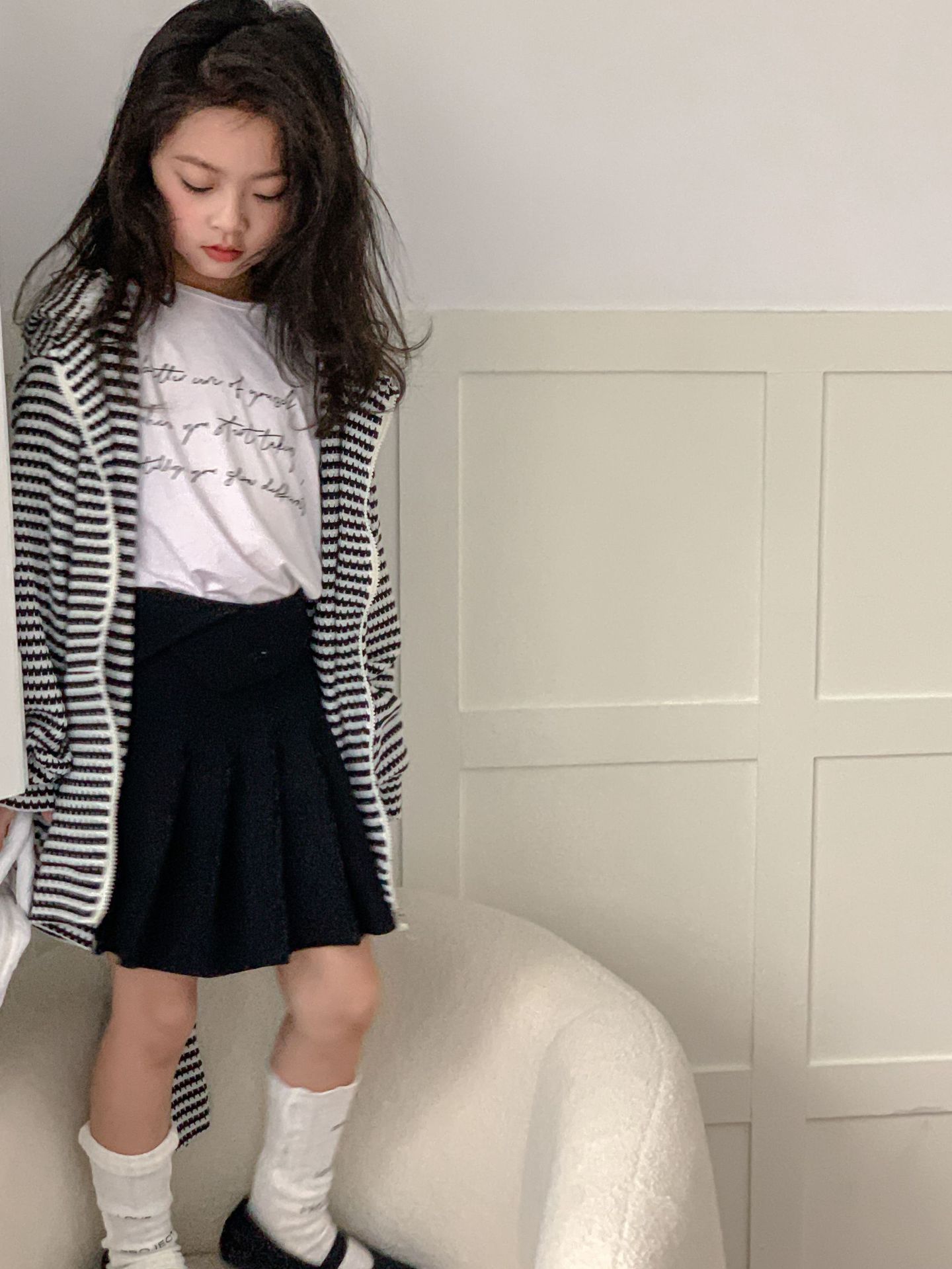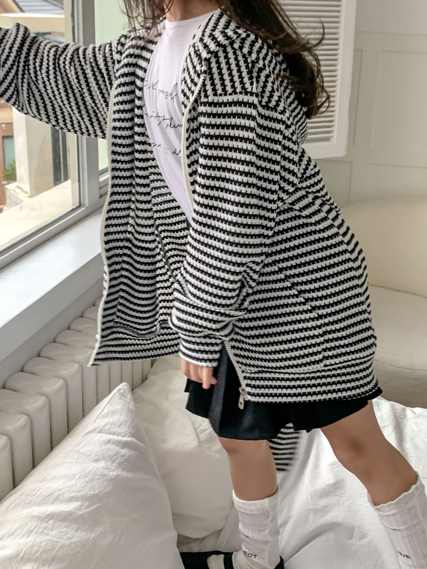 어린이 코트 2024 봄 소녀 줄무늬 토끼 귀 후드 코트 미디어와 큰 어린이 소녀의 트렌디 한 중간 길이 카디건스토어 가기