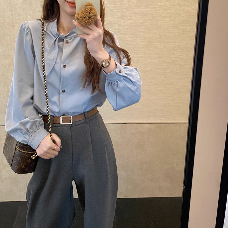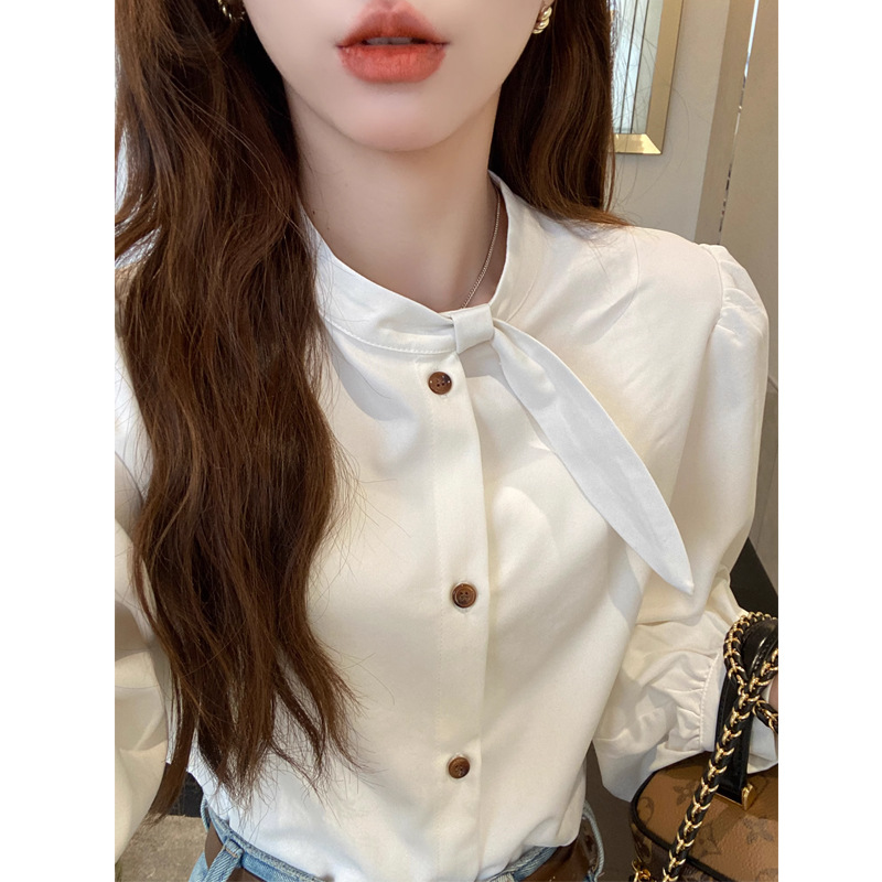 2024 봄 새로운 프랑스 스타일의 고급 나비 넥타이 셔츠 우아한 올 매치 퍼프 슬리브 탑