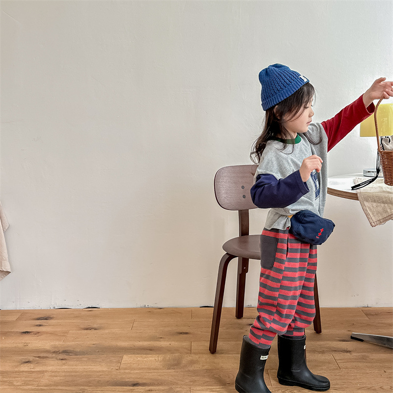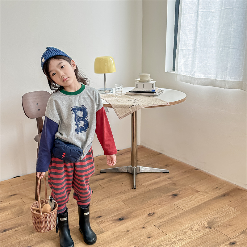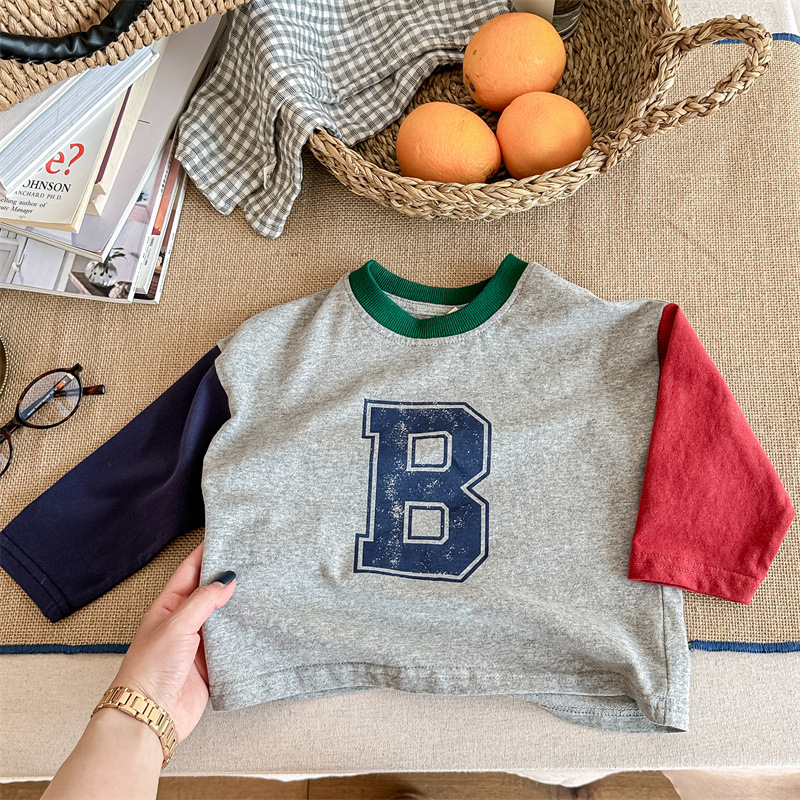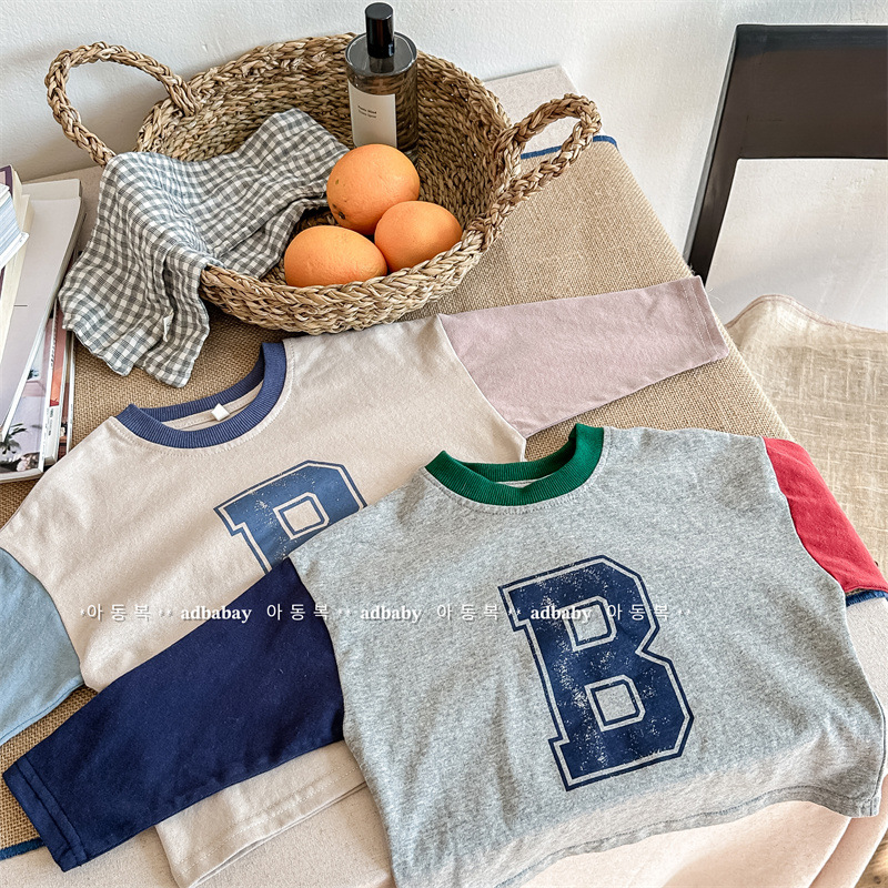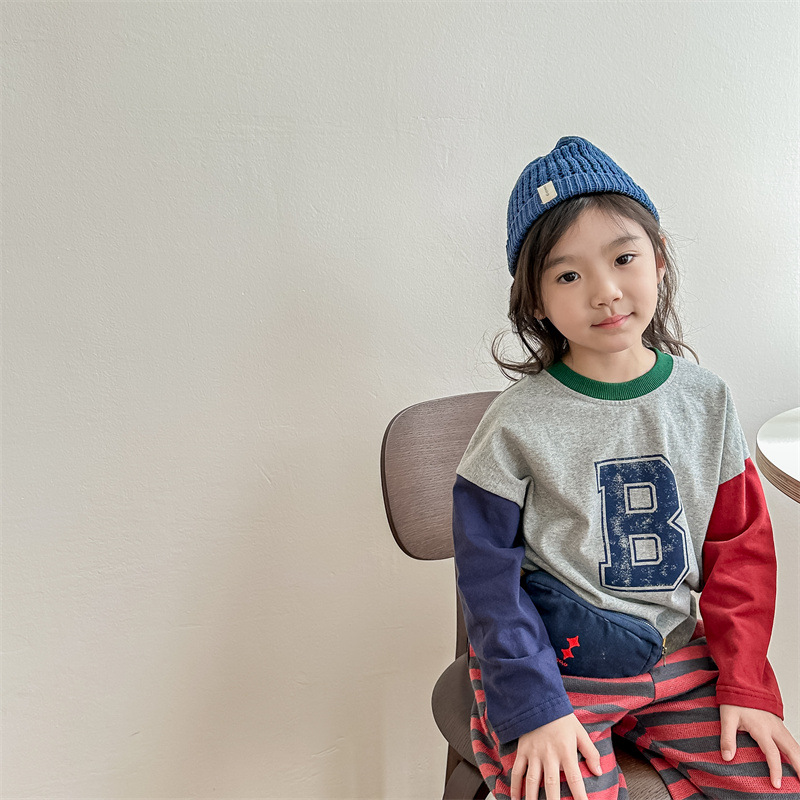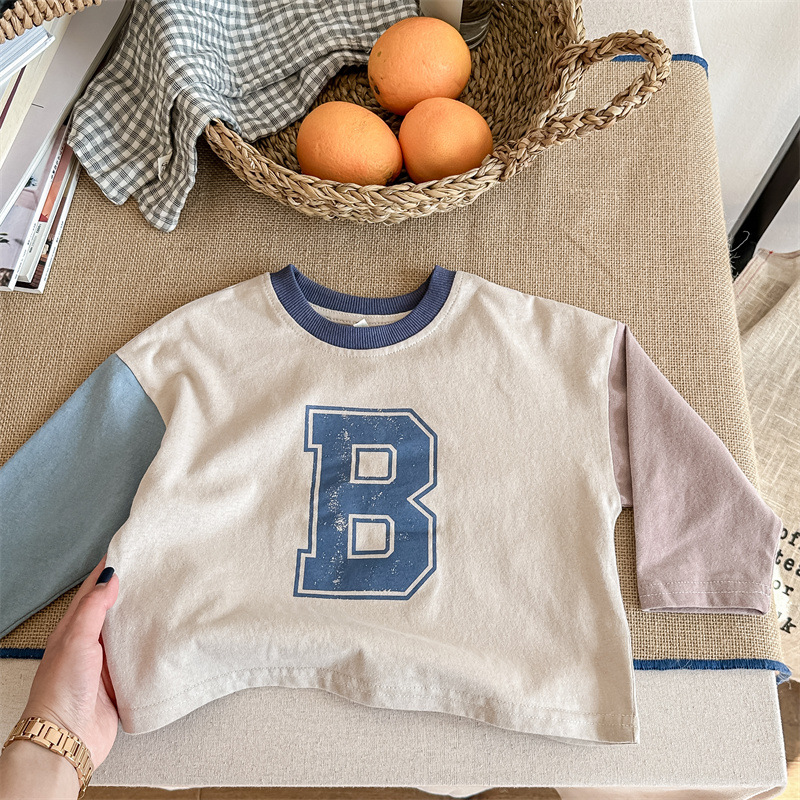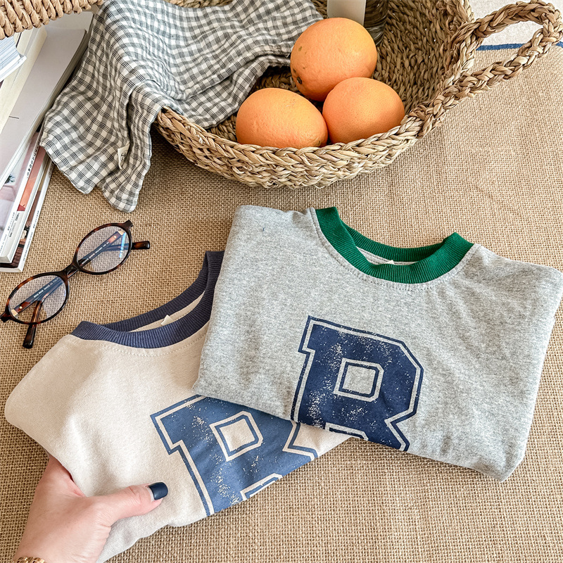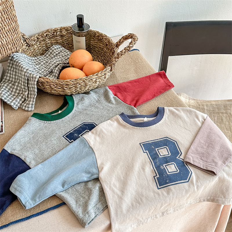 2026 봄 아동복 한국 스타일 가을 긴팔 티셔츠 스웨트셔츠 남아 여아 봄 가을 기본 셔츠 5006
