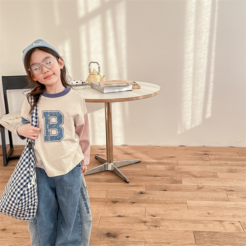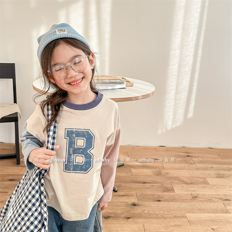 2026 봄 아동복 한국 스타일 가을 긴팔 티셔츠 스웨트셔츠 남아 여아 봄 가을 기본 셔츠 5006스토어 가기