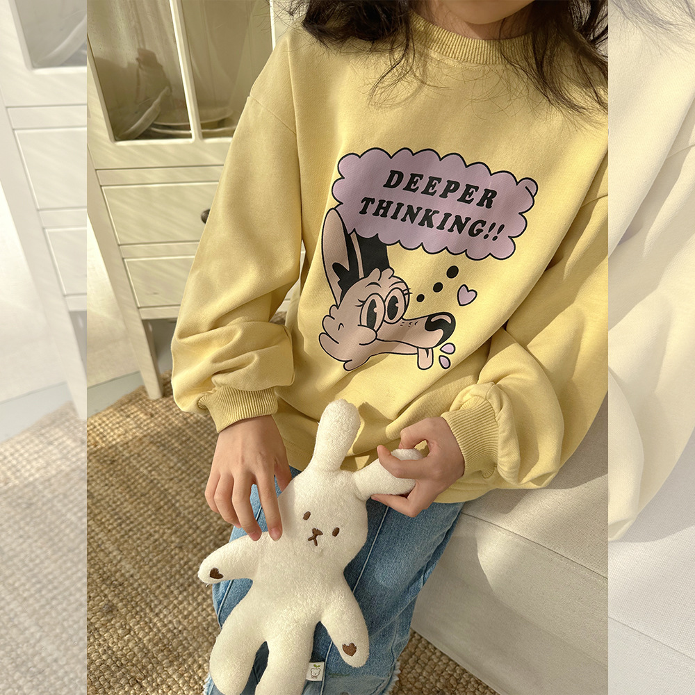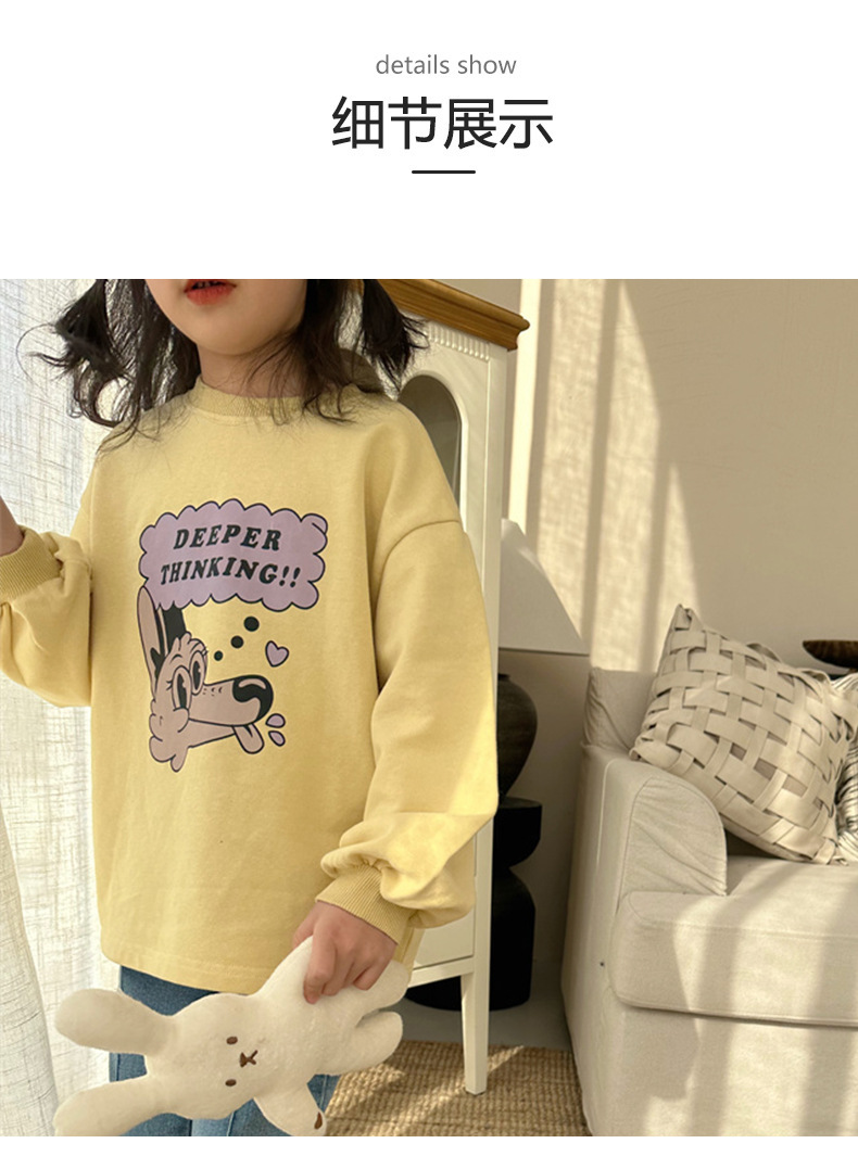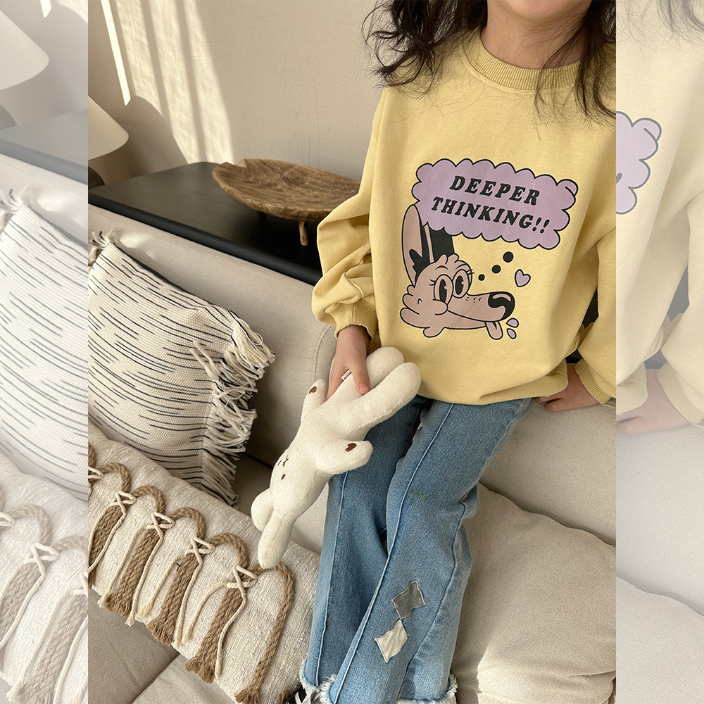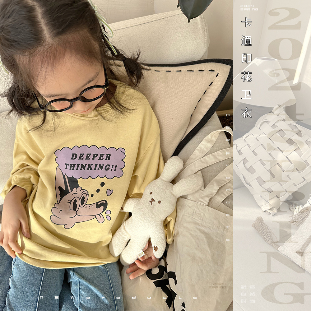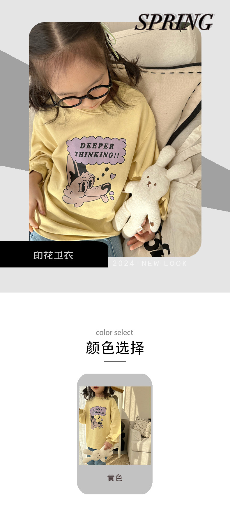 Zuo Xiaoran 아동복 2024 봄 어린이 인쇄 스웨터 소년과 소녀 패션 만화 편지 인쇄 스웨터스토어 가기