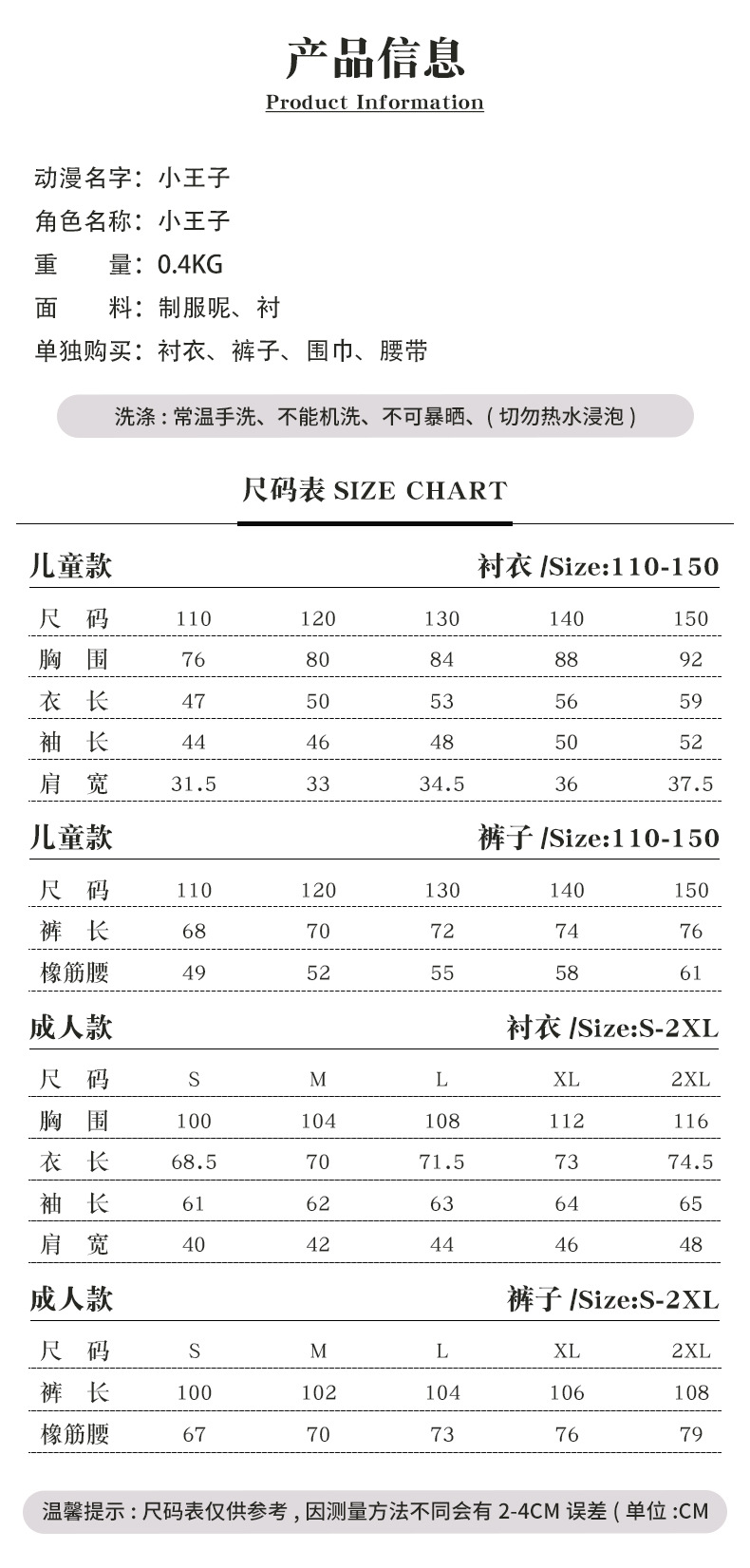 영화 버전 리틀 프린스 코스 의류 리틀 프린스 코스 의류 성인 어린이 무대 공연 의류 코스프레 의류 세트
