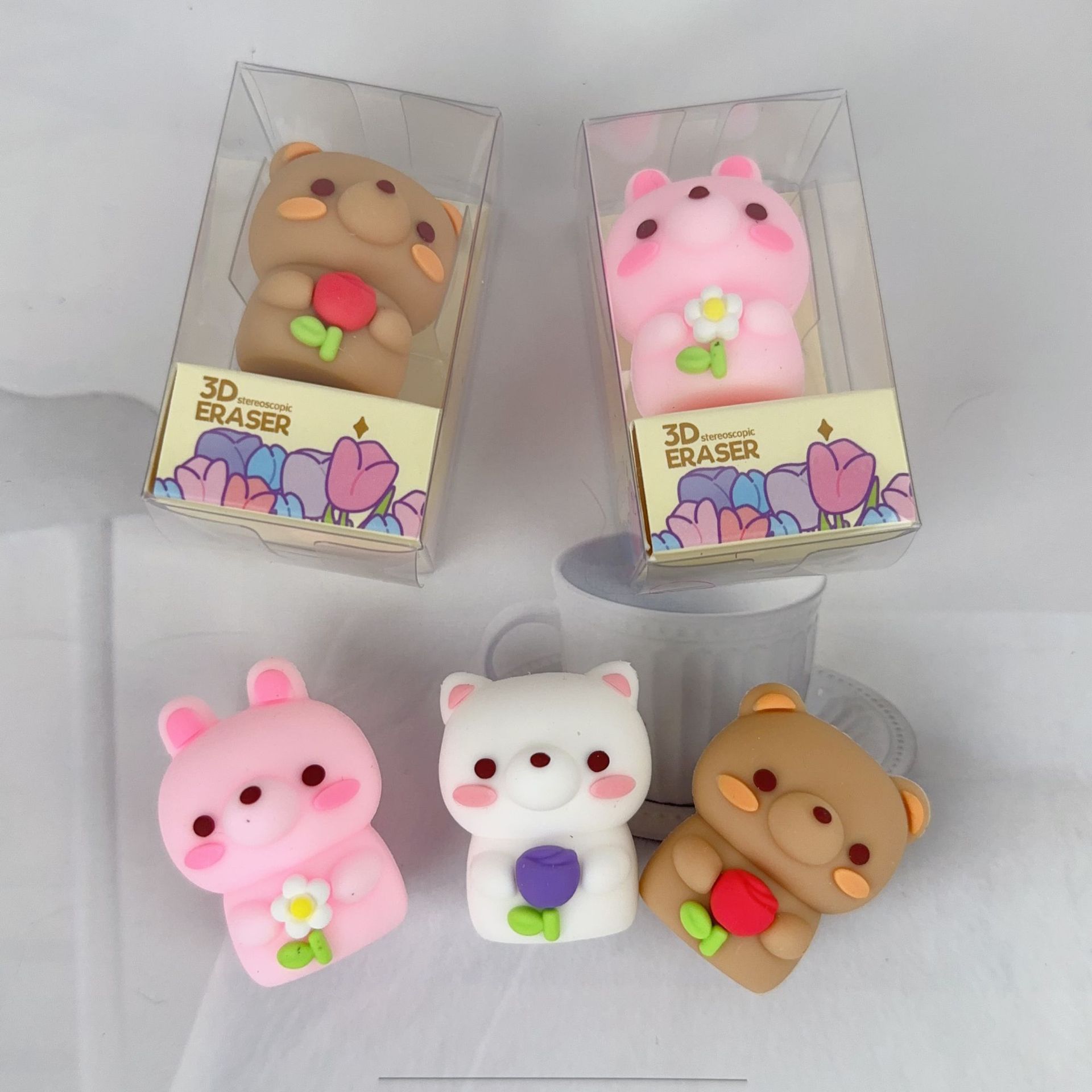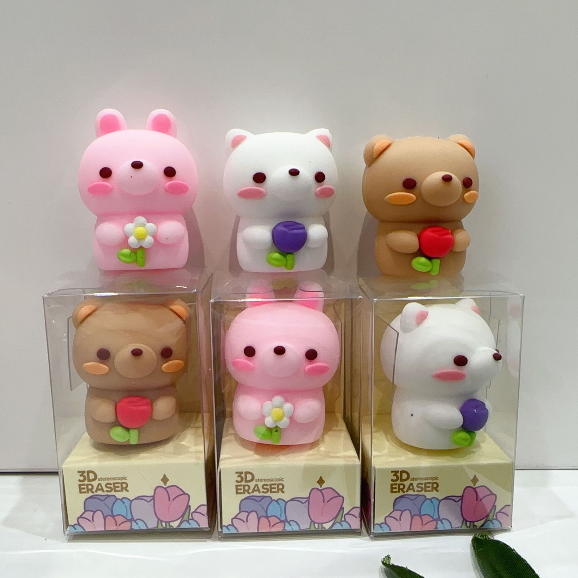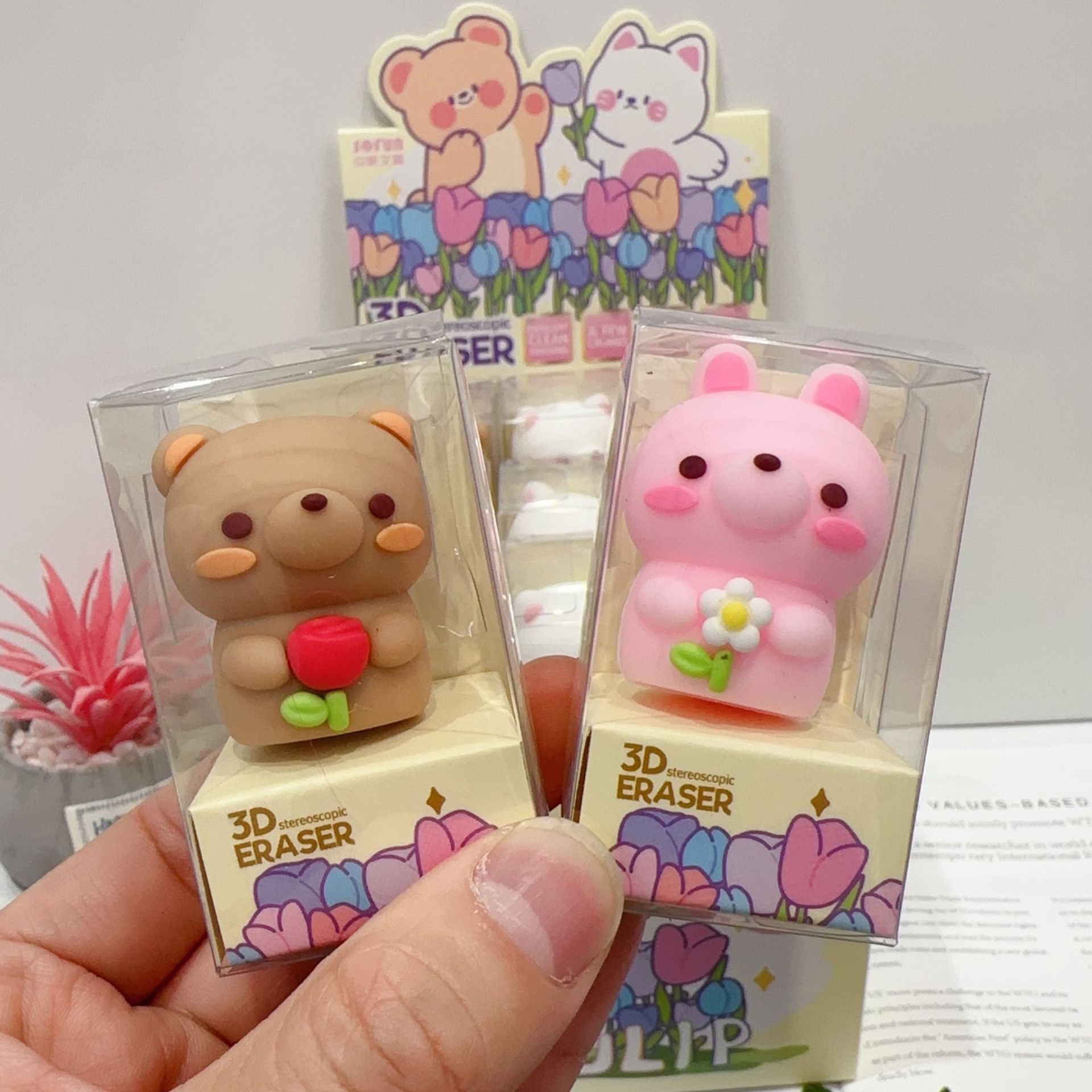 새로운 만화 딸기 곰 토끼 지우개 귀여운 학생 문구 3D 지우개 높은 색상 값 깨끗한 지우개