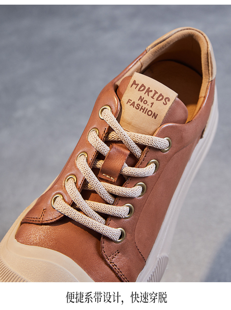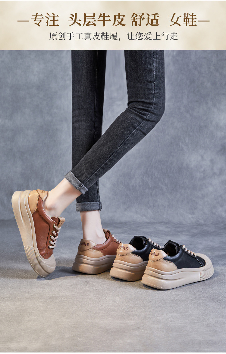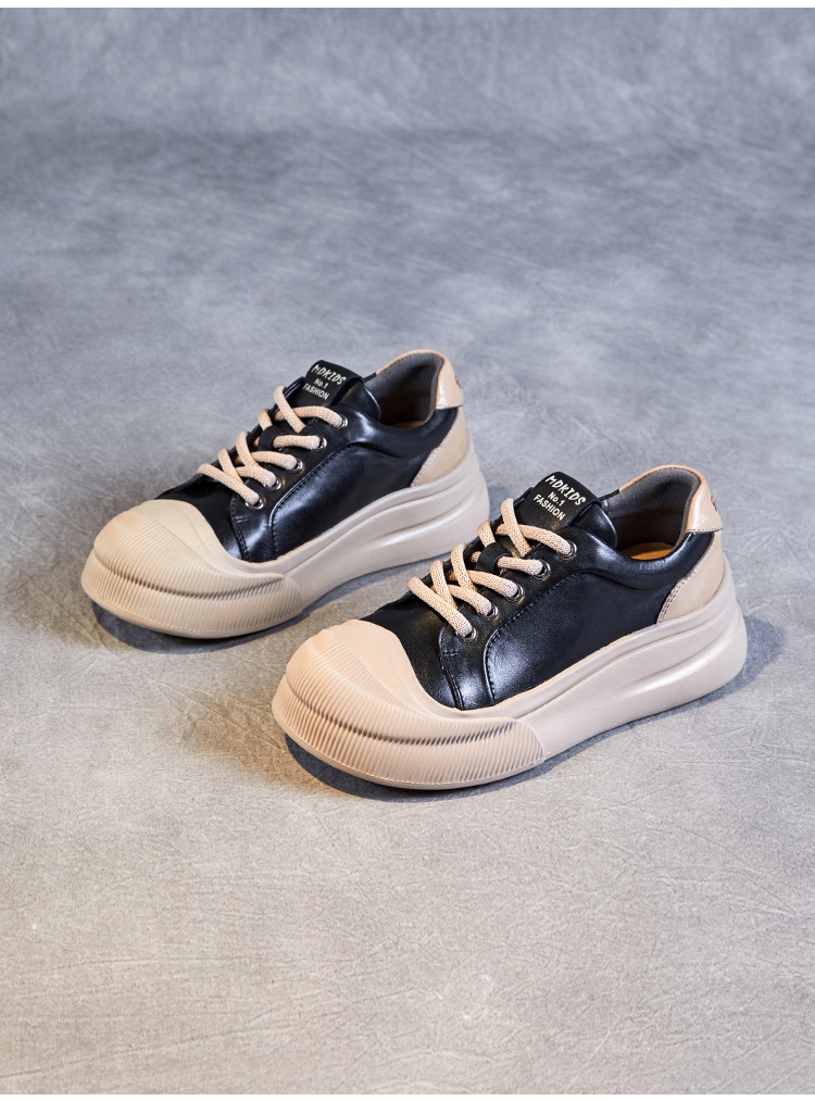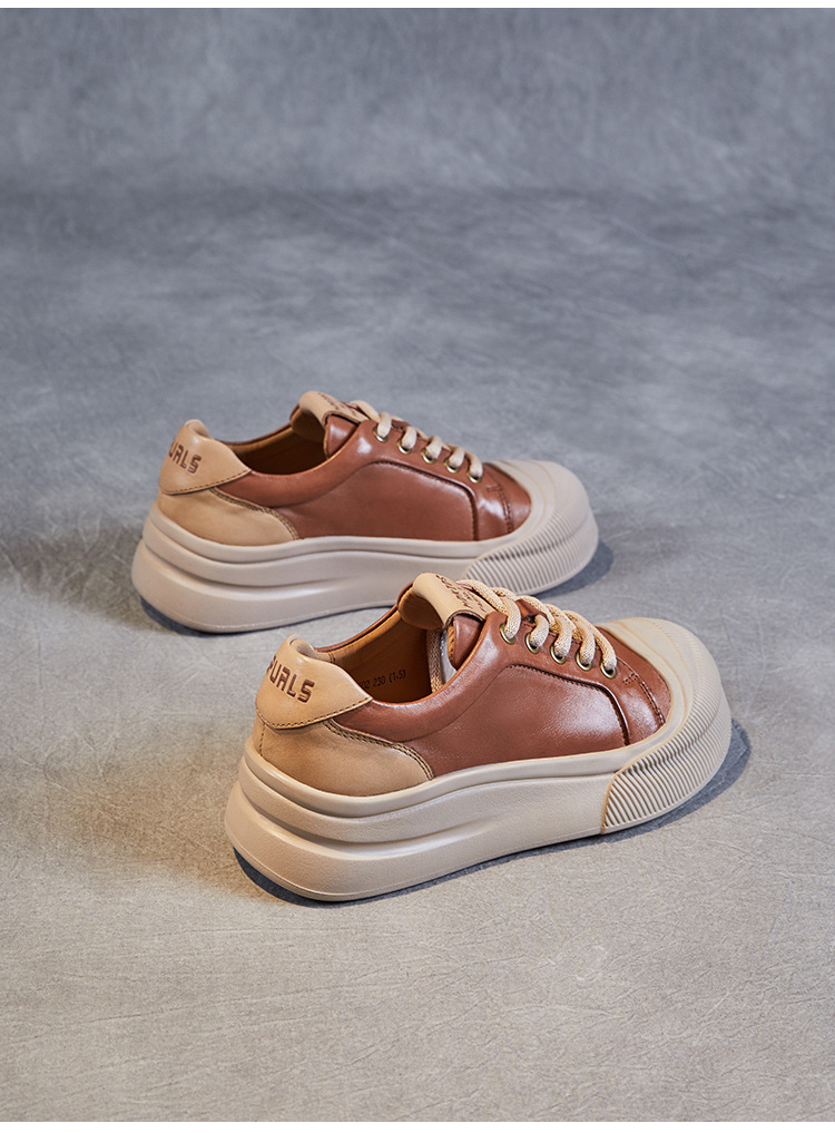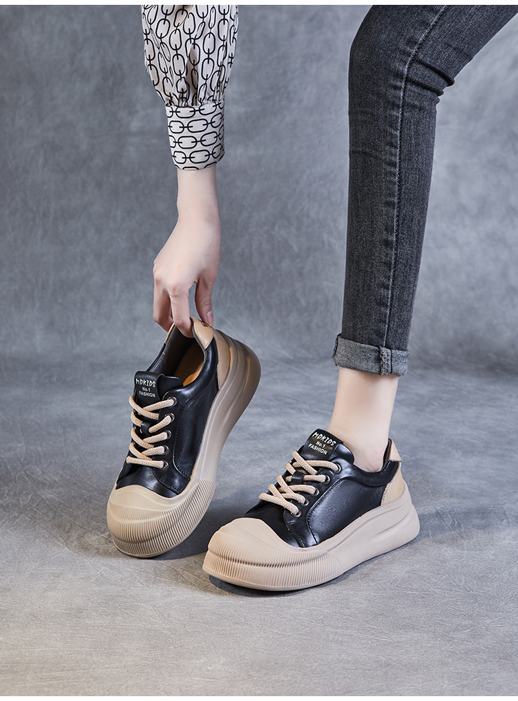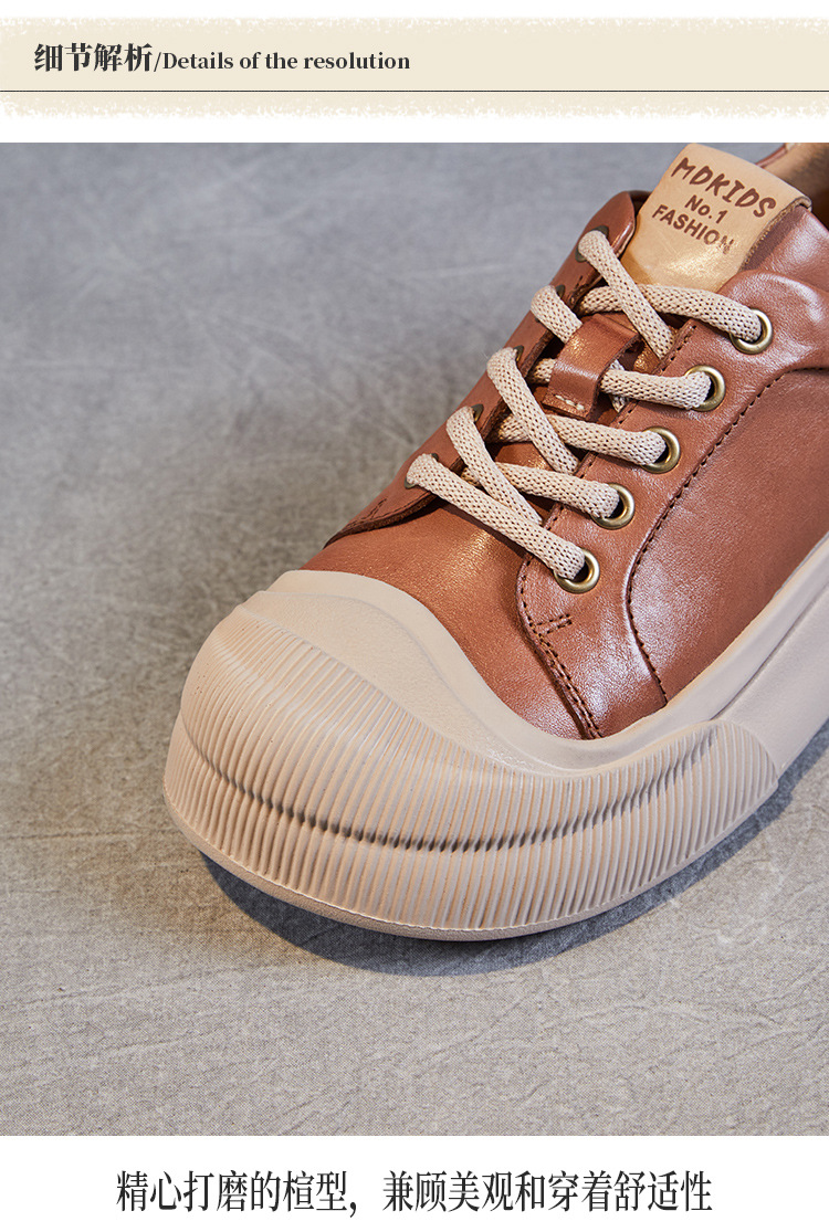 정품 가죽 플랫폼 비스킷 신발 2024 봄 새로운 라운드 토 머핀 싱글 레이어 신발 레이스 업 스포츠 경량 캐주얼 신발스토어 가기
