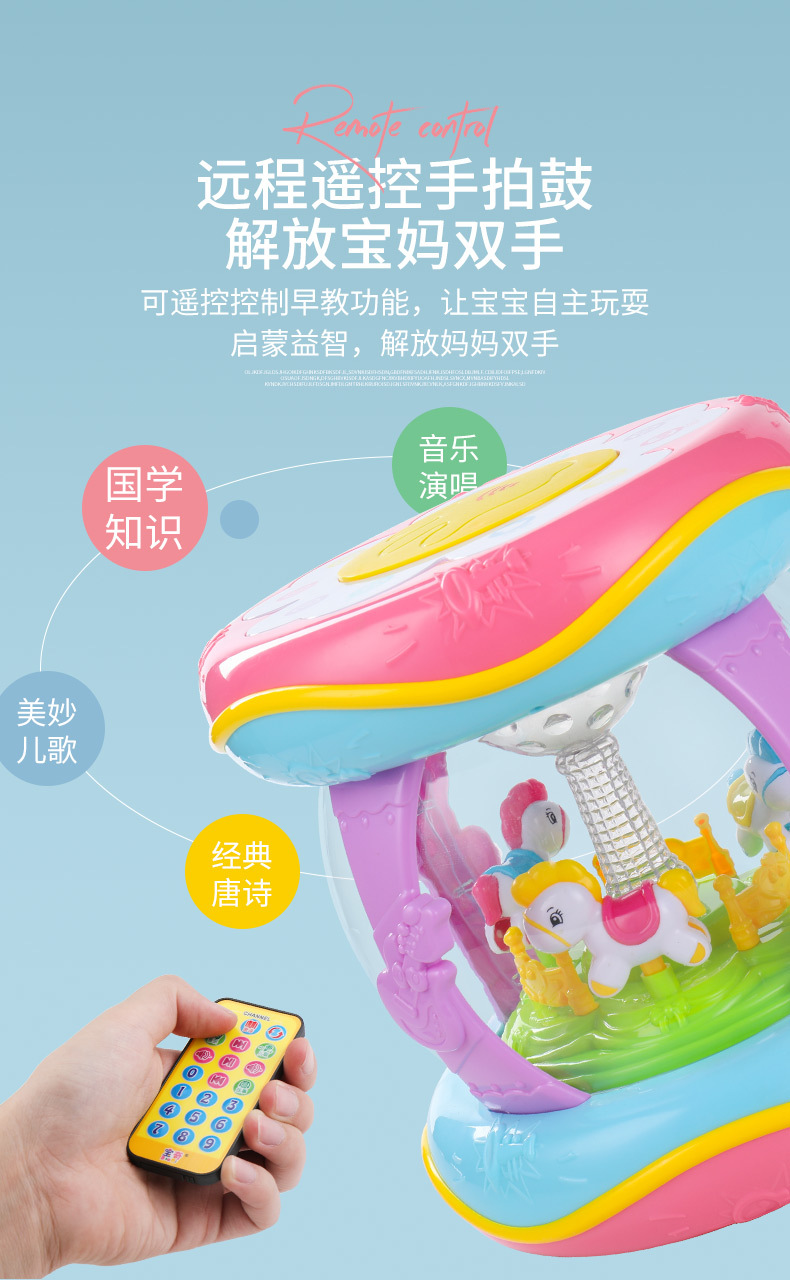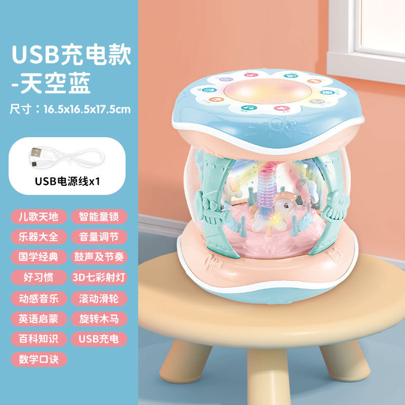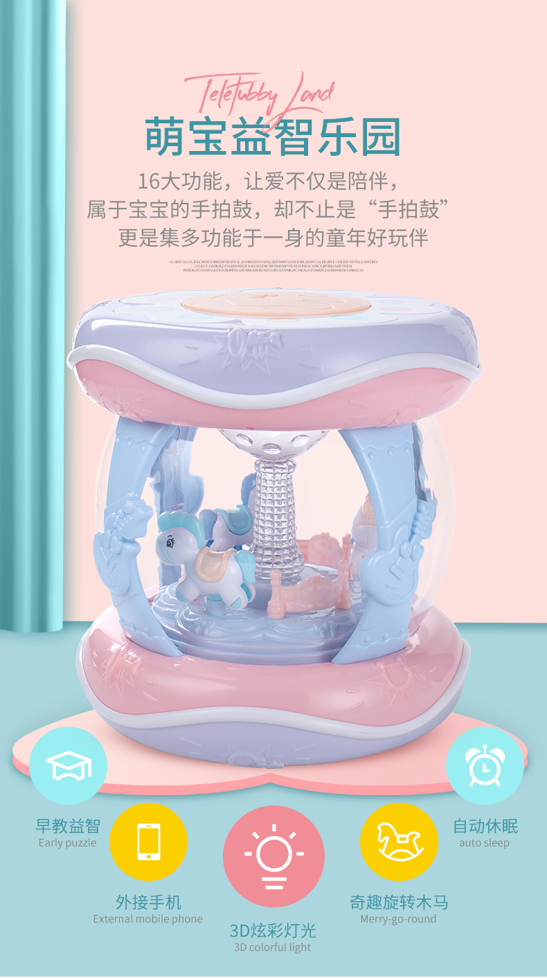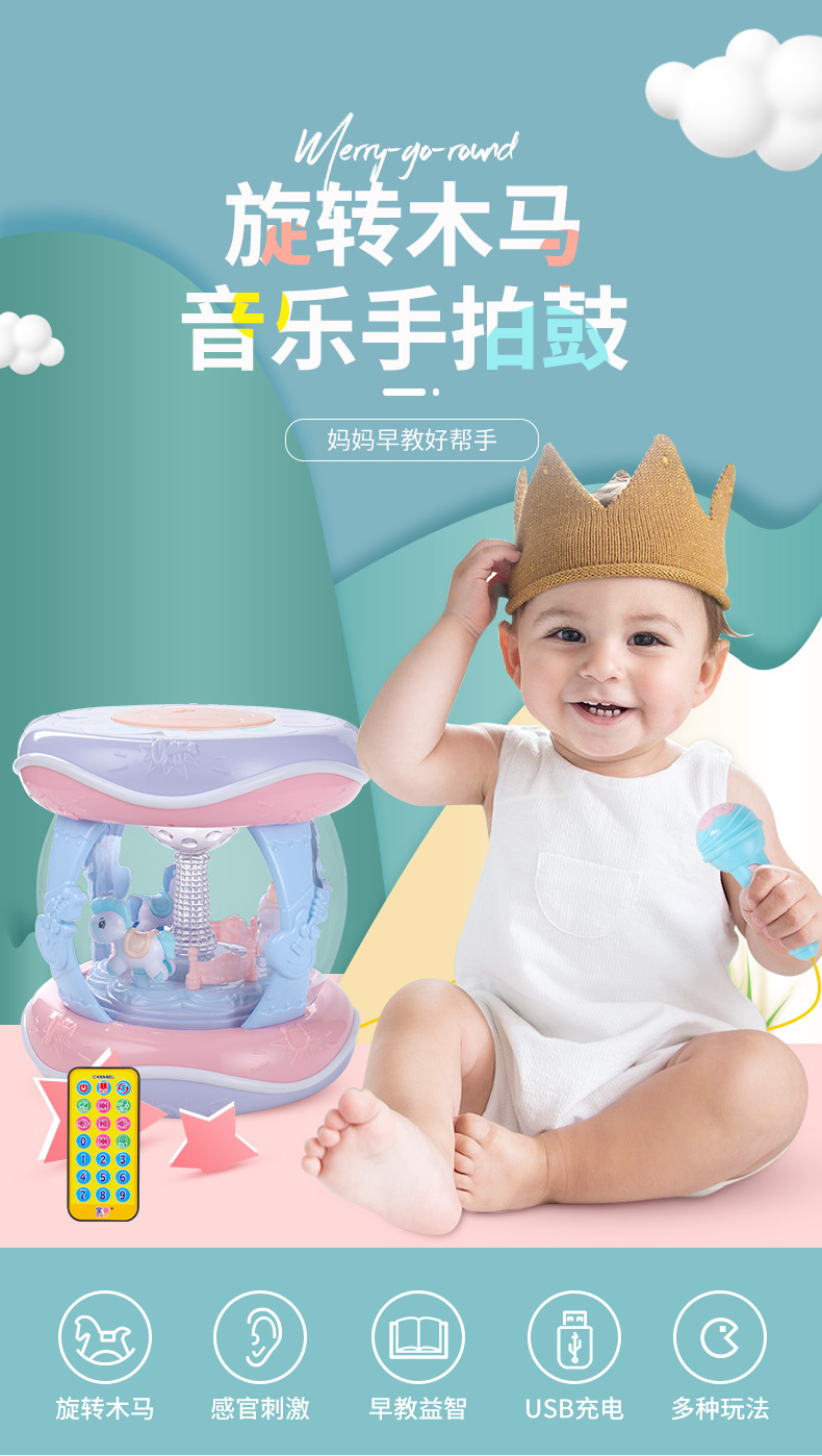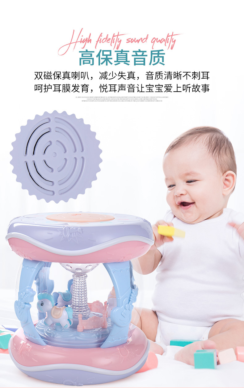 핸드 드럼 아기 장난감 0 세 회전 목마 라켓 드럼 6 조기 교육 음악 텀블러 아기 8-12 개월