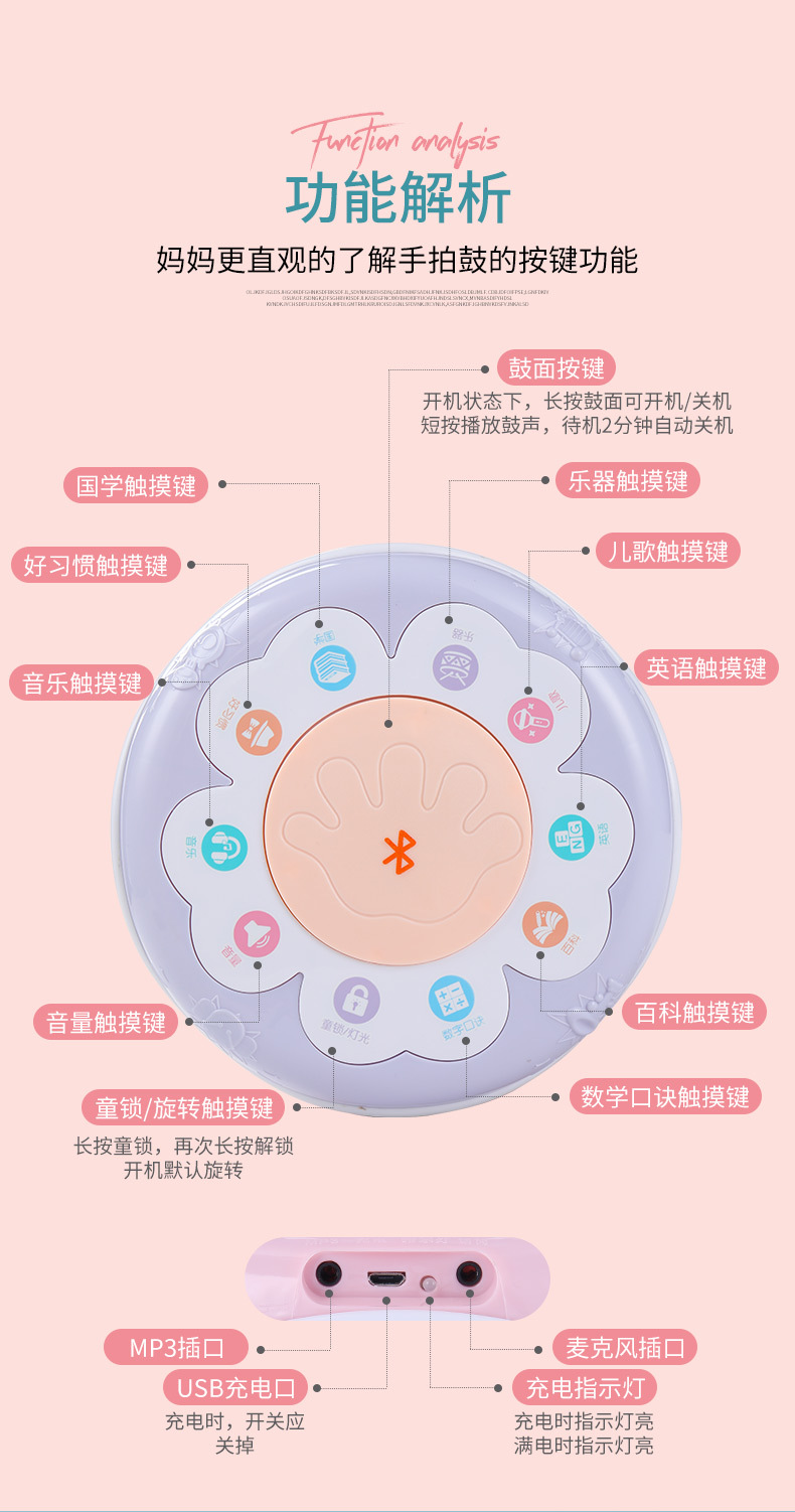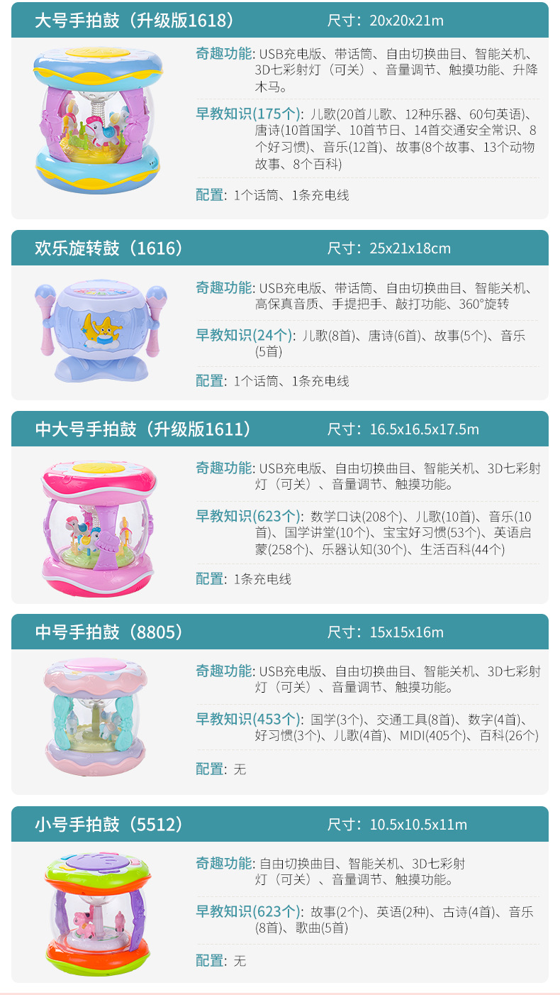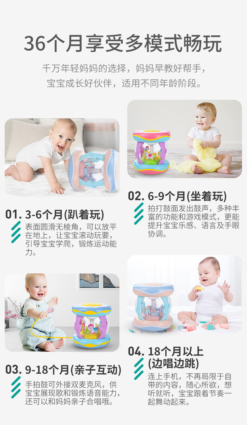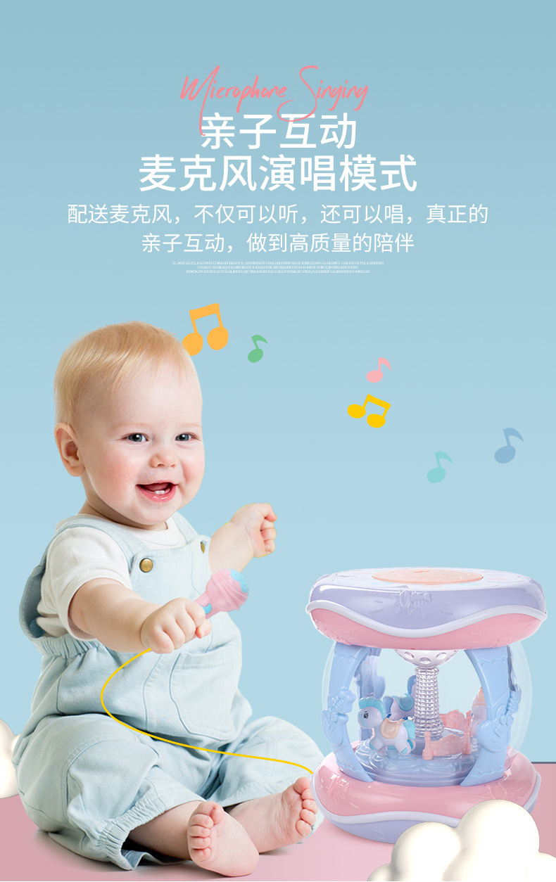 핸드 드럼 아기 장난감 0 세 회전 목마 라켓 드럼 6 조기 교육 음악 텀블러 아기 8-12 개월
