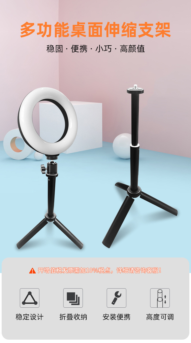 데스크탑 삼각대 망원경 높이 조정 미니 컴팩트 휴대용 저장 휴대 전화 라이브 사진 셀카 삼각대스토어 가기