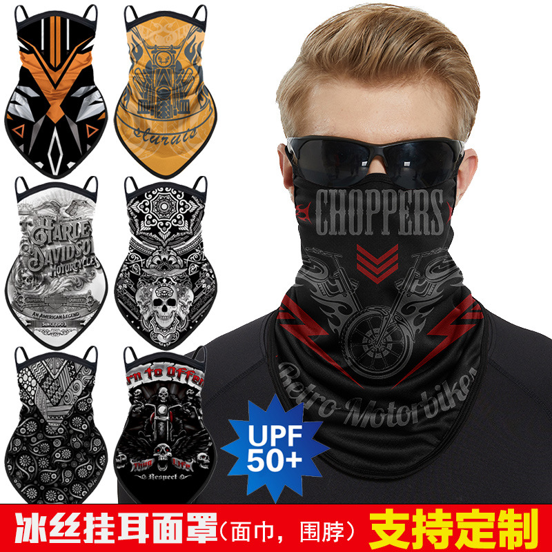 오토바이 아이스 실크 이어 마스크 삼각형 스카프 목 커버 태양 보호 야외 승마 낚시 방풍 스카프 남성과 여성의 얼굴 수건 여름