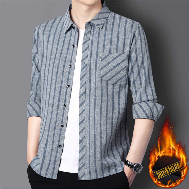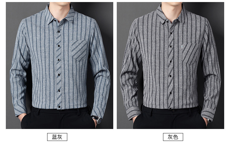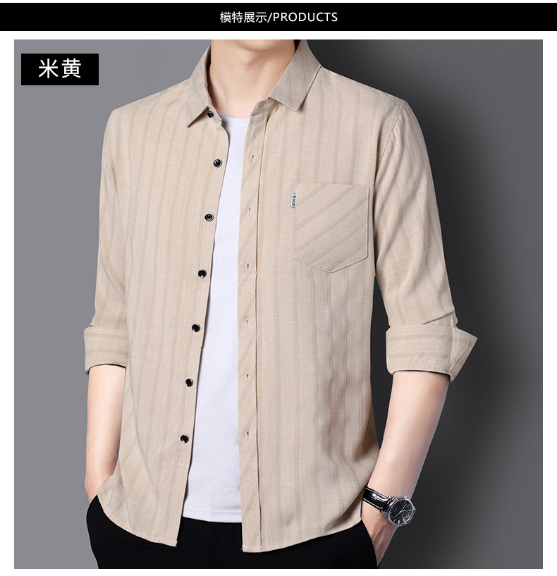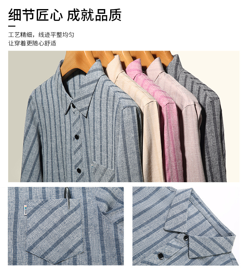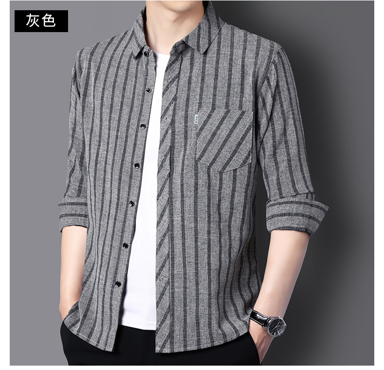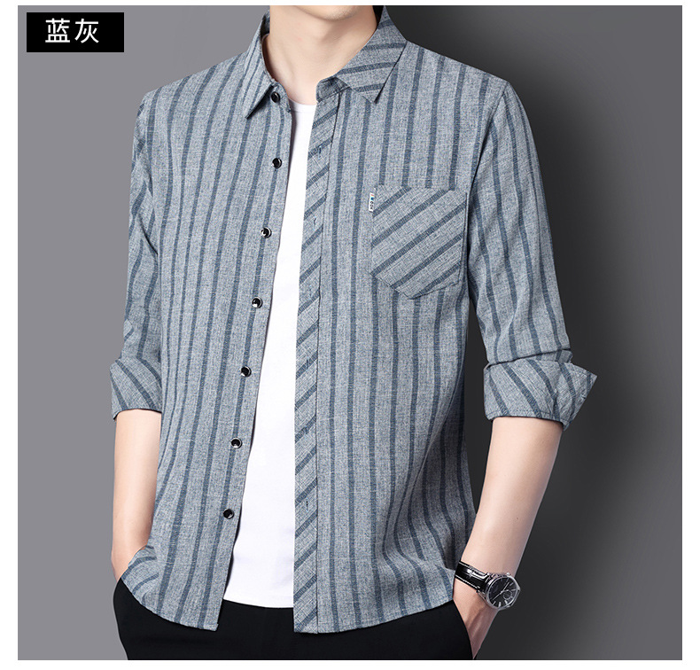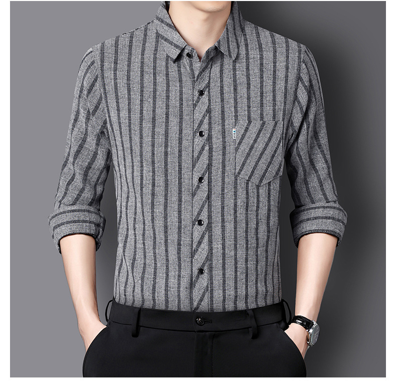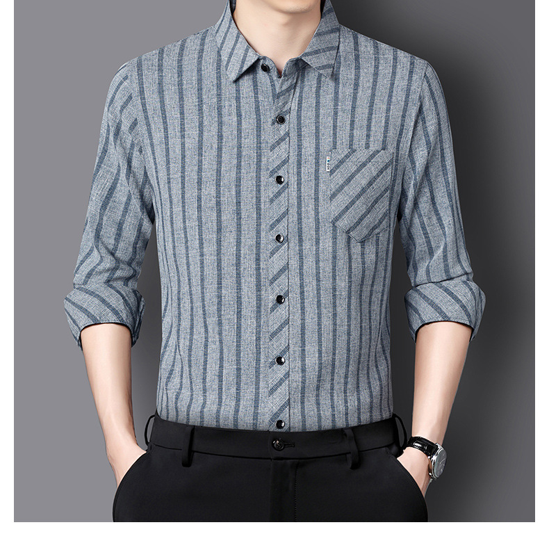 봄과 가을 두꺼운 긴팔 셔츠 남성용 느슨한면과 린넨 셔츠 젊고 중년의 느슨한 린넨 비즈니스 캐주얼 스트라이프스토어 가기