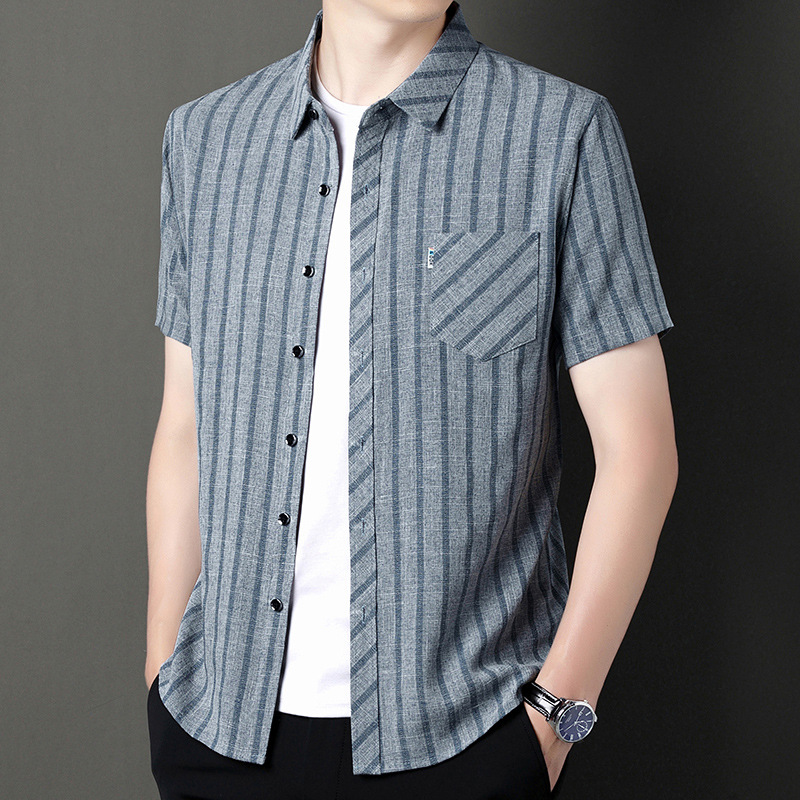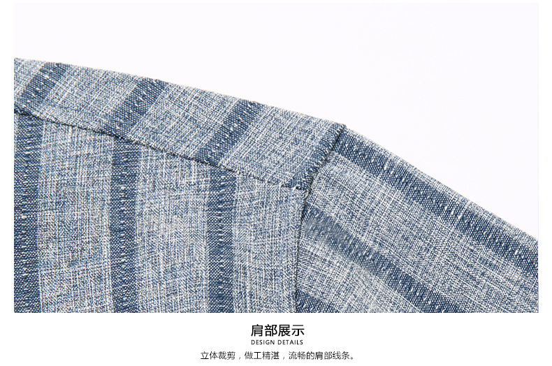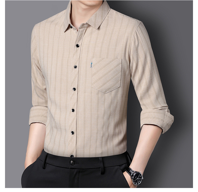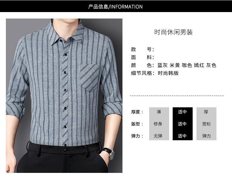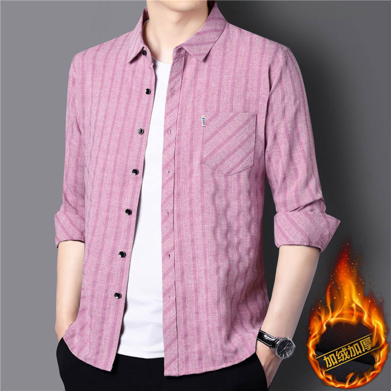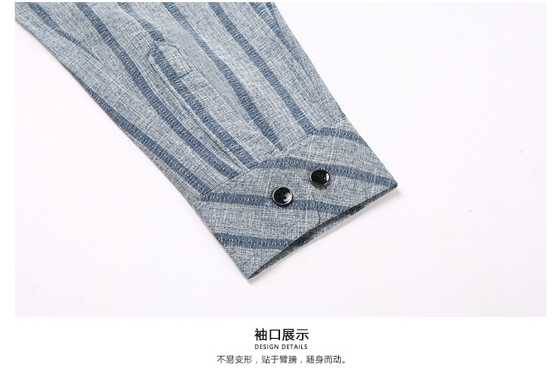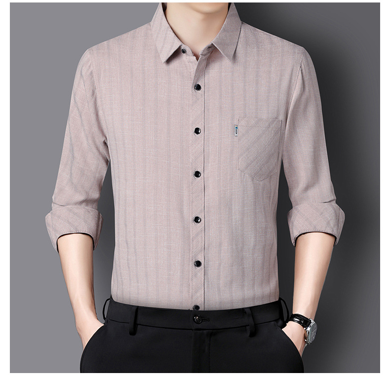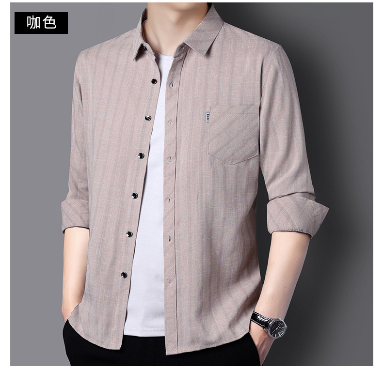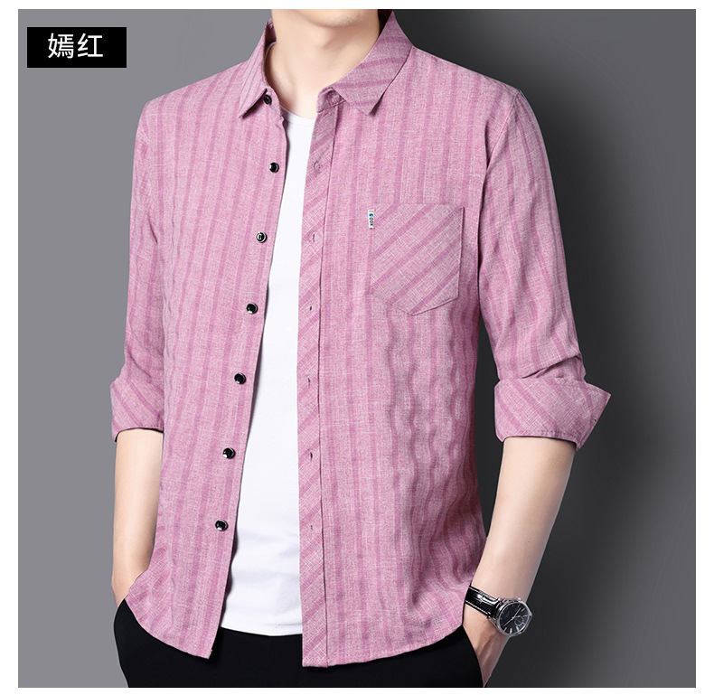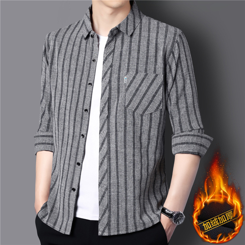 봄과 가을 두꺼운 긴팔 셔츠 남성용 느슨한면과 린넨 셔츠 젊고 중년의 느슨한 린넨 비즈니스 캐주얼 스트라이프스토어 가기