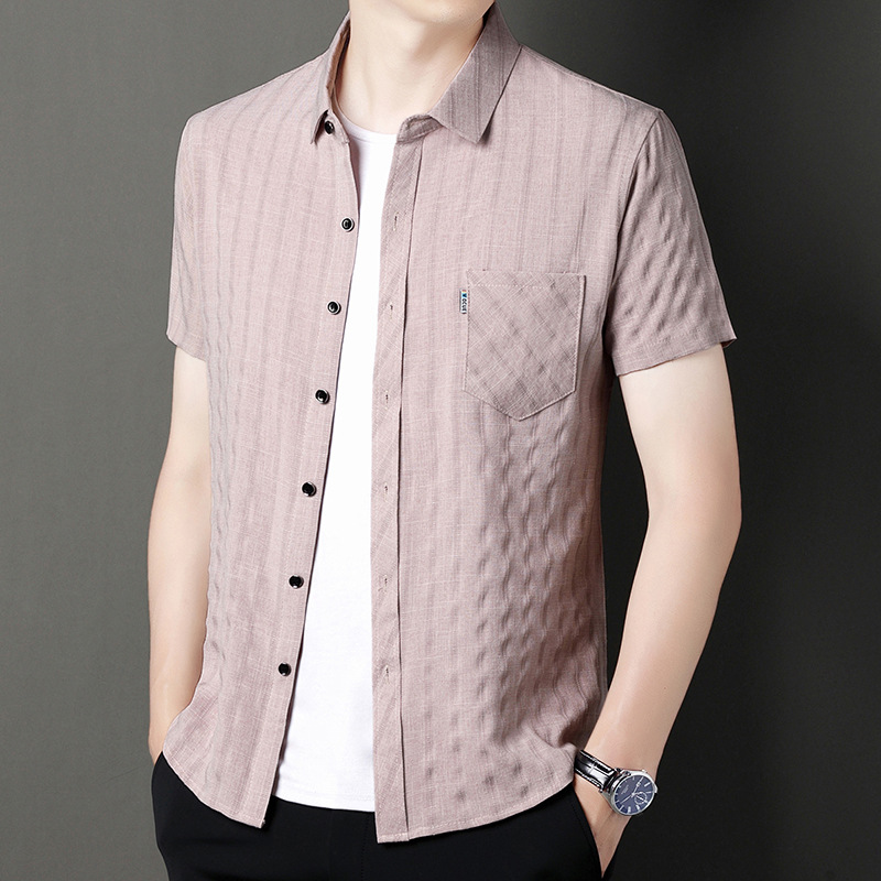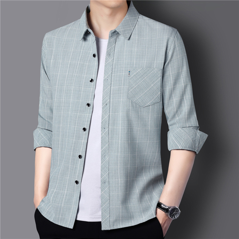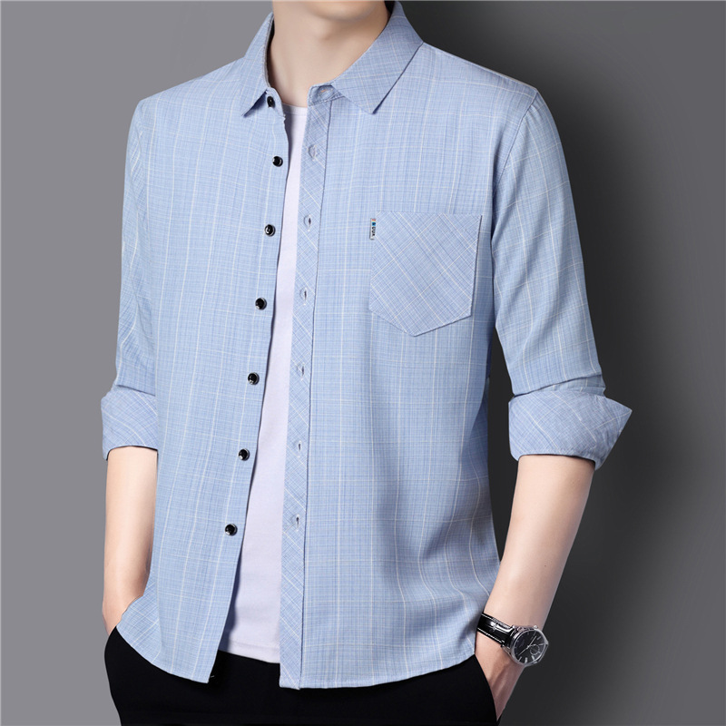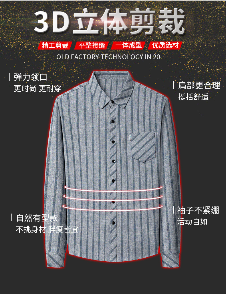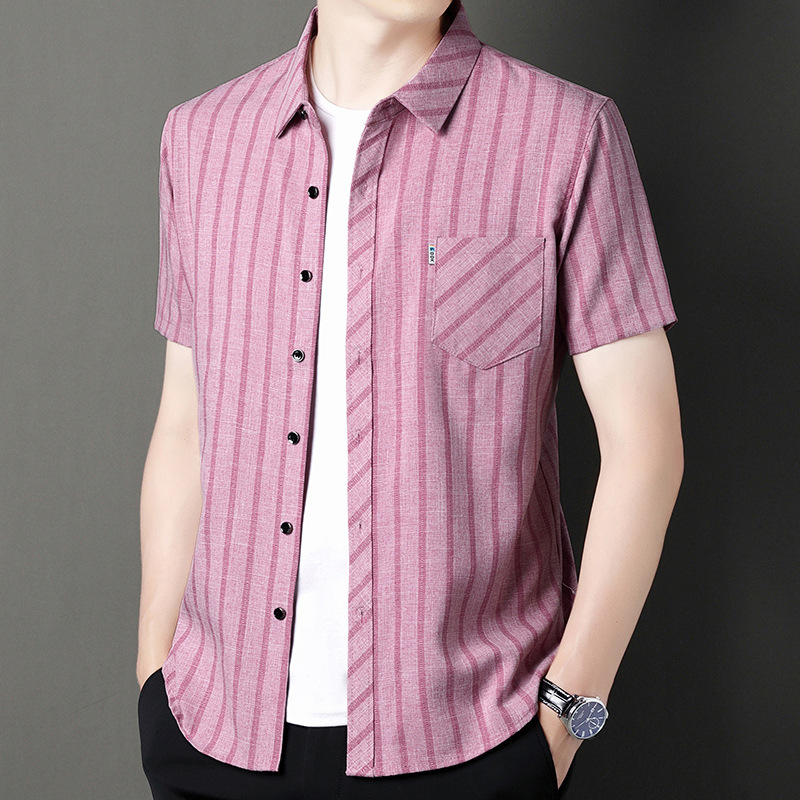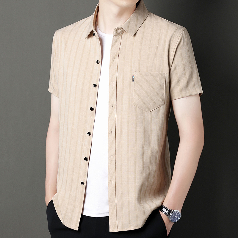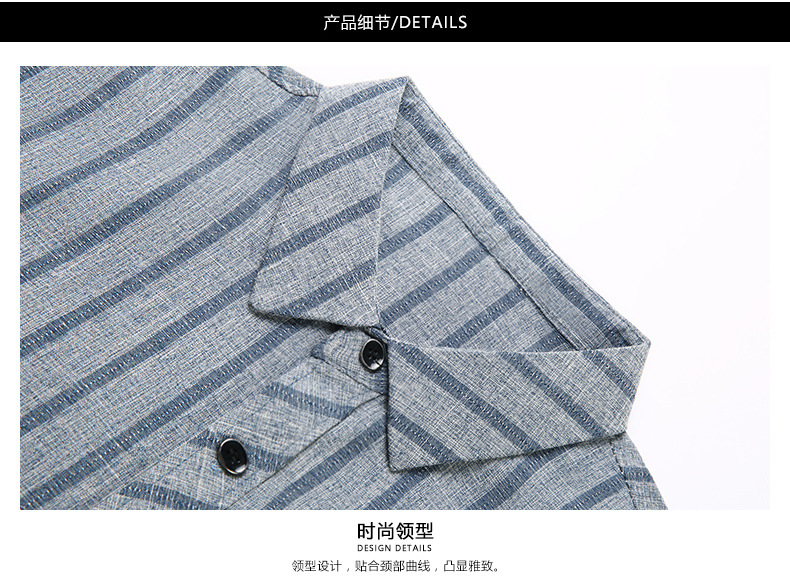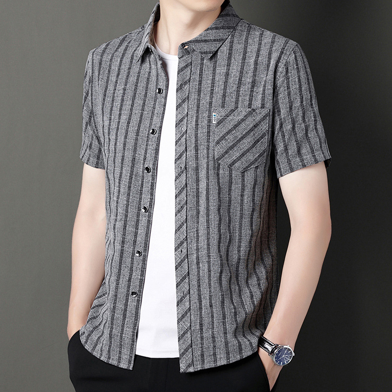 봄과 가을 두꺼운 긴팔 셔츠 남성용 느슨한면과 린넨 셔츠 젊고 중년의 느슨한 린넨 비즈니스 캐주얼 스트라이프스토어 가기