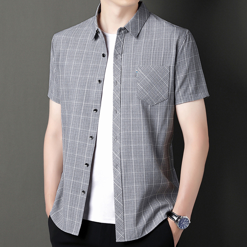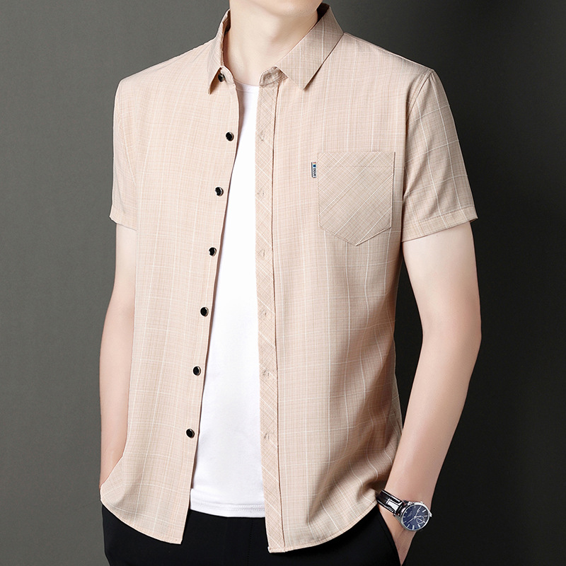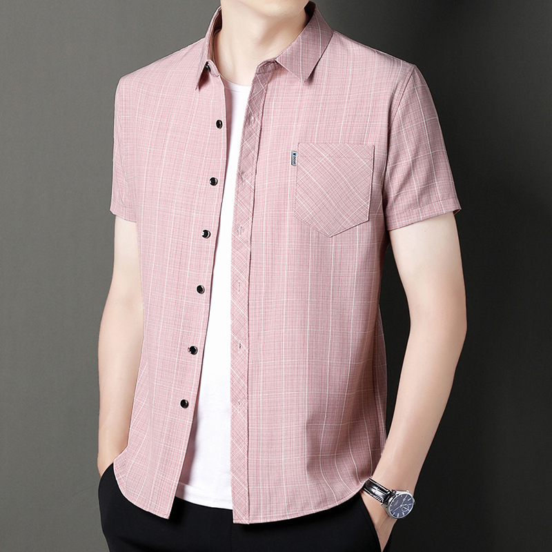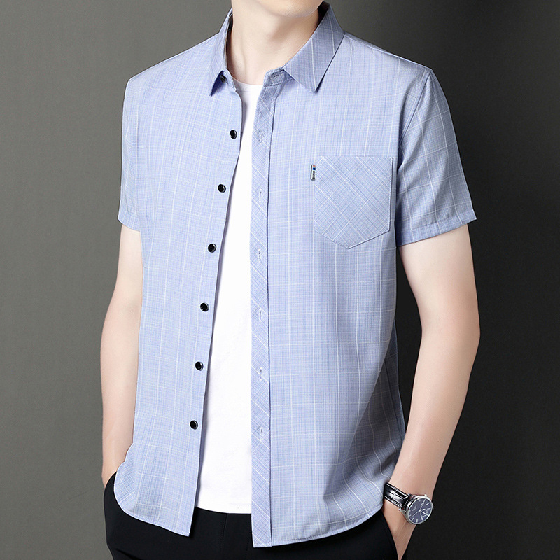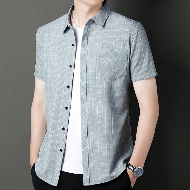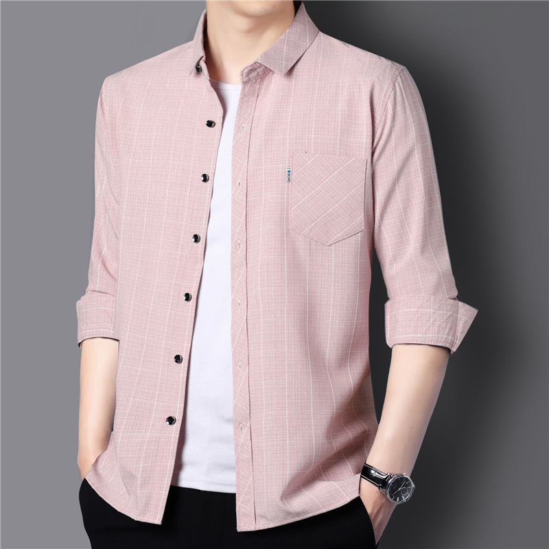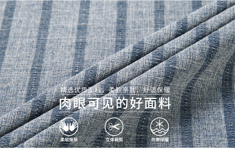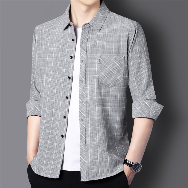 봄과 가을 두꺼운 긴팔 셔츠 남성용 느슨한면과 린넨 셔츠 젊고 중년의 느슨한 린넨 비즈니스 캐주얼 스트라이프스토어 가기