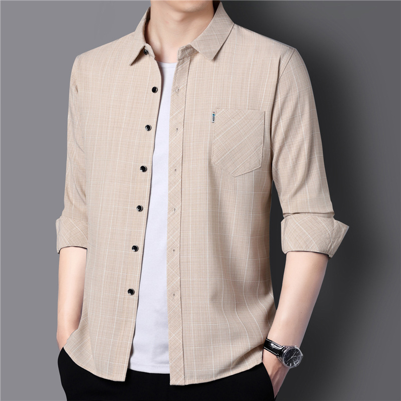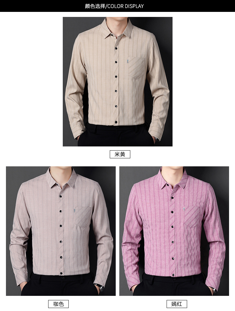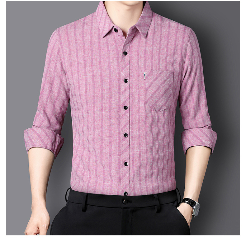 봄과 가을 두꺼운 긴팔 셔츠 남성용 느슨한면과 린넨 셔츠 젊고 중년의 느슨한 린넨 비즈니스 캐주얼 스트라이프