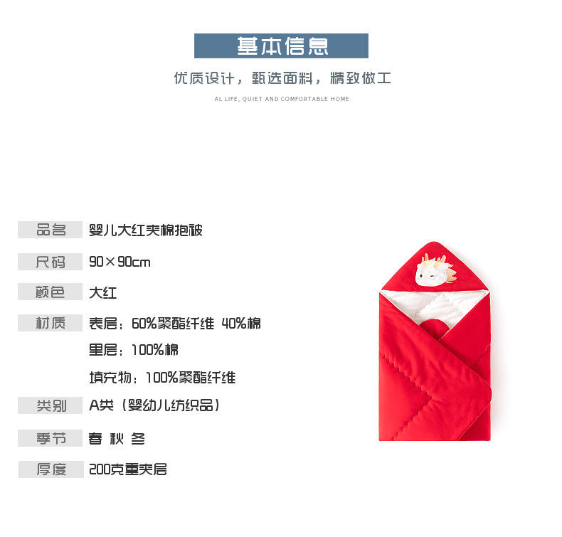 신생아 홍면 패딩 이불 신생아 이불 면화 가을과 겨울 아기 이불로 아기 새해 용품스토어 가기