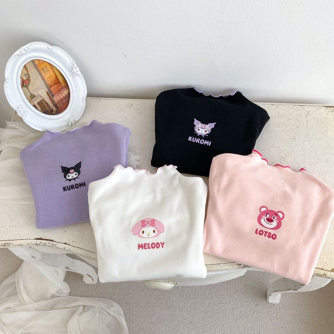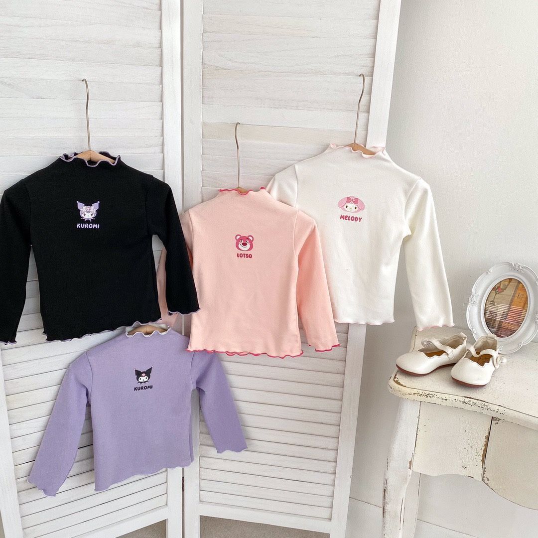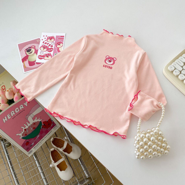 드 벨벳 바닥 셔츠 소녀 반 터틀넥 봄과 가을 새로운 긴 소매 티셔츠 나무 귀 아기 올 매치 탑 따뜻한 패션스토어 가기