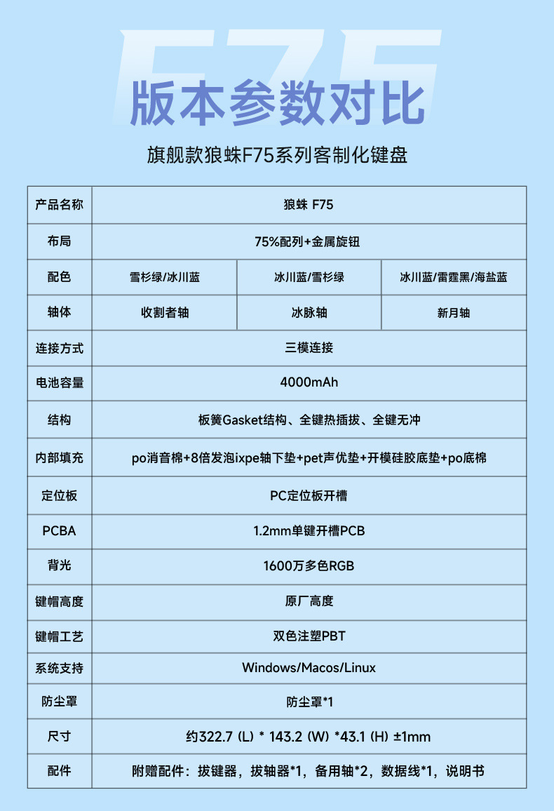 Wolf Spider F75 맞춤형 기계식 키보드 개스킷 구조 풀 키 핫 스왑 가능 3 모드 Bluetooth 게임