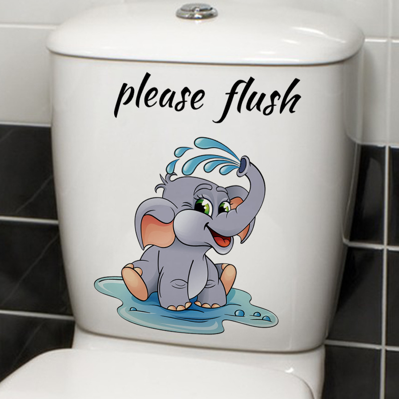 Huizhicai MT23060 귀여운 코끼리 화장실 스티커 귀여운 재미있는 만화 스티커 화장실 방수 벽