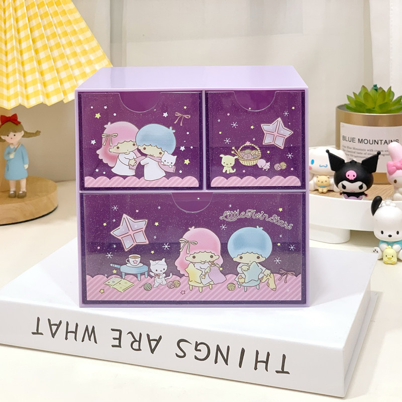 Ins 스타일 소녀의 심장 Kulomi 데스크탑 서랍 상자 대형 반짝이 투명 저장 상자 3 칸 정렬 마감 상자스토어 가기