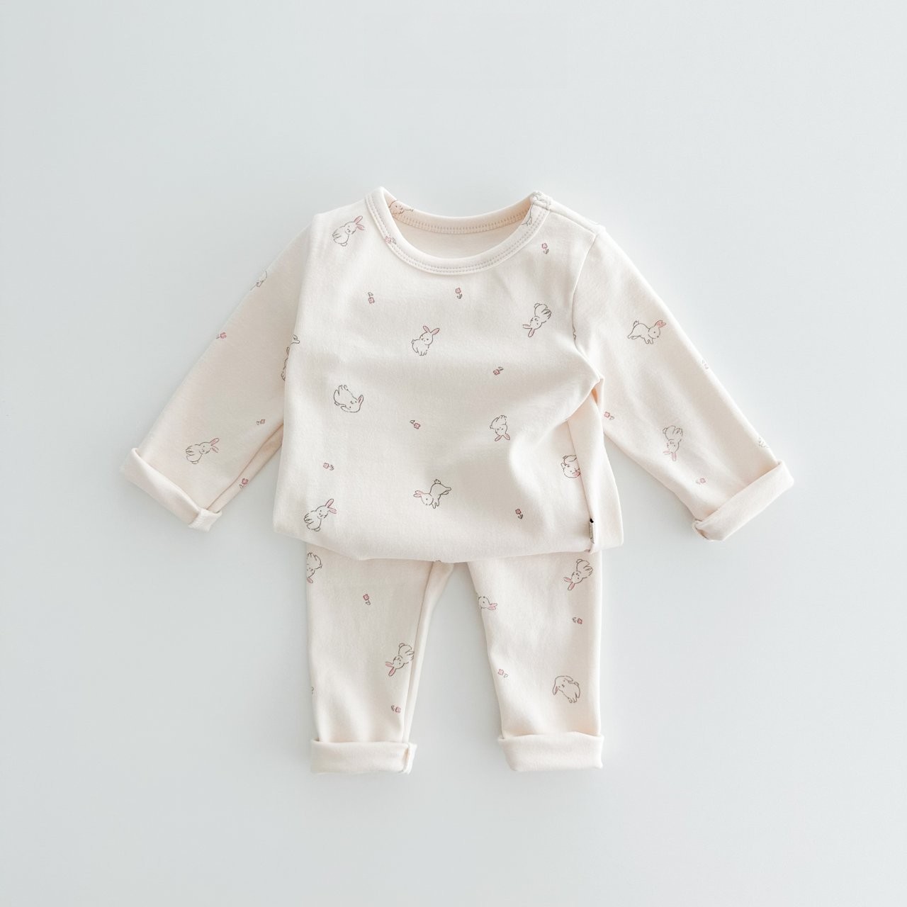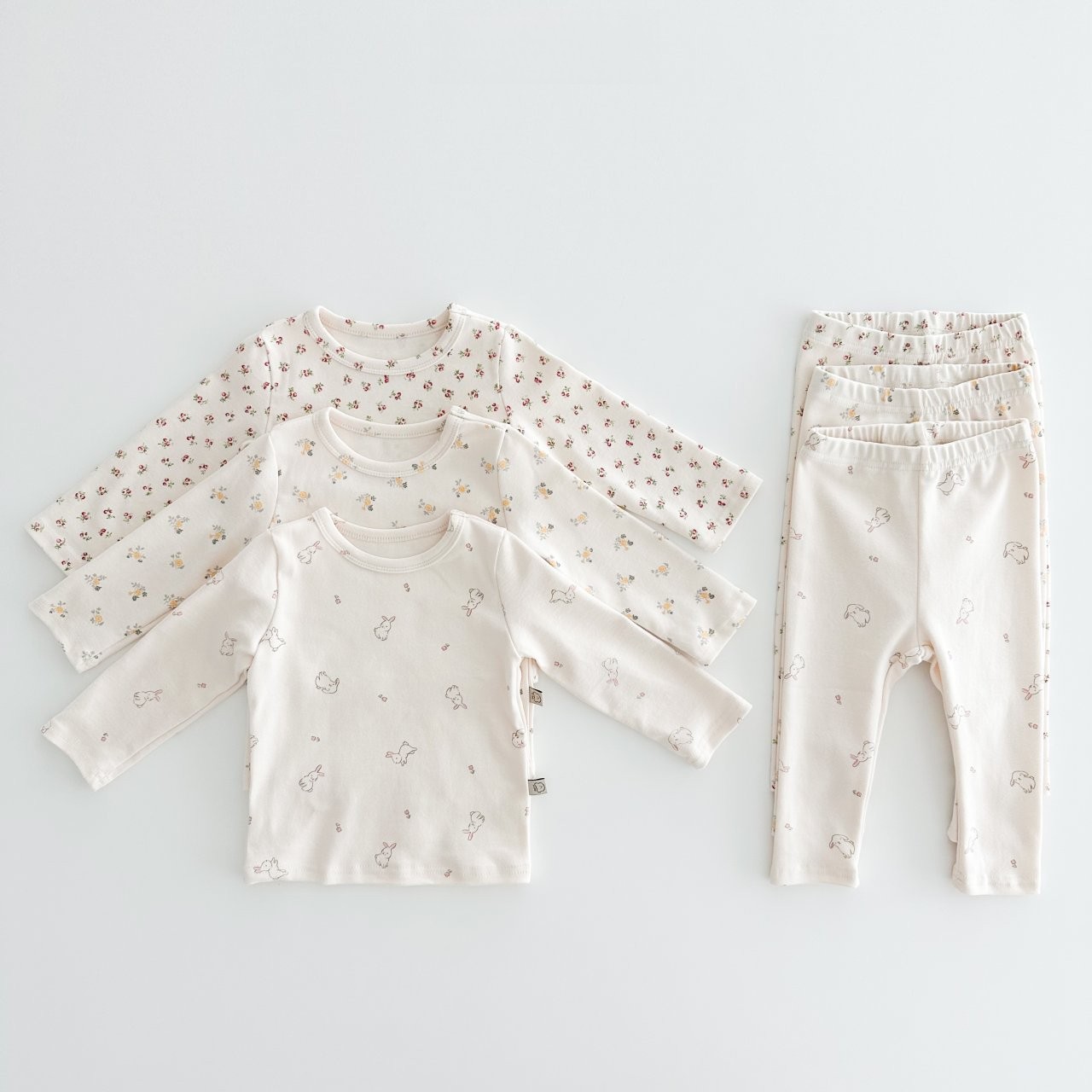 Ins 한국식 아기 남녀 면 인쇄 패딩 의류 홈 세트 신생아 부드러운 통기성 파자마 세트