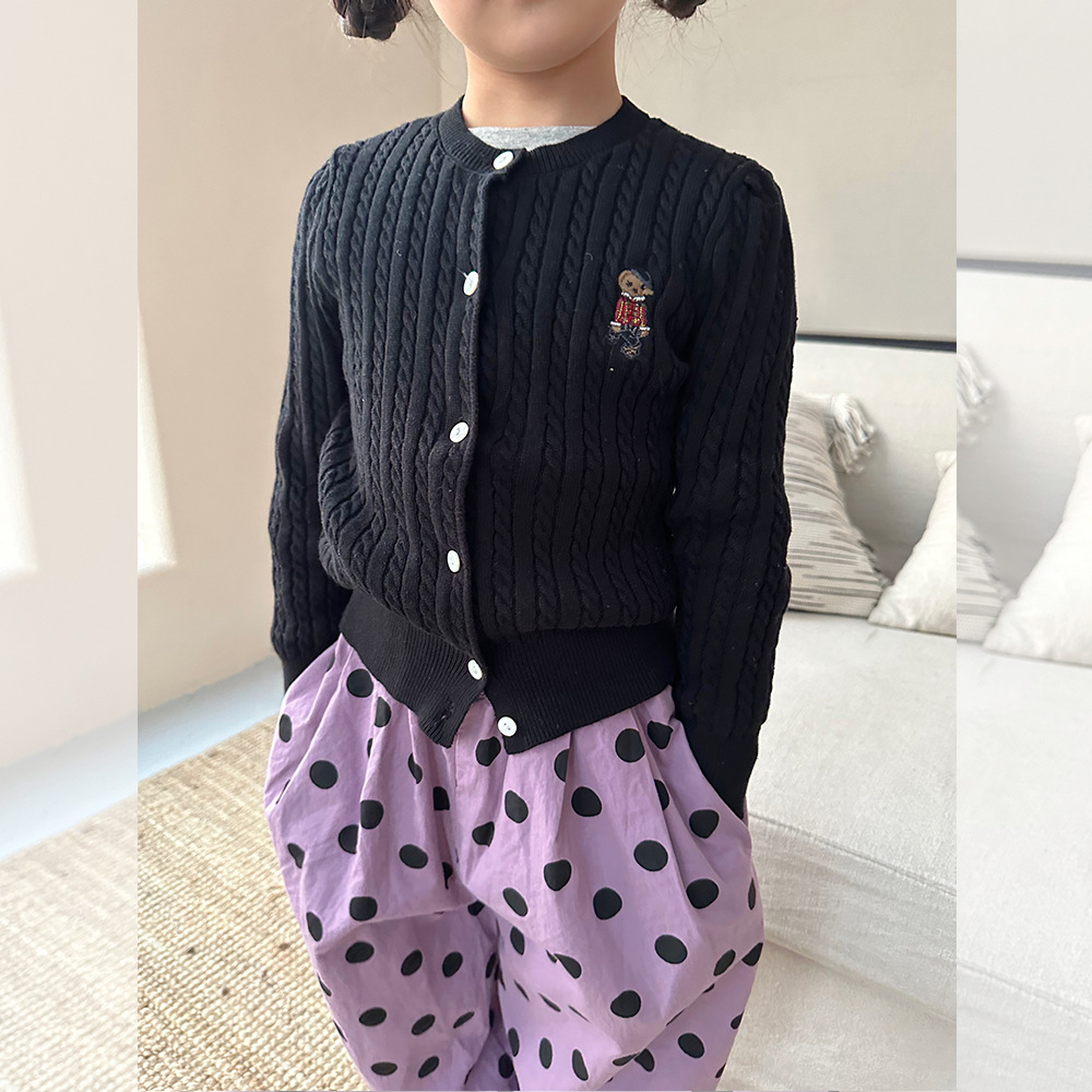 Zuo Xiaoran 아동복 2024 봄 어린이 한국식 만화 자수 카디건 소녀의 긴팔 둥근 목 곰 어린이 스웨터