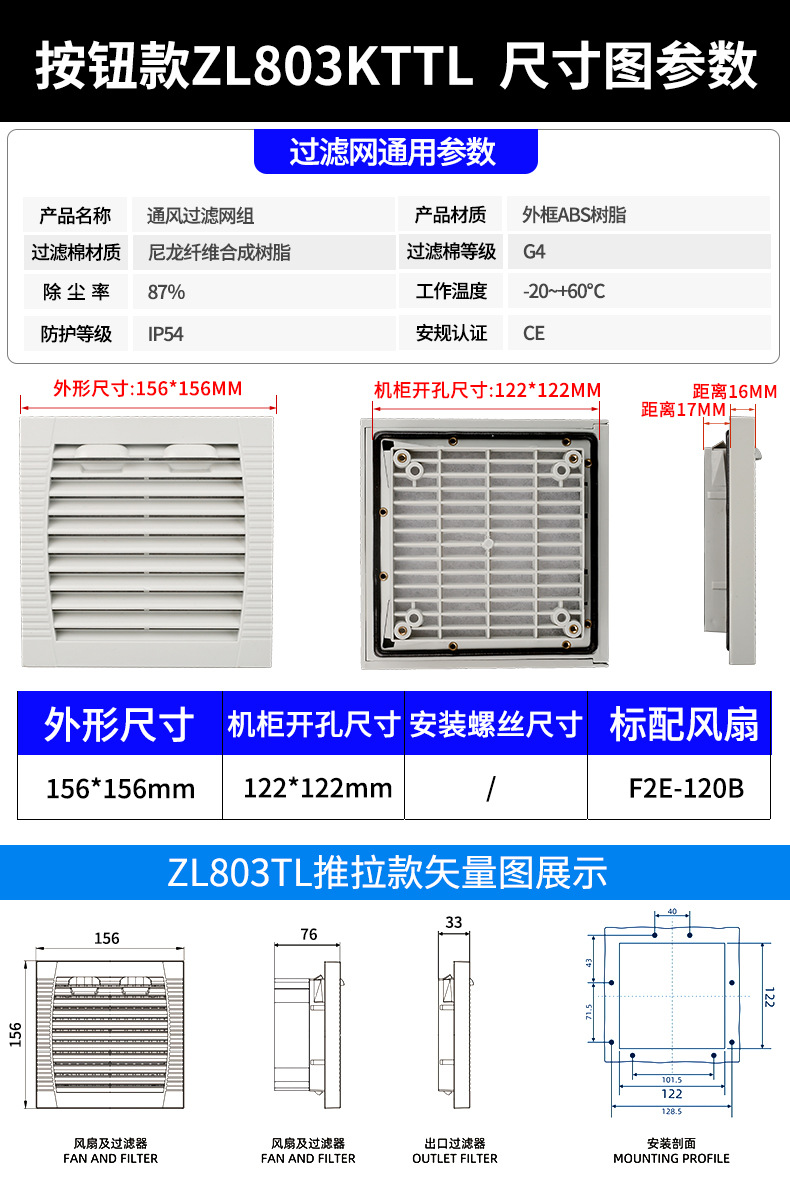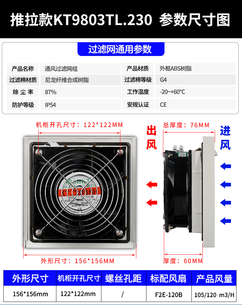 Kaitian SHKT 푸시-풀 모델 ZL803KTTL 환기 필터 세트 캐비닛 냉각 팬 블라인드 필터스토어 가기