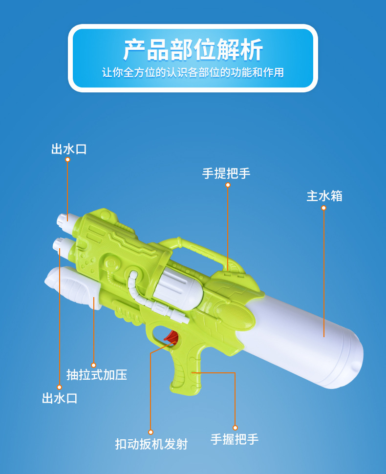 새로운 표류 공기 압력 물 총 장난감 해변 물 스프레이 어린이 대형 물 총 장난감 도매스토어 가기