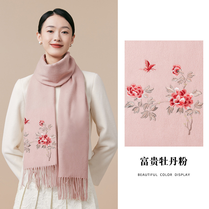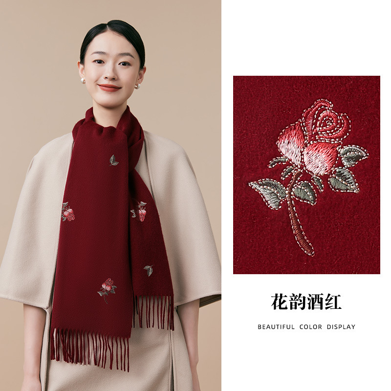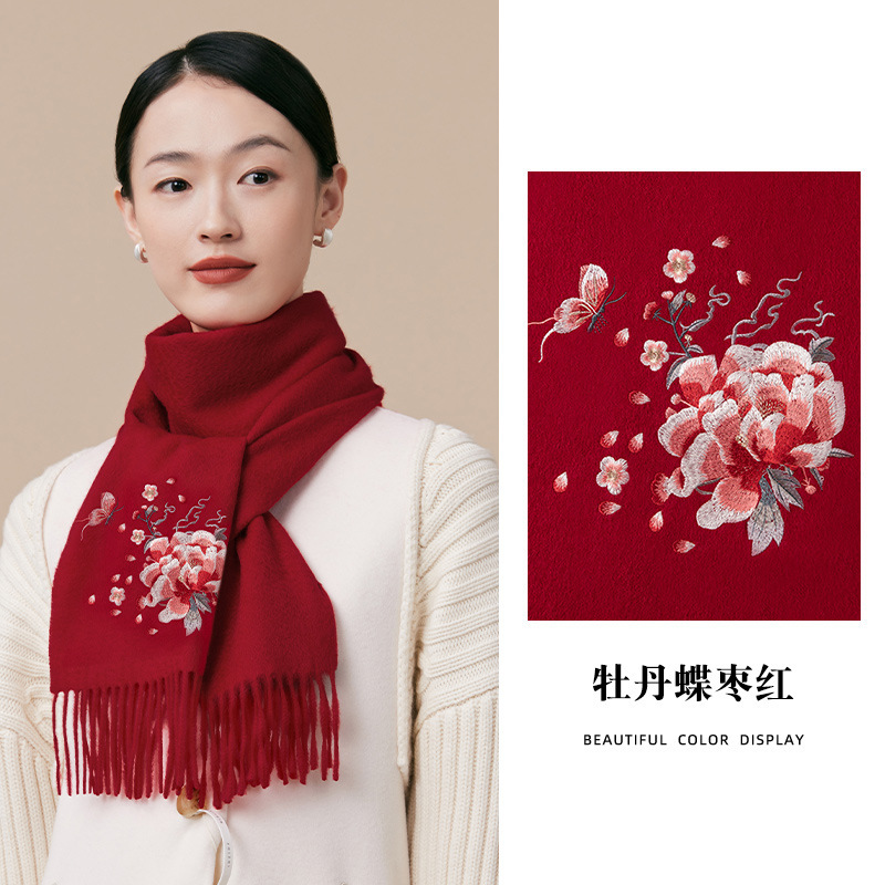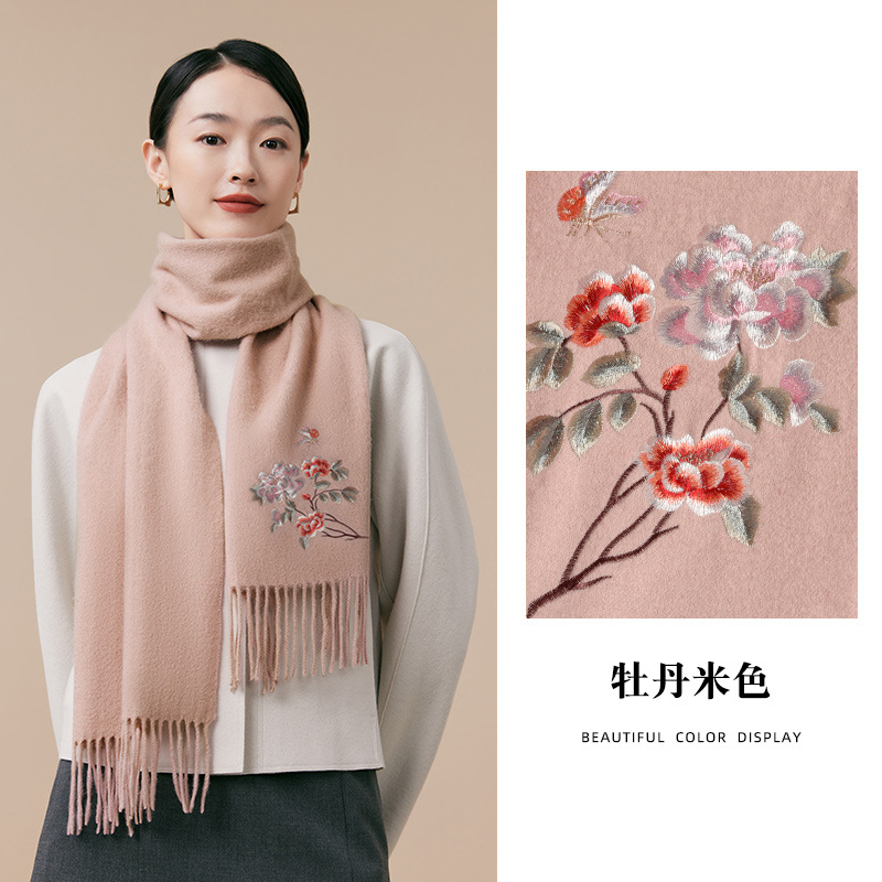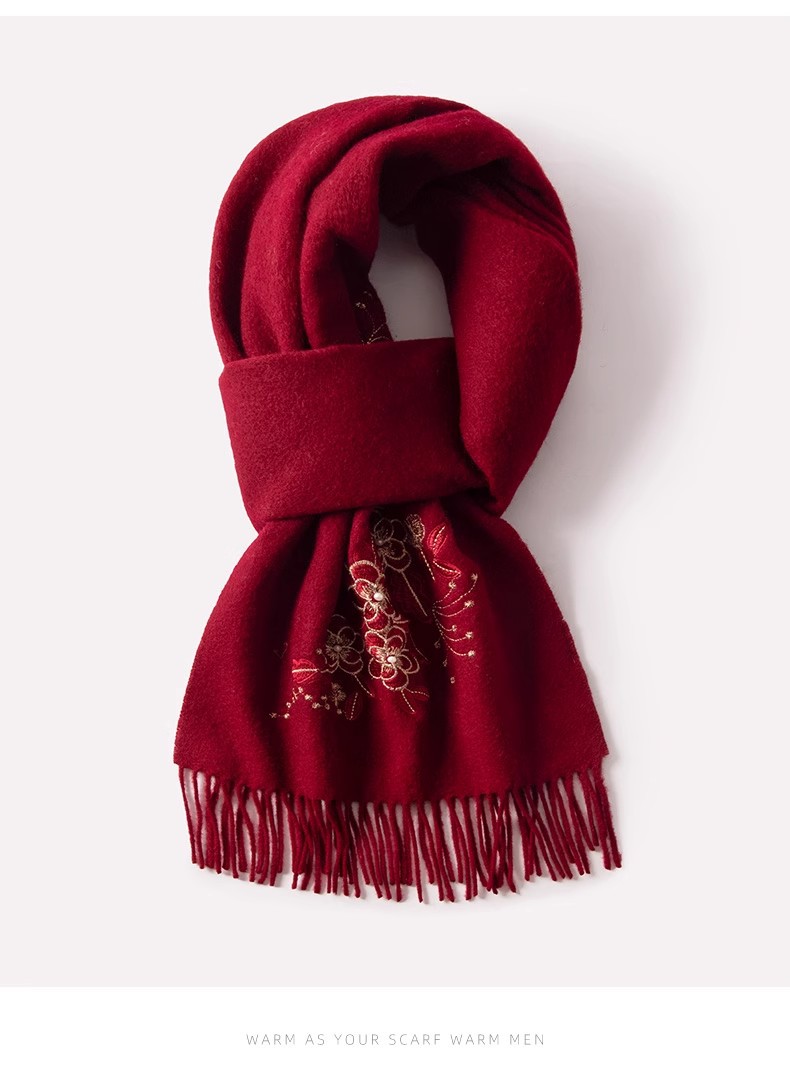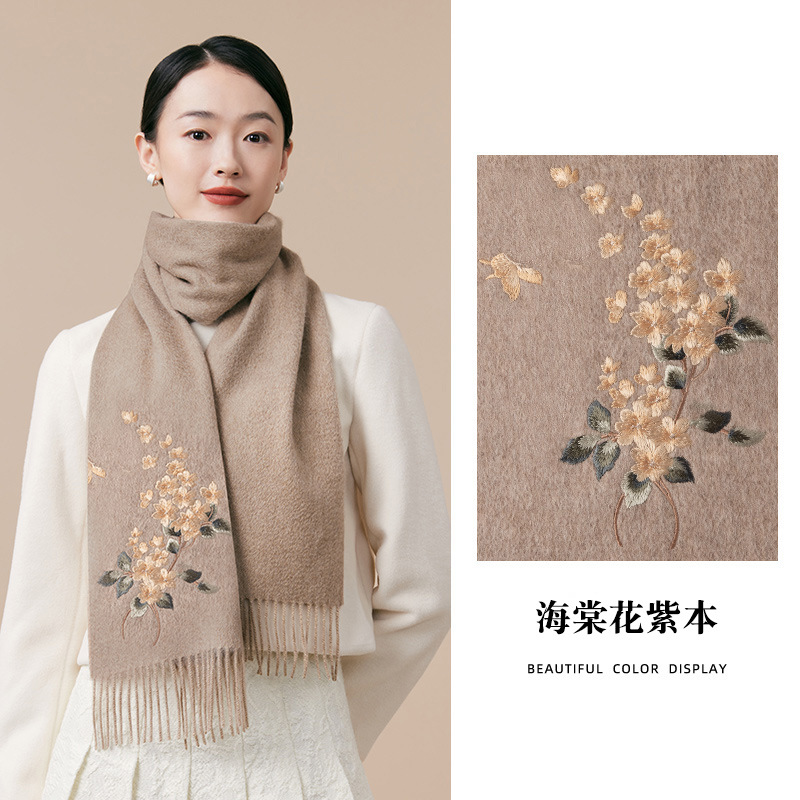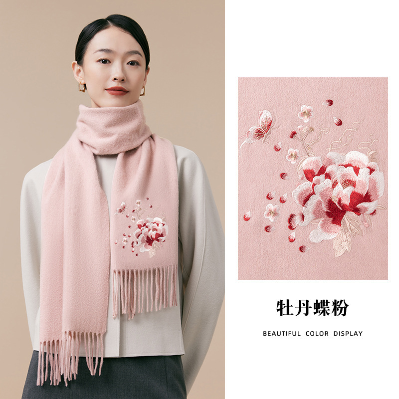 100% 양모 겨울 스카프 여성 겨울 선물 아내 생일 선물을위한 어머니 국가 스타일 수 놓은 스카프 목도리 여성