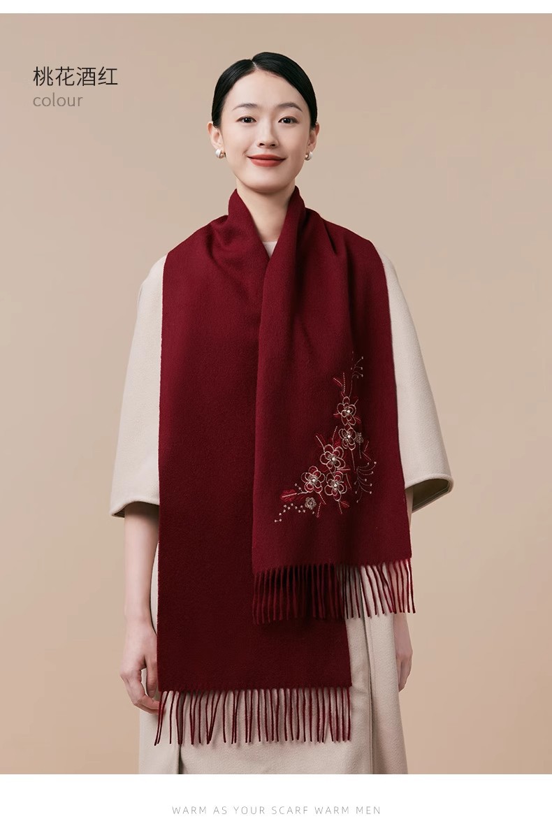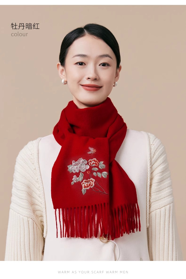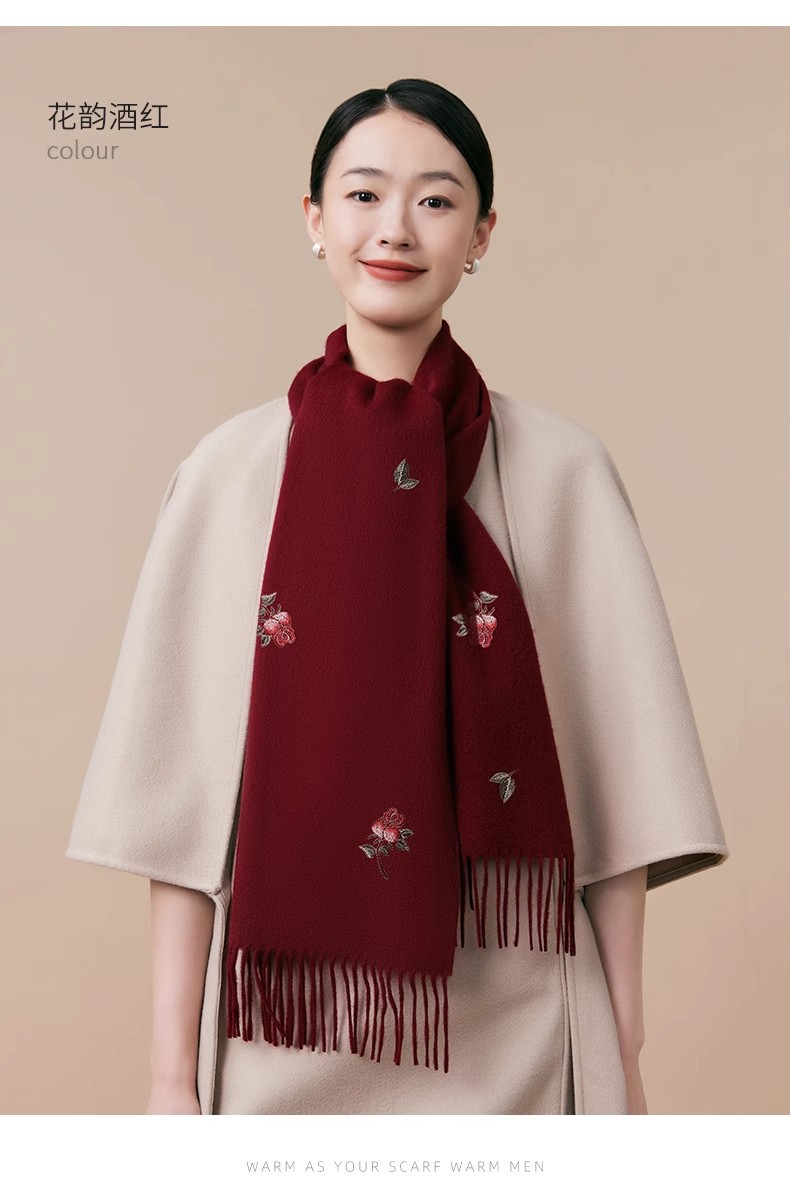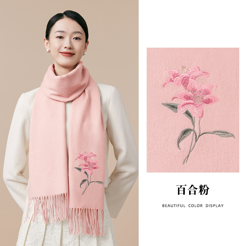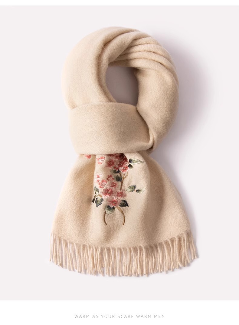 100% 양모 겨울 스카프 여성 겨울 선물 아내 생일 선물을위한 어머니 국가 스타일 수 놓은 스카프 목도리 여성