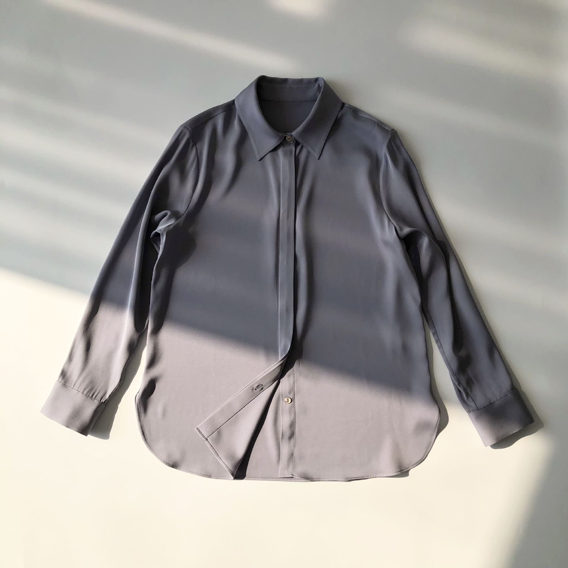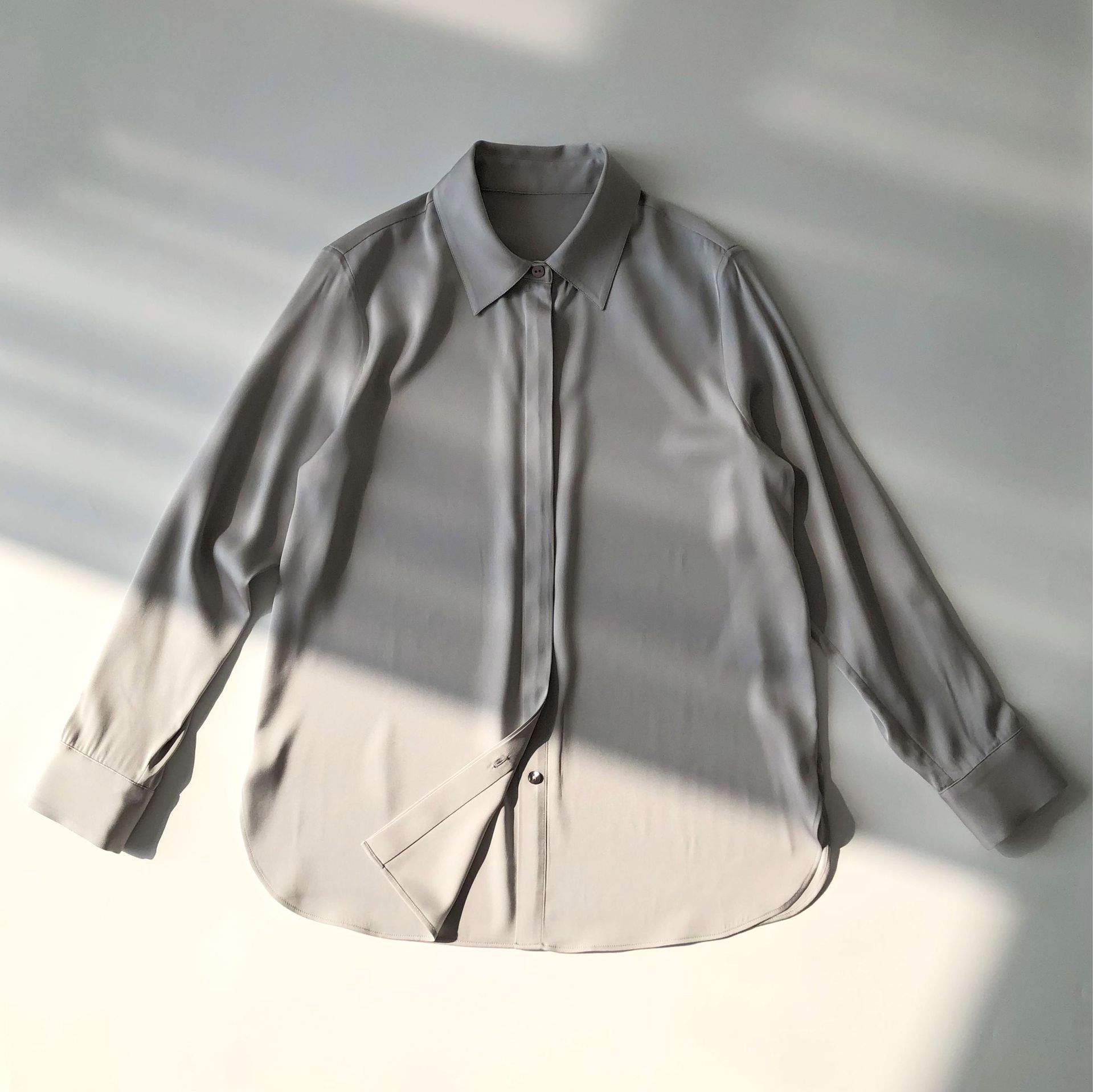 TH通勤尖领·简约利落 丝滑双乔缎精致翻领真丝长袖衬衫
