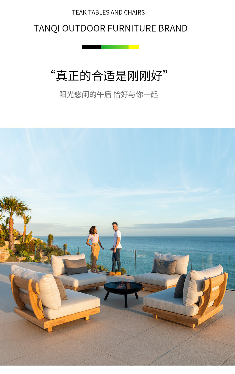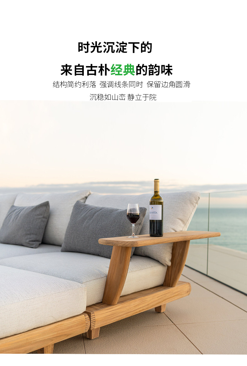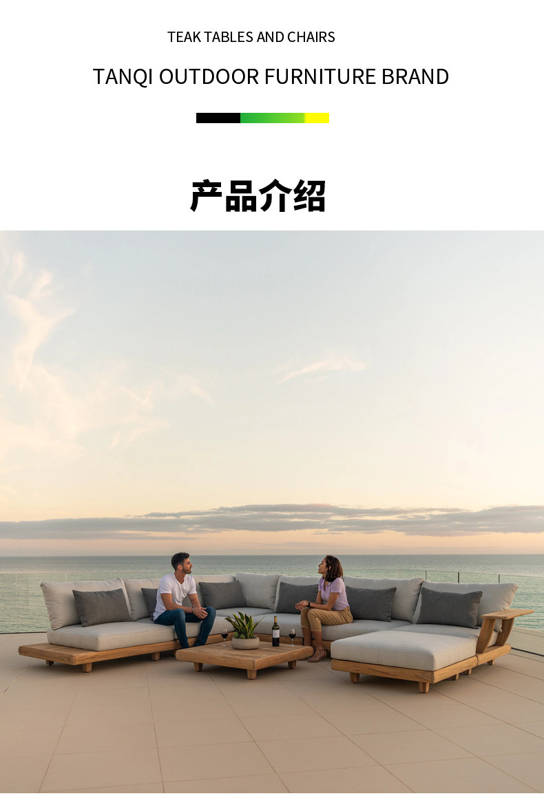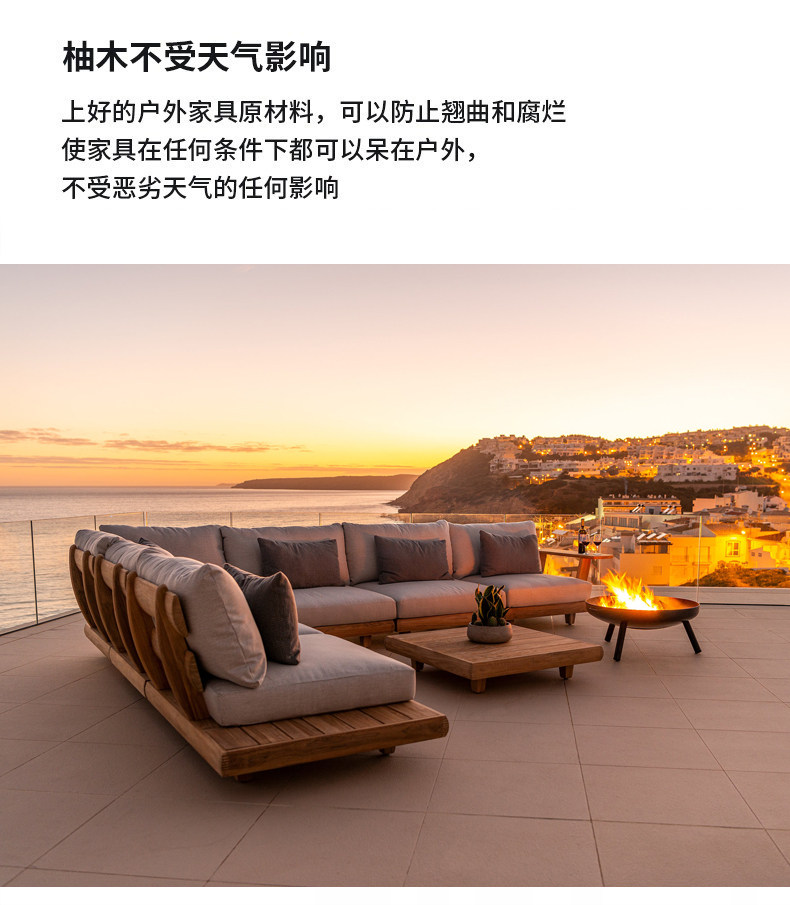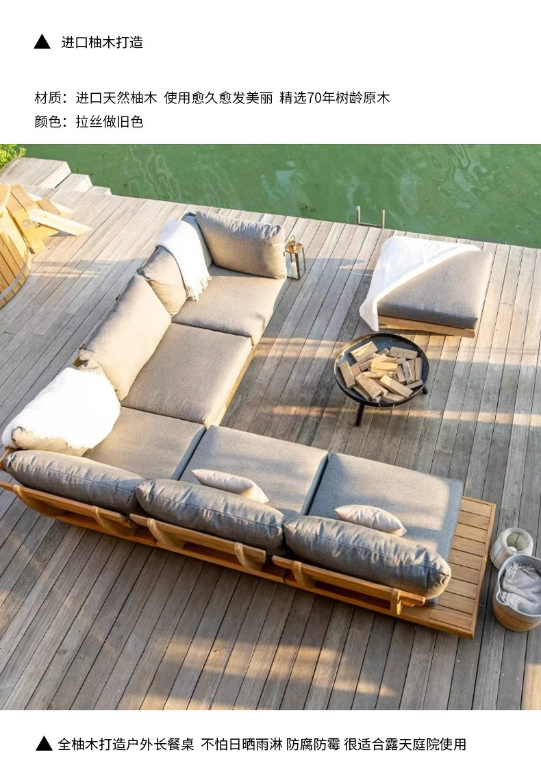 야외 소파 티크 안뜰 빌라 아파트 단단한 나무 야외 실내 비 방지 태양 방지 티 테이블 조합 중국 가구스토어 가기