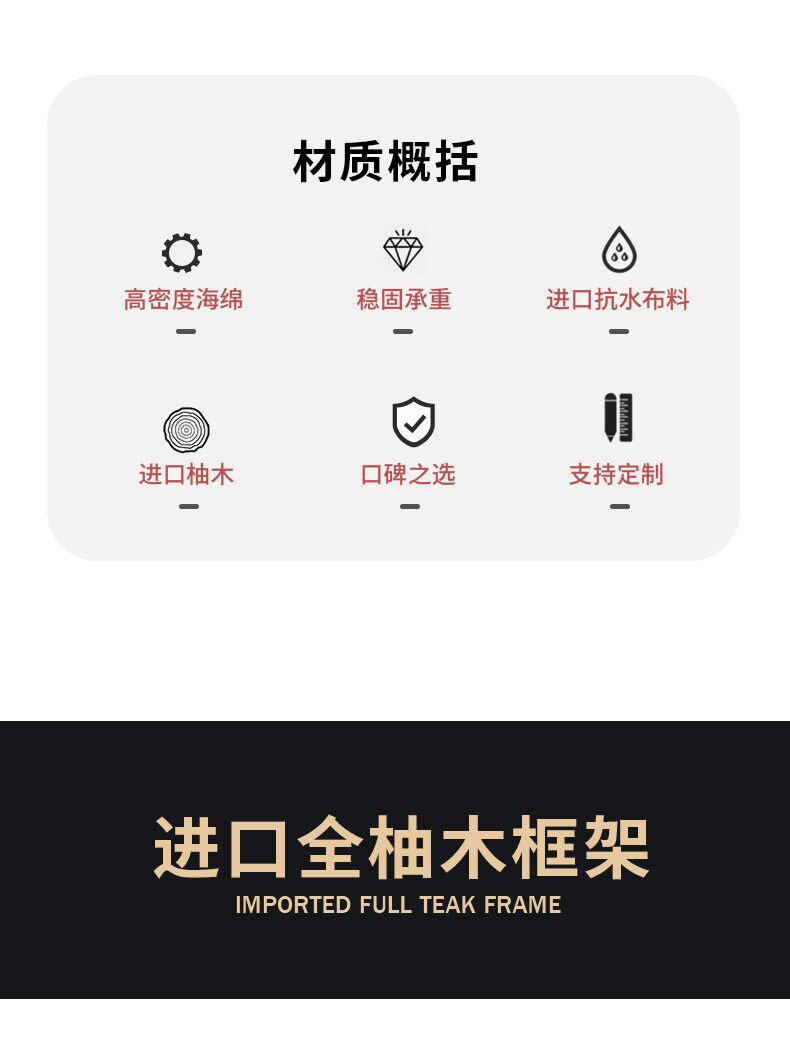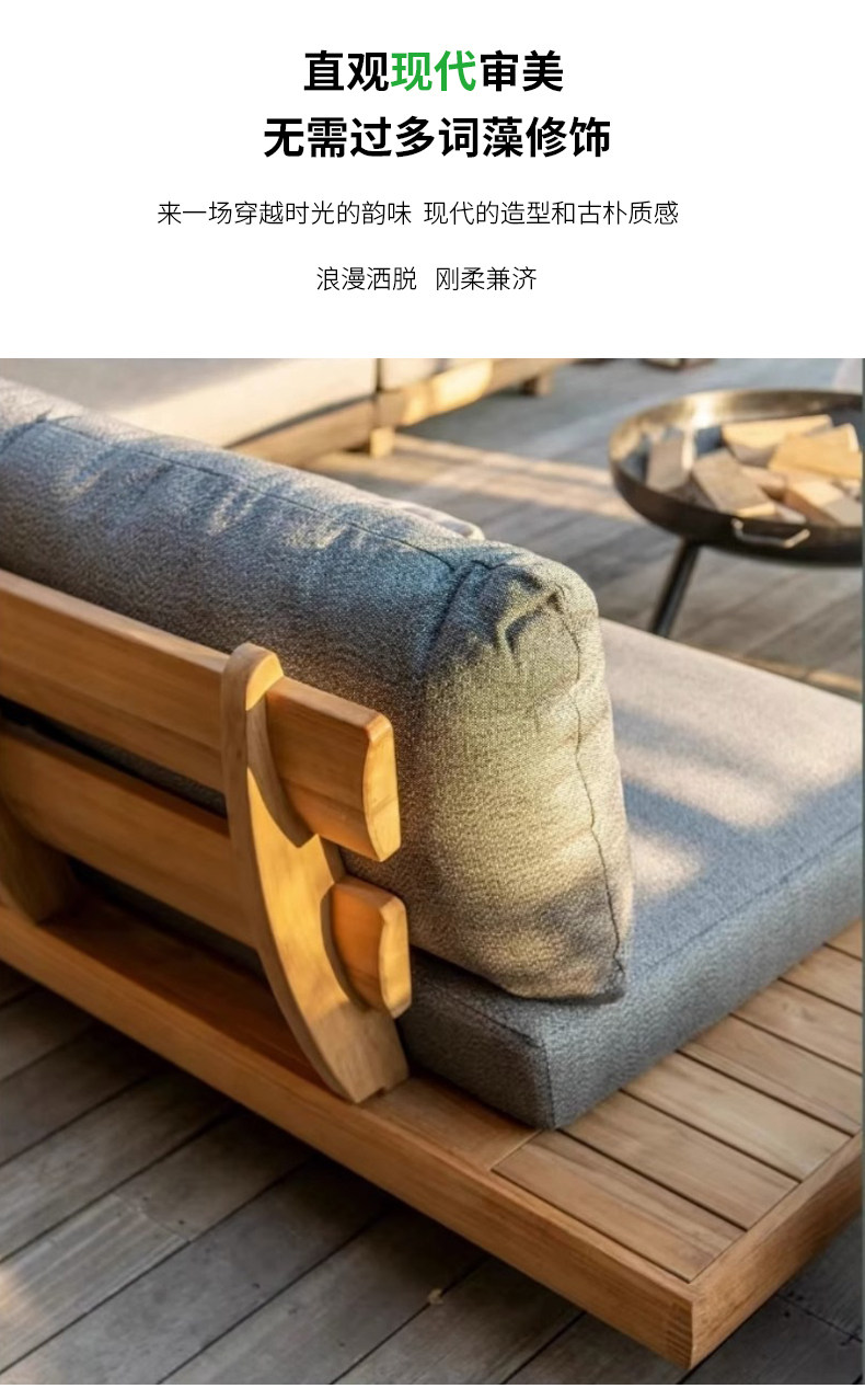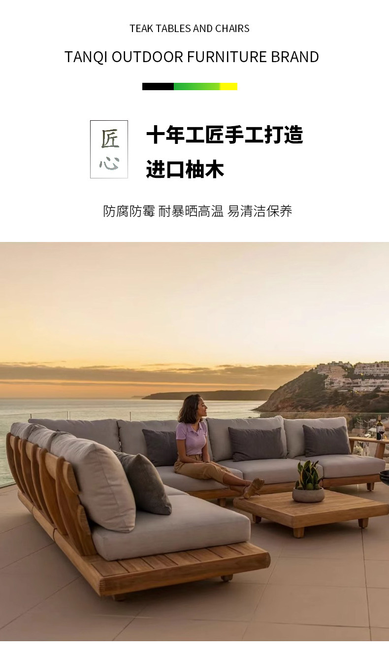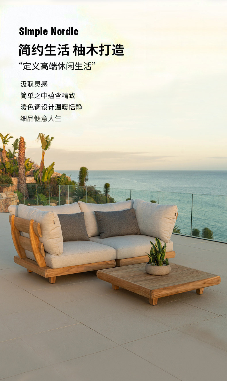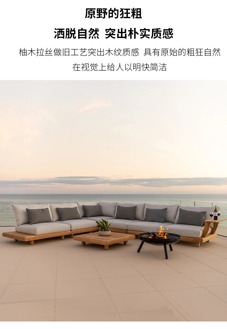 야외 소파 티크 안뜰 빌라 아파트 단단한 나무 야외 실내 비 방지 태양 방지 티 테이블 조합 중국 가구스토어 가기
