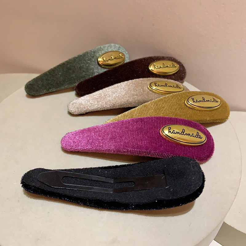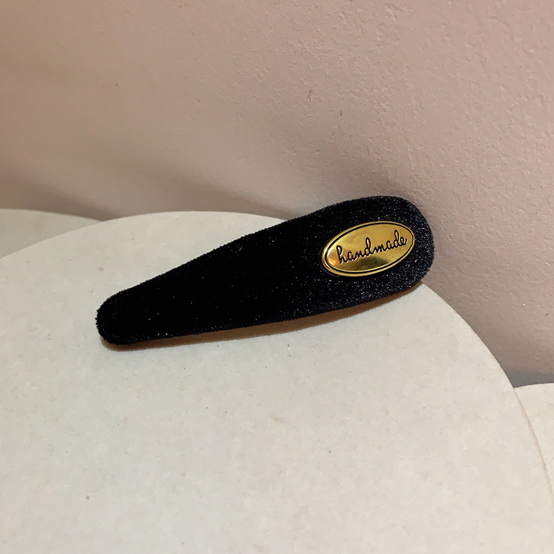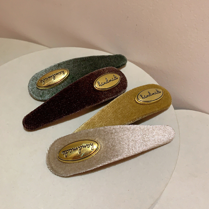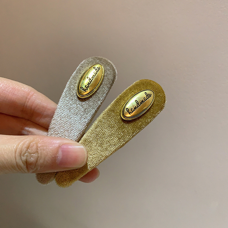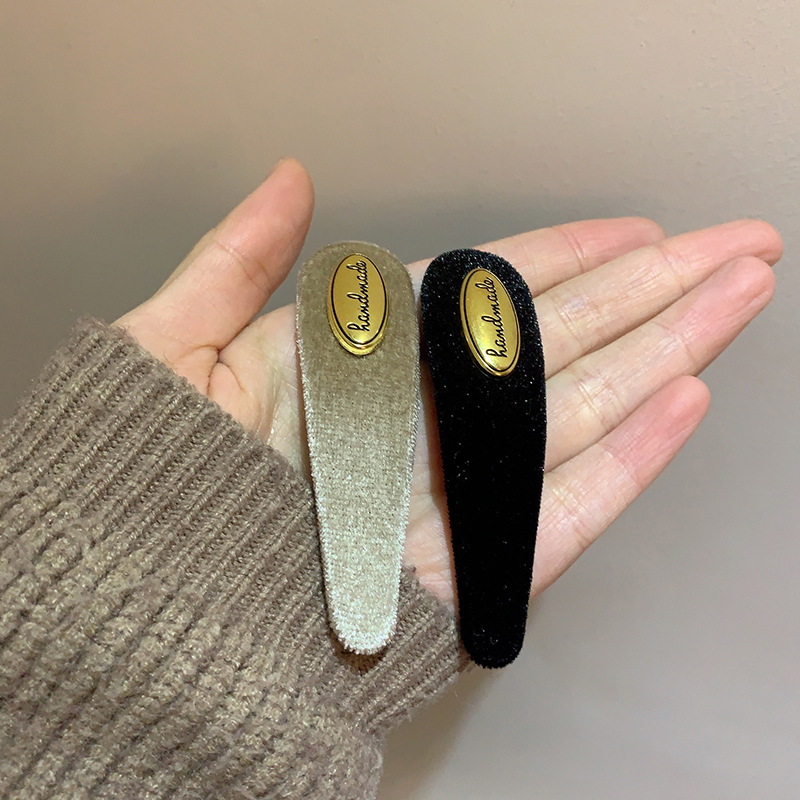 프랑스 레트로 골드 로고 벨벳 머리핀 여성의 간단한 올 매치 사이드 깨진 머리핀 앞머리 클립 머리핀 머리 장식 클립