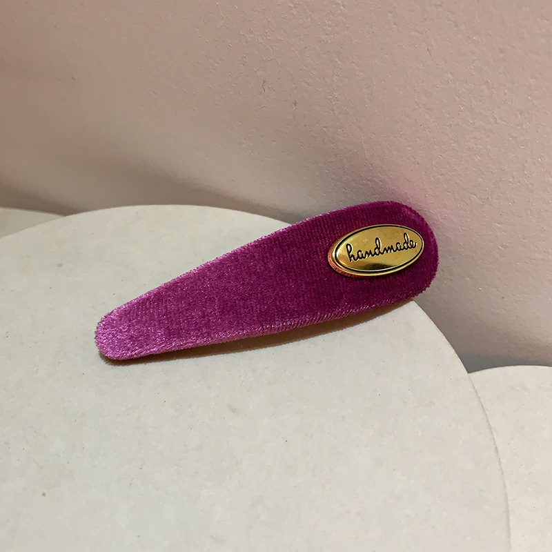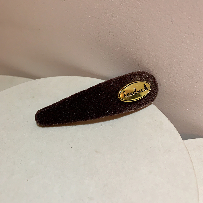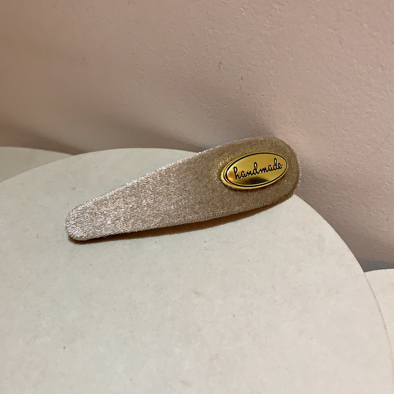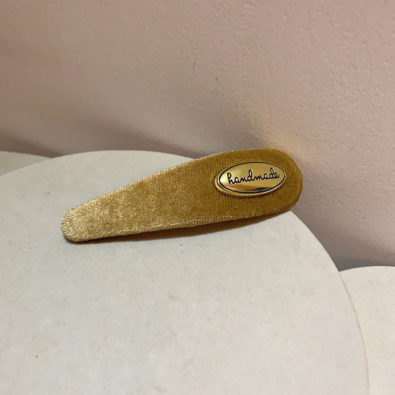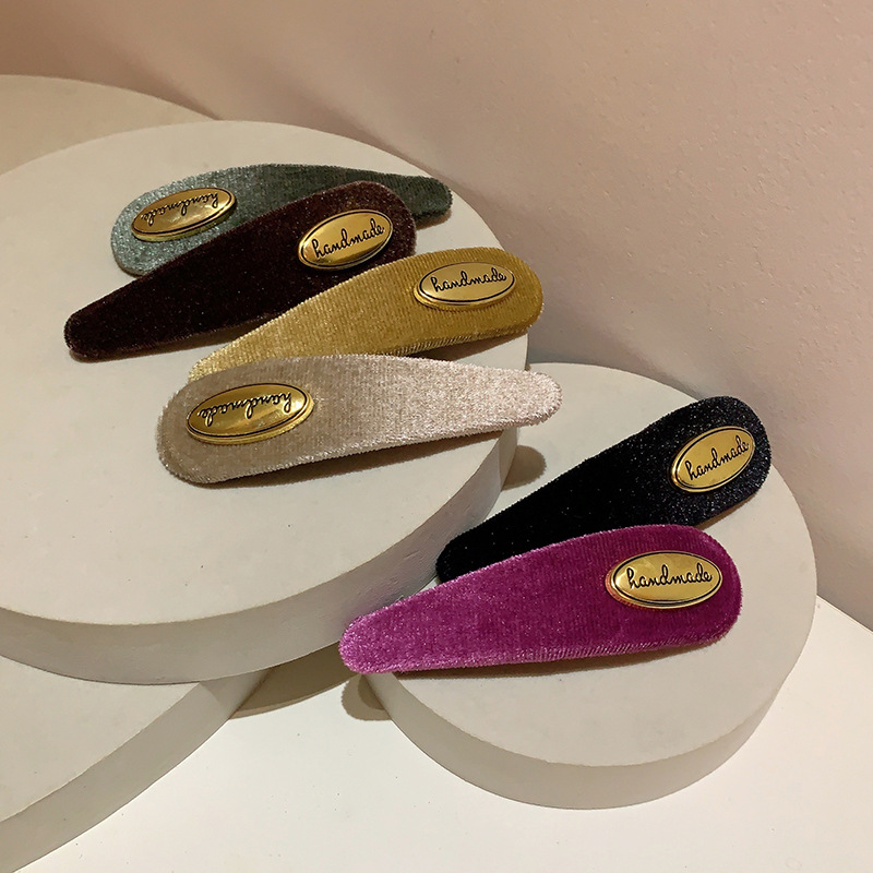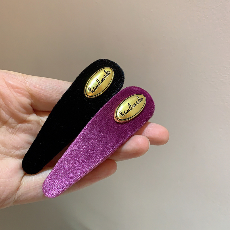 프랑스 레트로 골드 로고 벨벳 머리핀 여성의 간단한 올 매치 사이드 깨진 머리핀 앞머리 클립 머리핀 머리 장식 클립