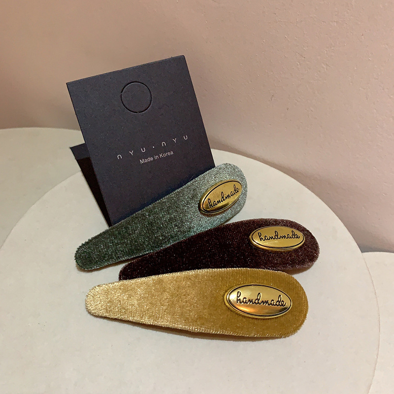 프랑스 레트로 골드 로고 벨벳 머리핀 여성의 간단한 올 매치 사이드 깨진 머리핀 앞머리 클립 머리핀 머리 장식 클립스토어 가기