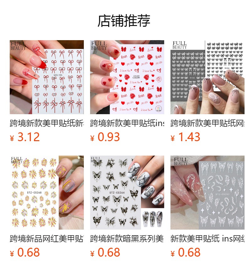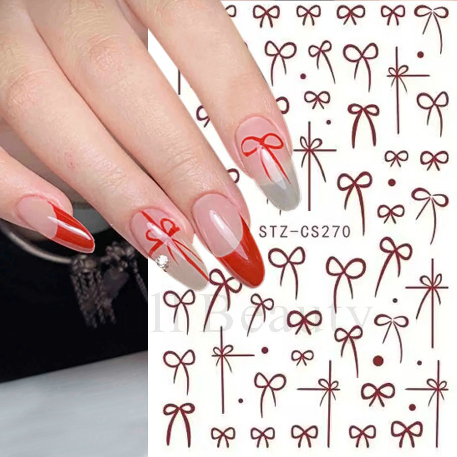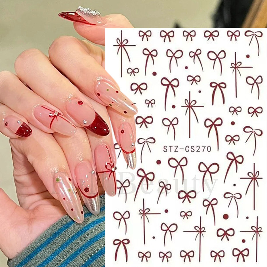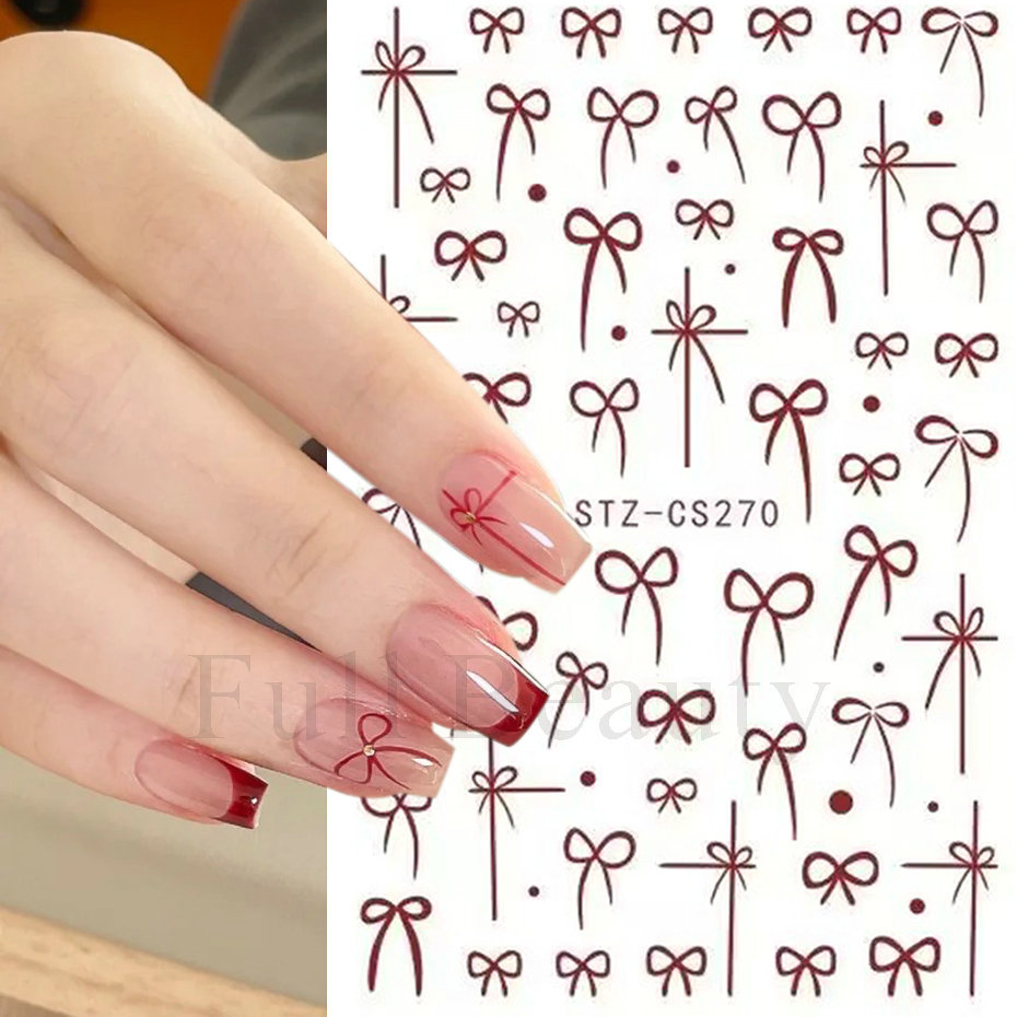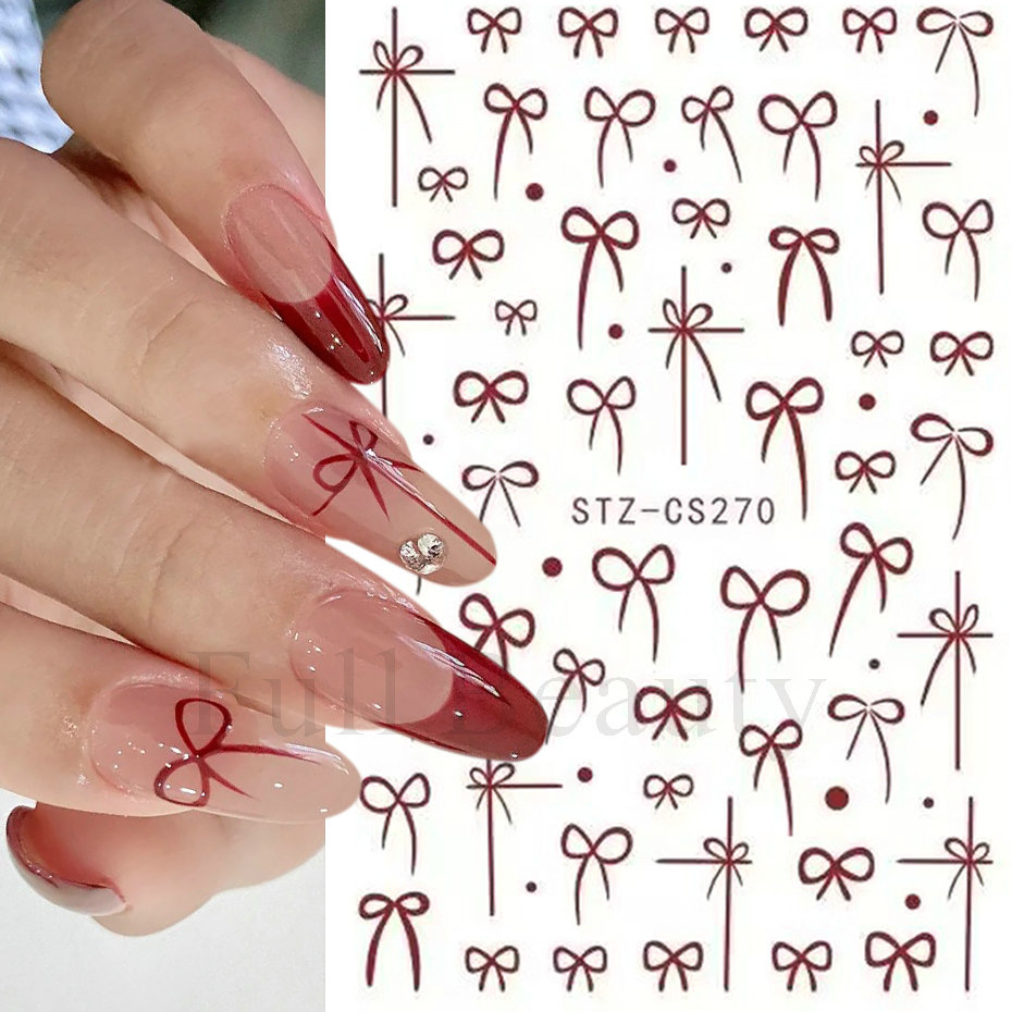 국경 간 새로운 인터넷 레드 네일 아트 스티커 새해 갑옷 프랑스 버건디 활 접착 네일 스티커 도매스토어 가기