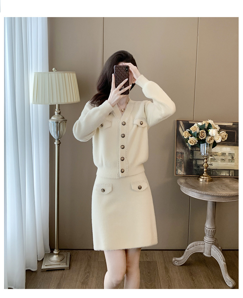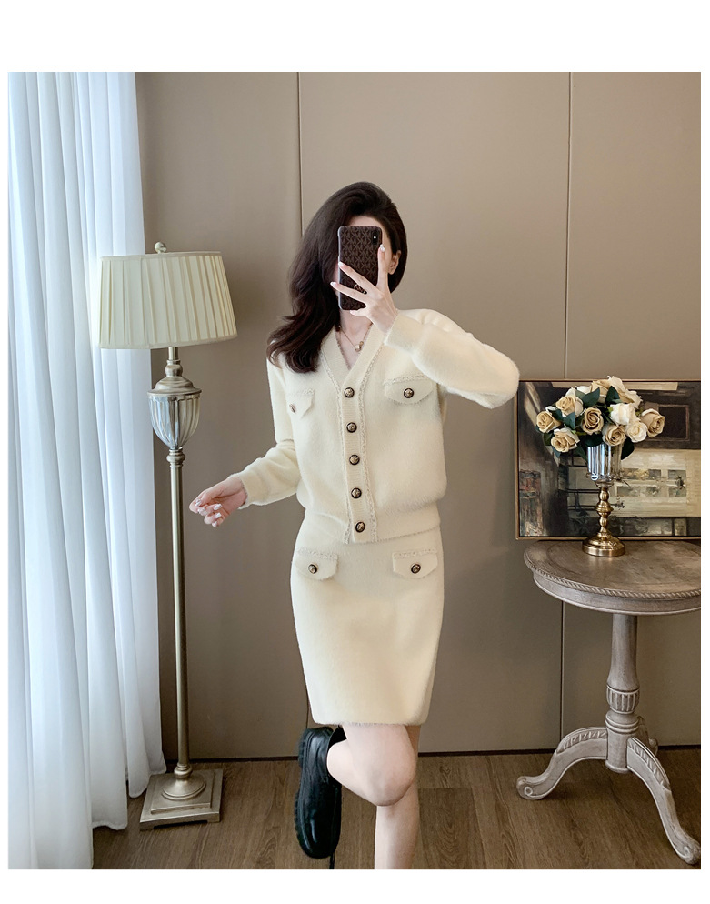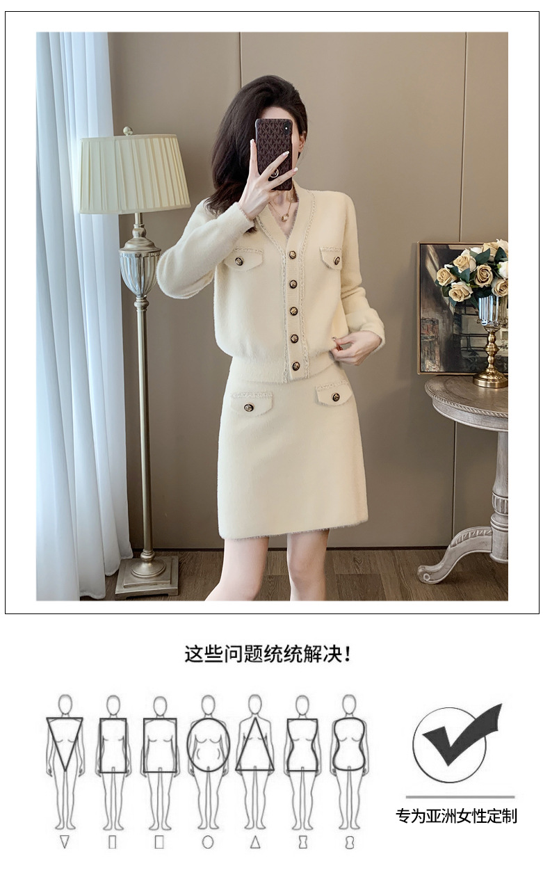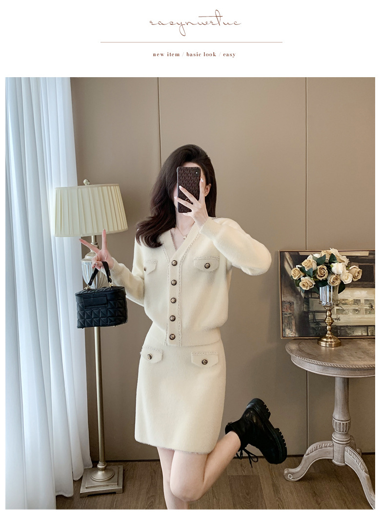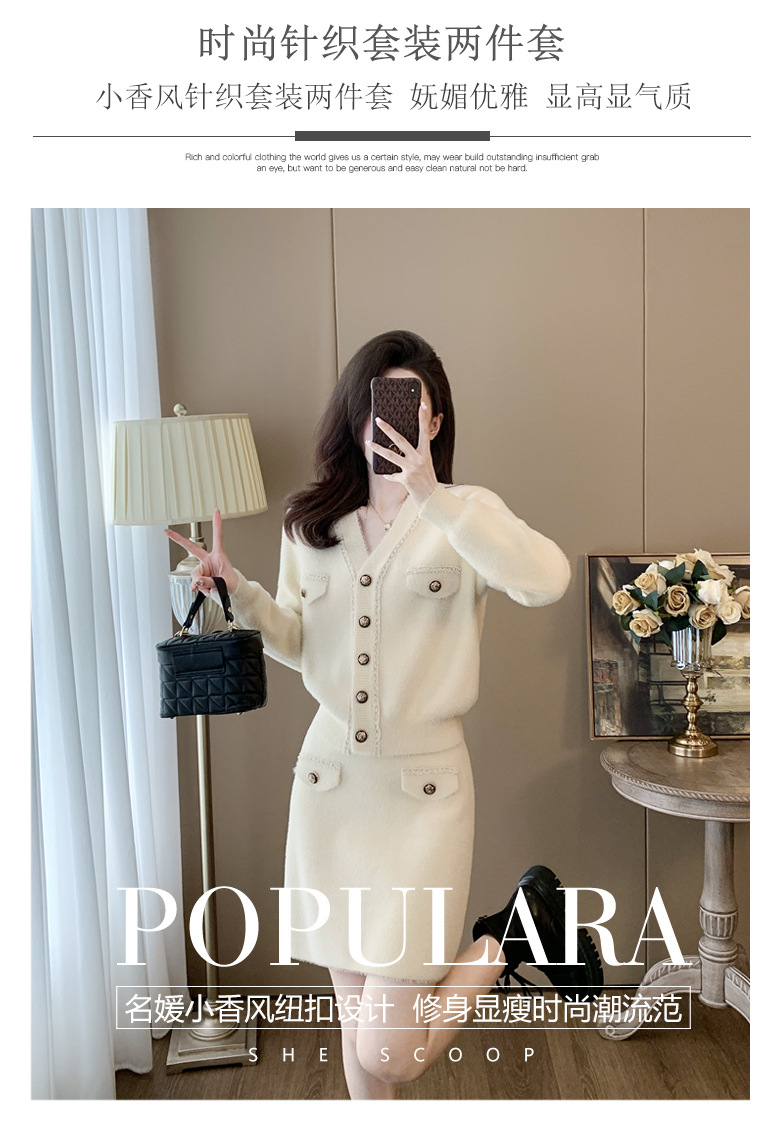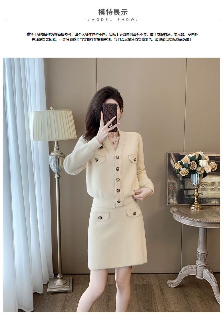 니트 투피스 세트 스커트 여성 샤넬 스타일 2024 봄 새로운 니트 카디건 스커트 패션 캐주얼 세트스토어 가기