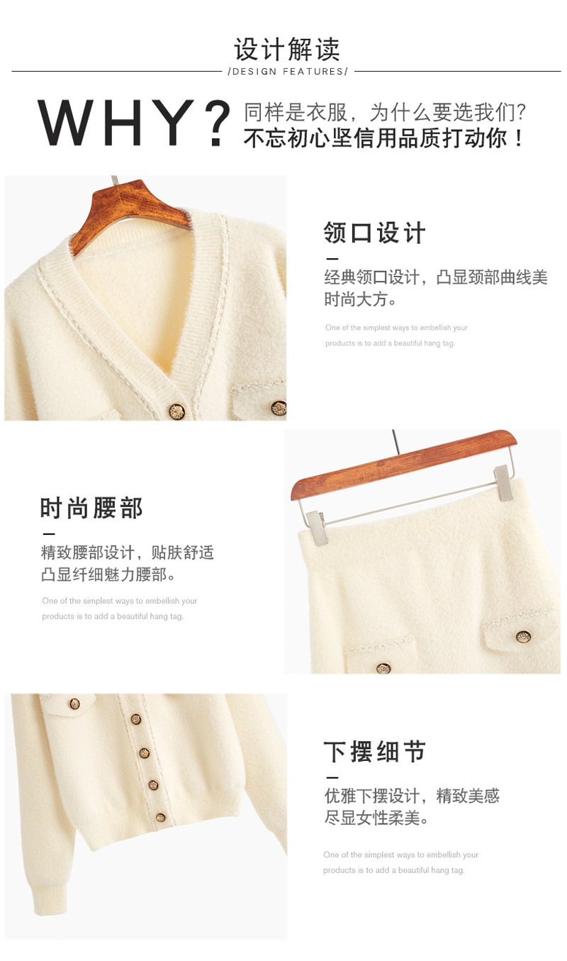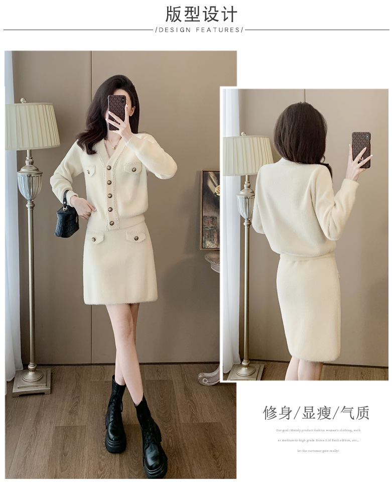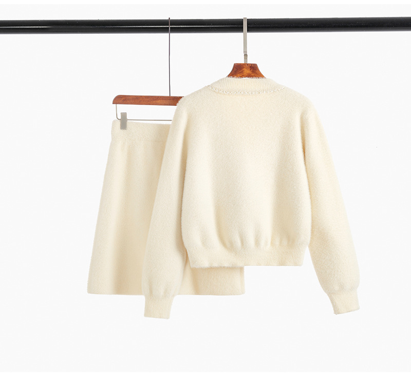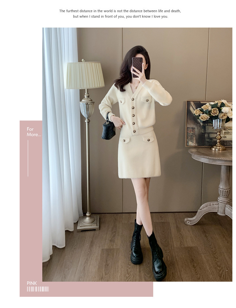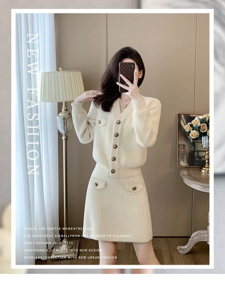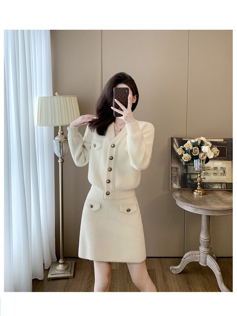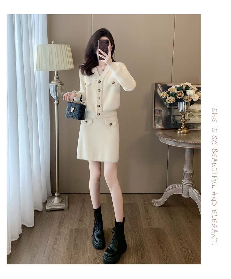 니트 투피스 세트 스커트 여성 샤넬 스타일 2024 봄 새로운 니트 카디건 스커트 패션 캐주얼 세트스토어 가기