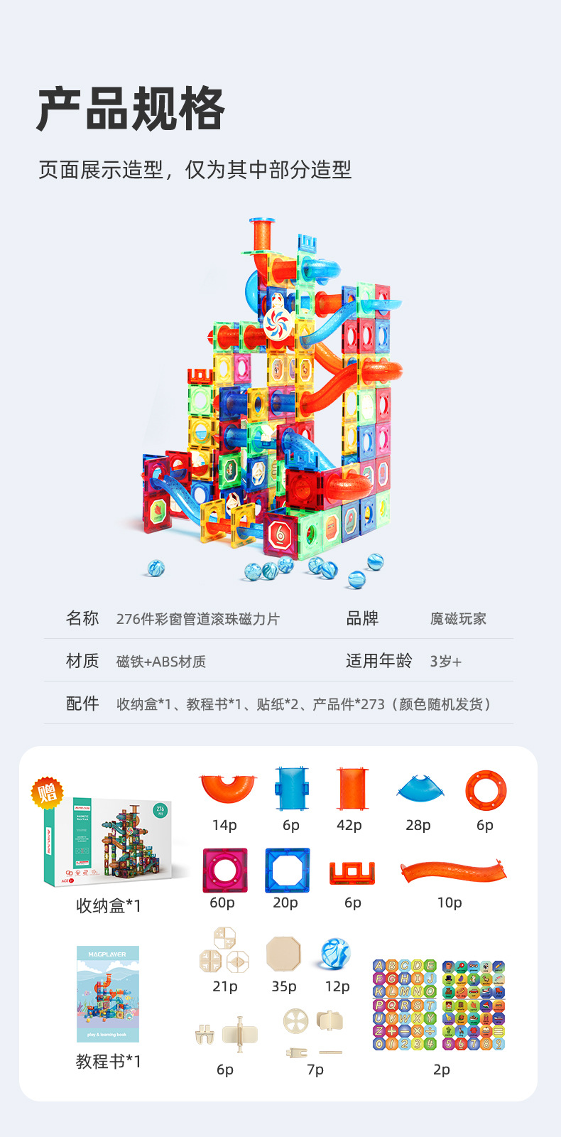 어린이 자기 필름 새해 선물 상자 컬러 창 파이프 자기 필름 7.5cm 자기 건물 블록 장난감스토어 가기