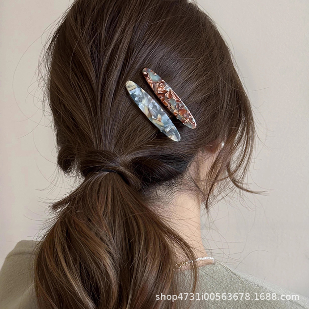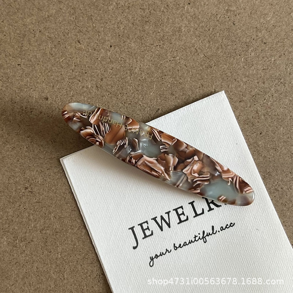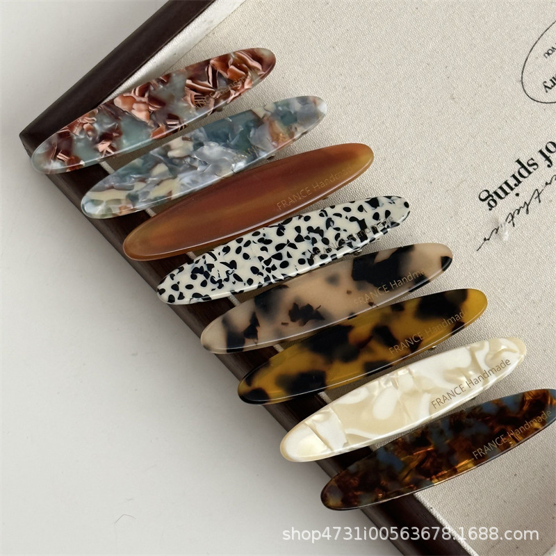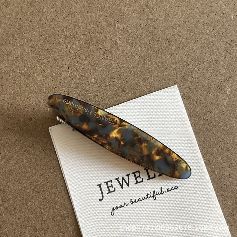 골드 라벨 소형 아세테이트 리프 사이드 클립 합금 일자형 클립 프렌치 심플 데일리 헤어핀 앞머리 잔머리 집게핀
