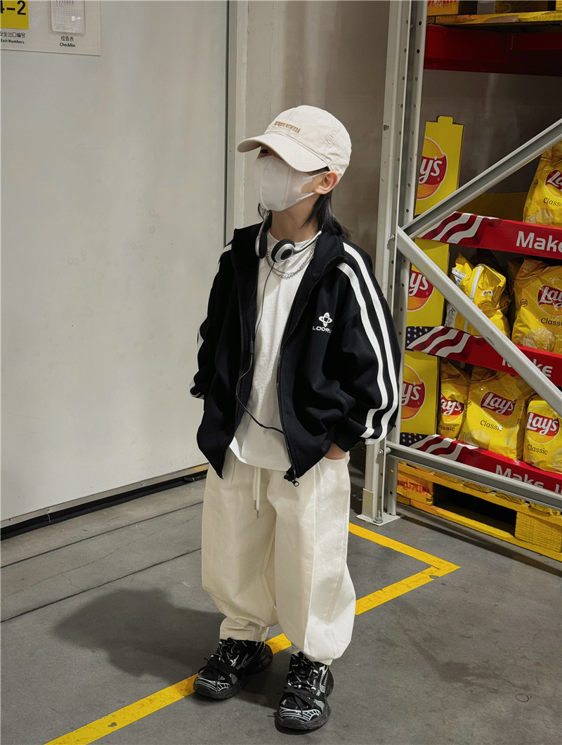 Baoduo 아동복 소년 봄 바지 캐주얼 바지 멋진 잘 생긴 튀김 거리 봄과 가을 2024 새로운 어린이 스포츠 바지 패션스토어 가기