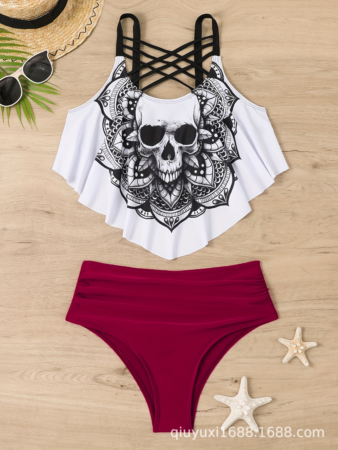 유럽과 미국의 수영복 2024 새로운 패션 섹시한 테더 체인 비키니 수영복 2 피스 도매 대외 무역스토어 가기